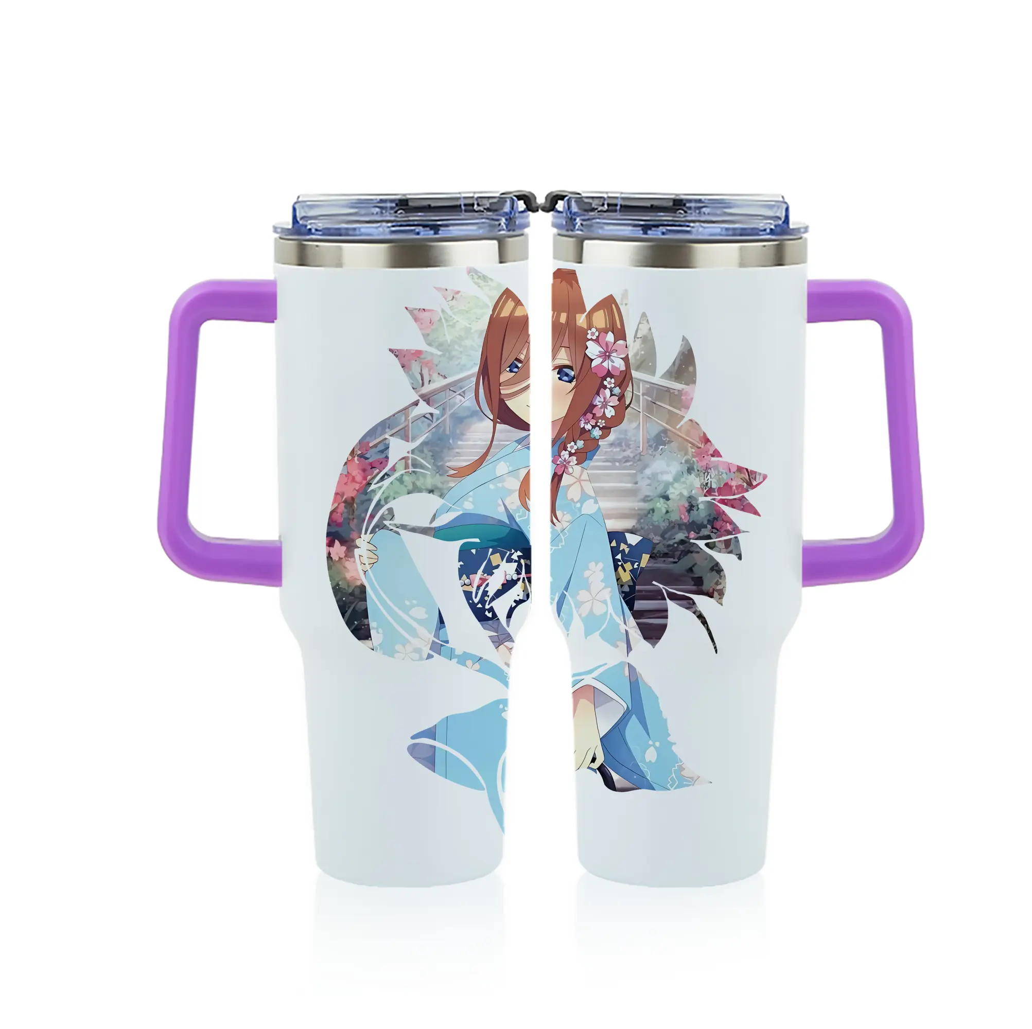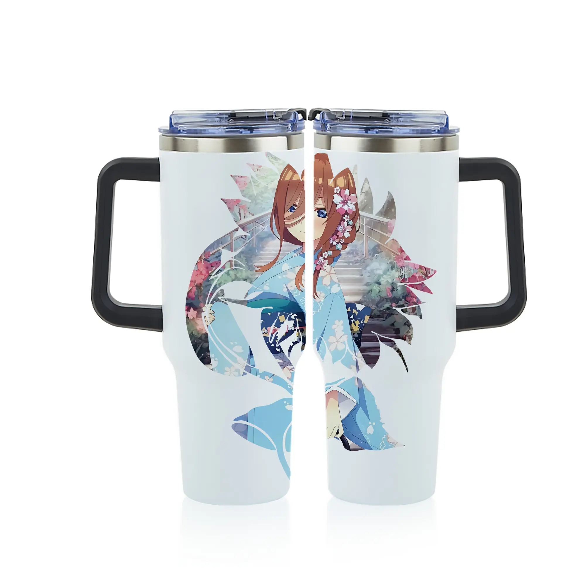 五等分の花嫁 グッズ 中野 三玖 - 1200mL フルプリント車用タンブラー ・ 304ステンレス 内側 ・ 201ステンレス 外側 ・ 保温 保冷 ・ 通勤 ドライブ アウトドア用