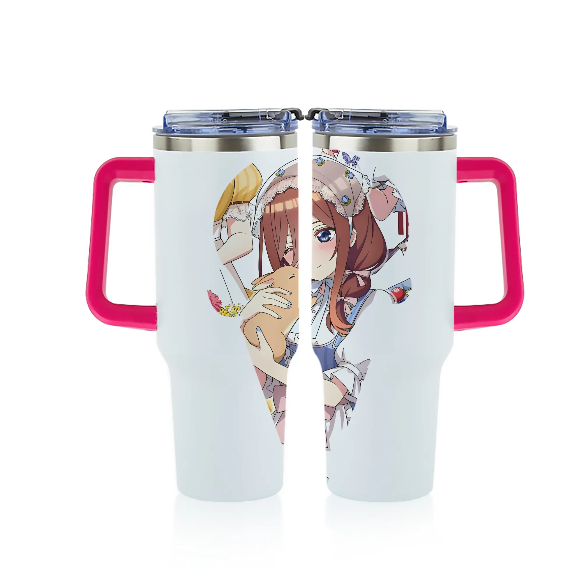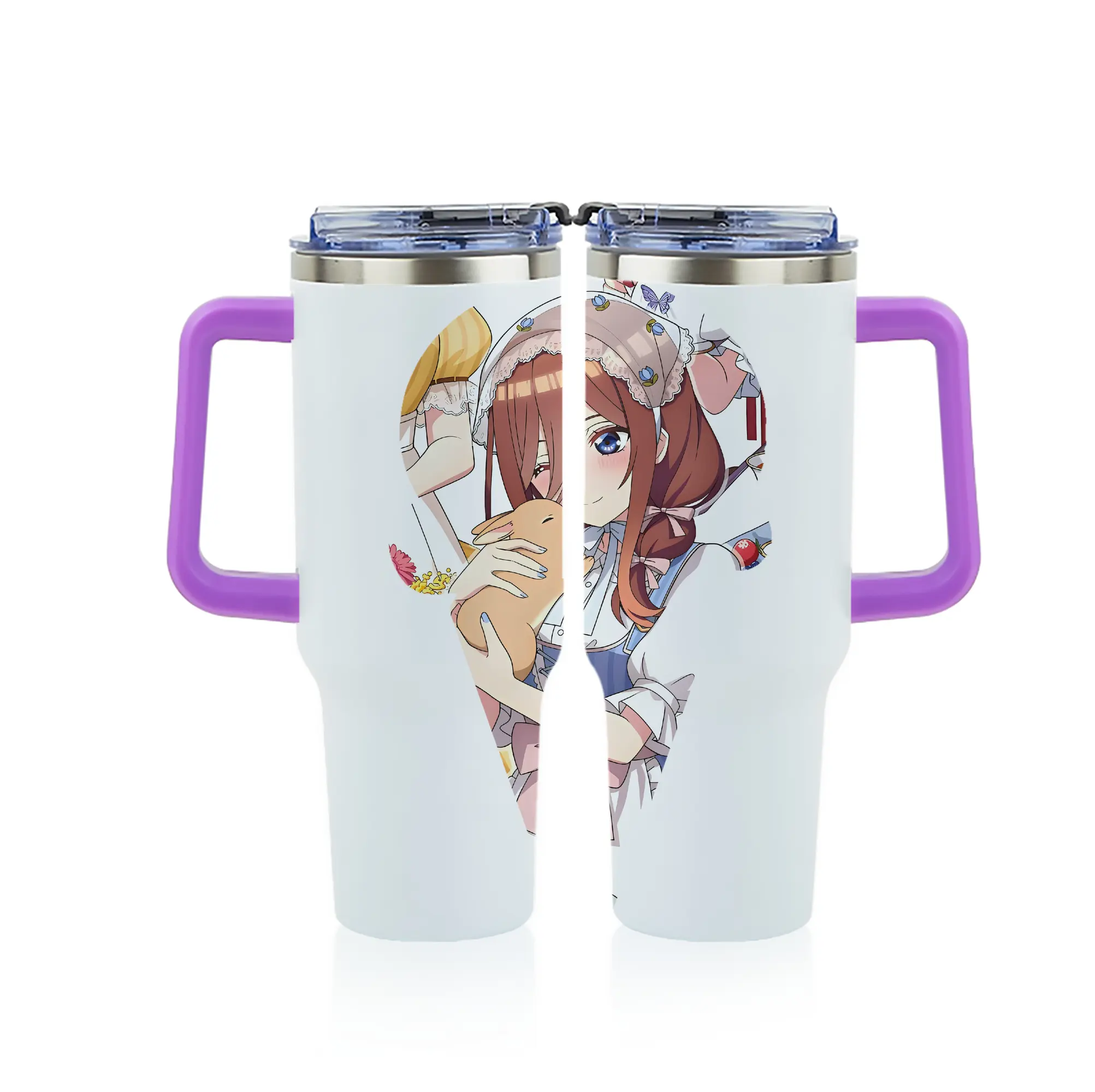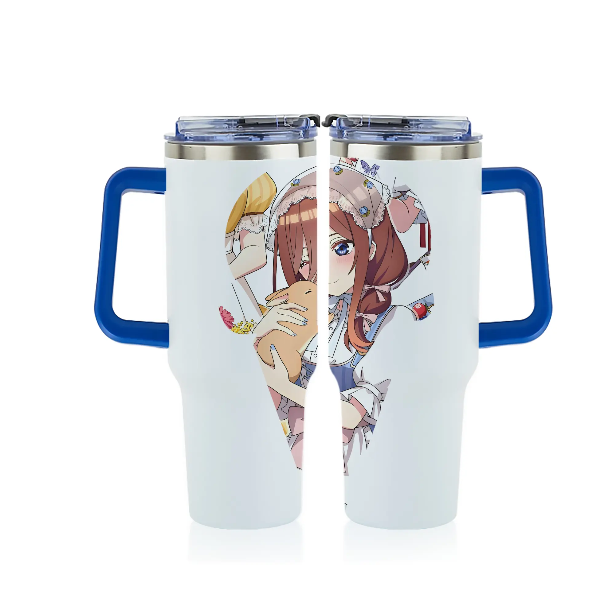 五等分の花嫁 グッズ 中野 三玖 - 1200mL フルプリント車用タンブラー ・ 304ステンレス 内側 ・ 201ステンレス 外側 ・ 保温 保冷 ・ 通勤 ドライブ アウトドア用
