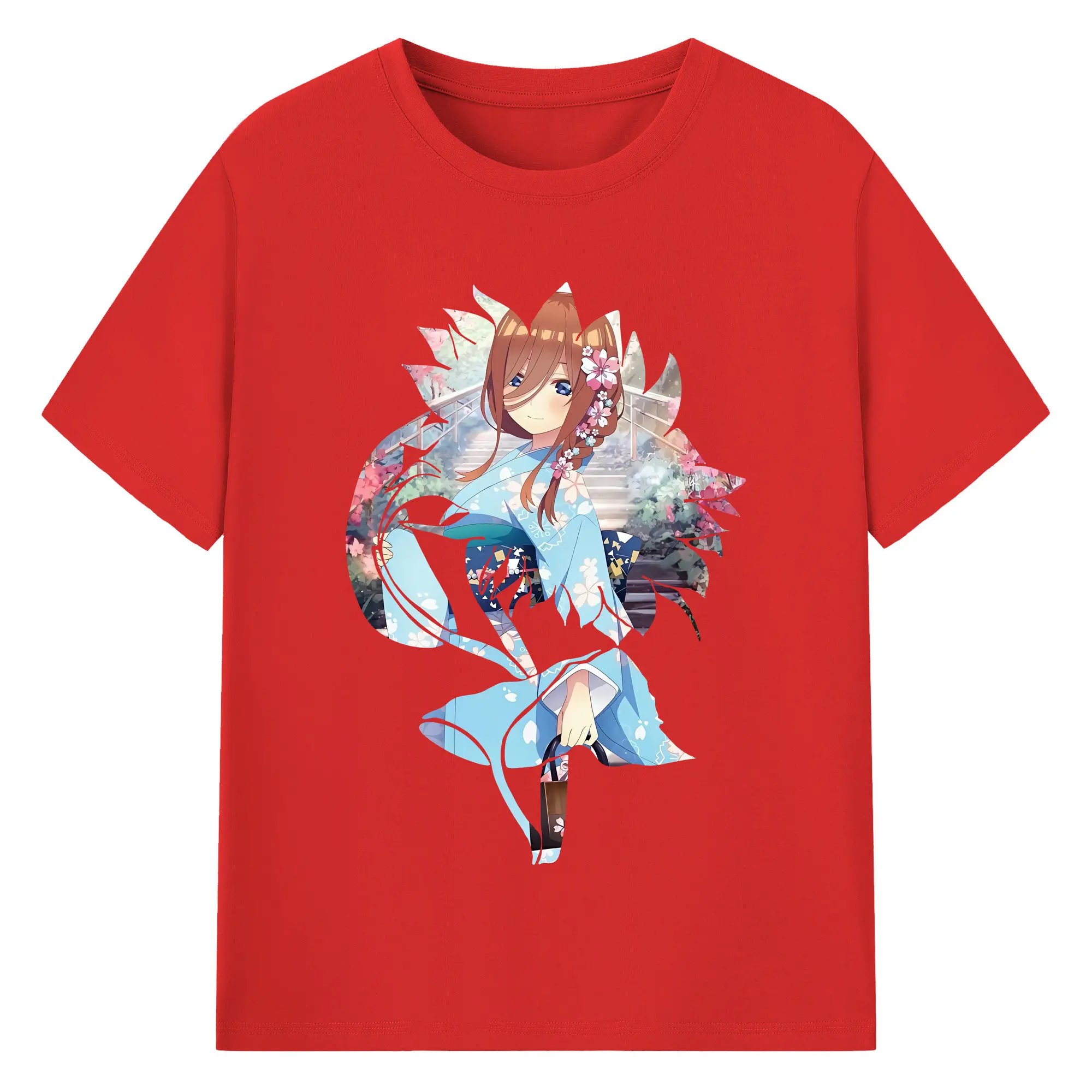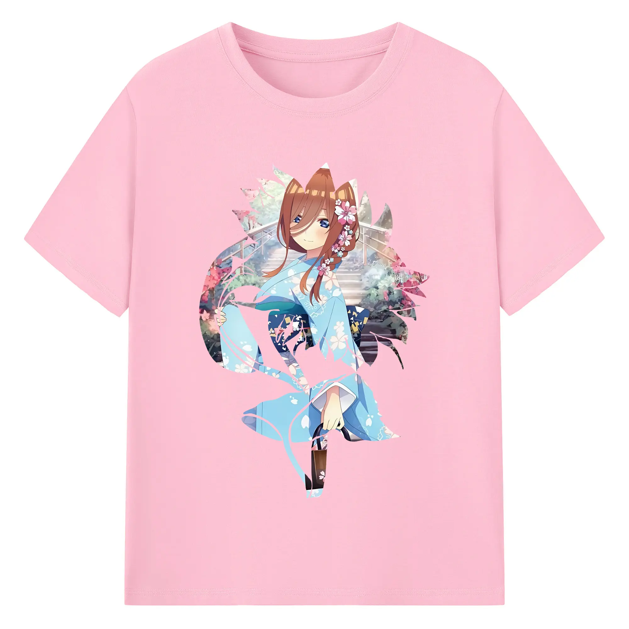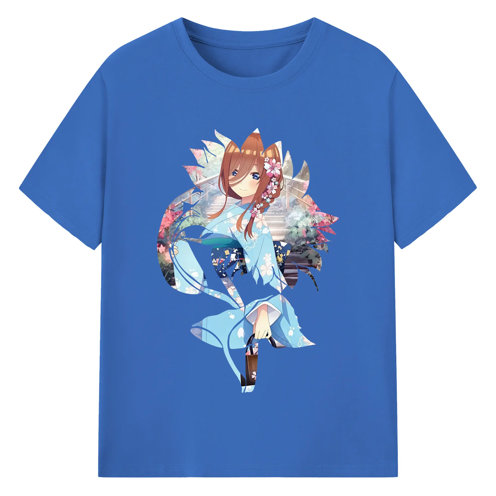 五等分の花嫁 グッズ 中野 三玖 - 綿100% 半袖Tシャツ ・ バックプリント ・ 快適 通気性 ・ 日常使い 散歩 スポーツ用