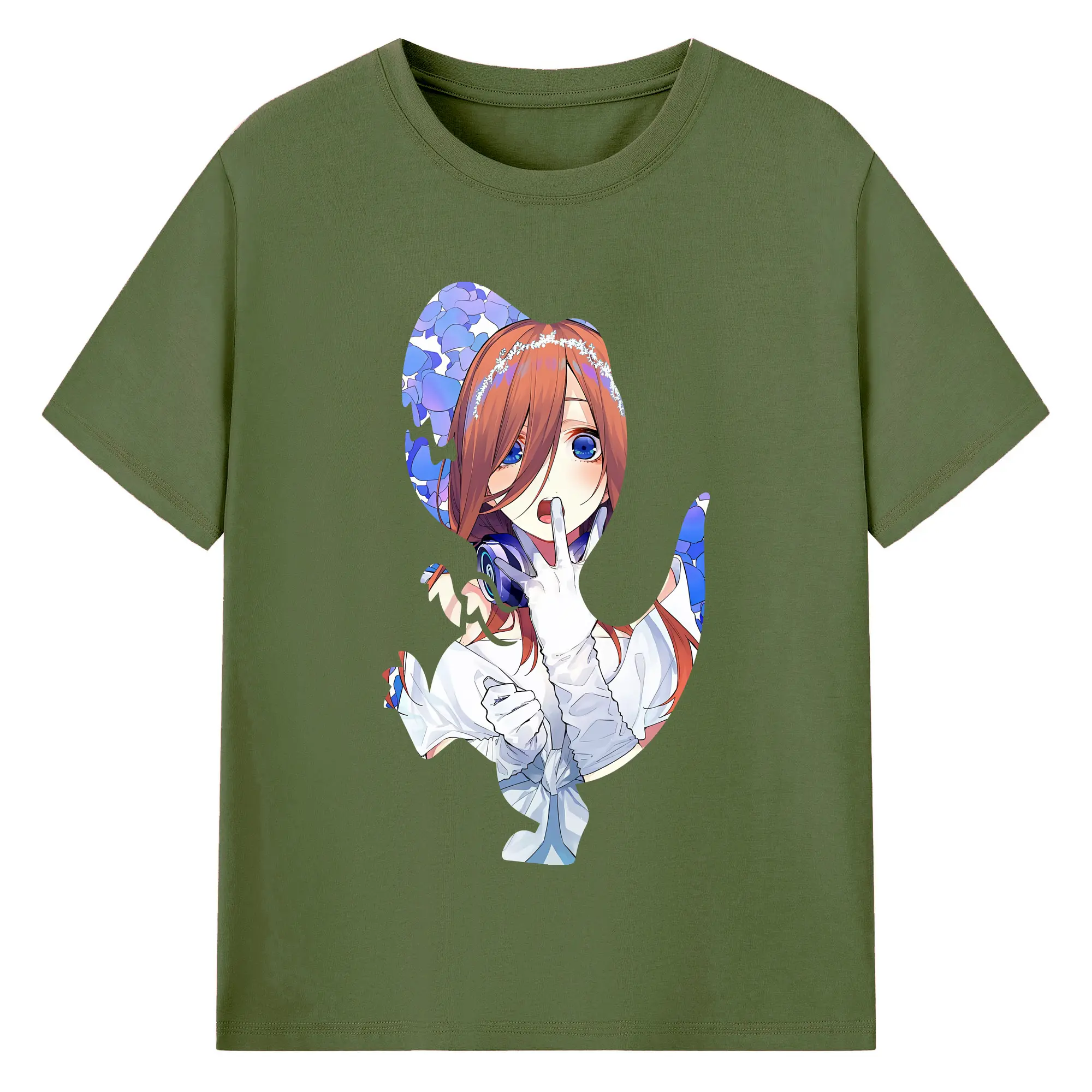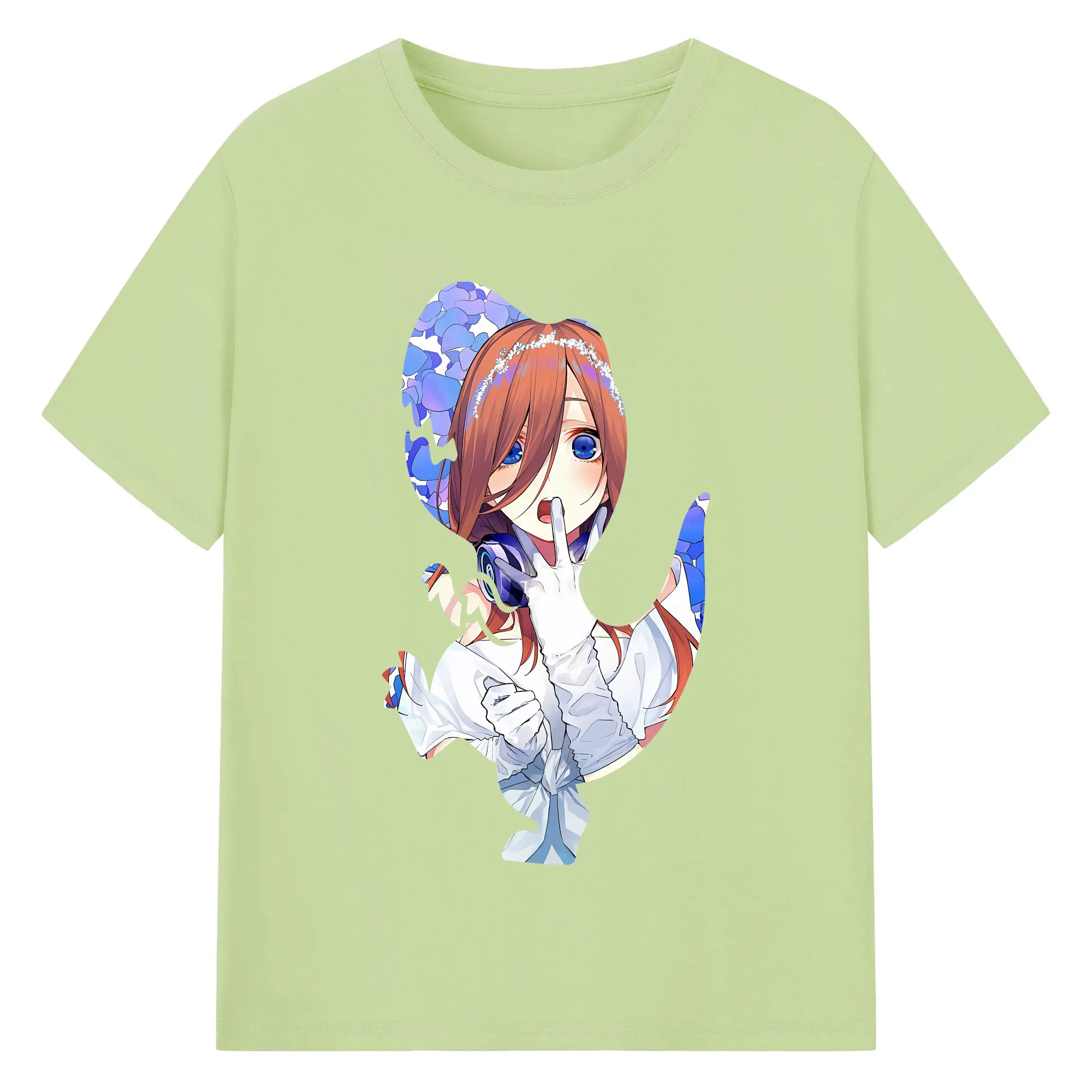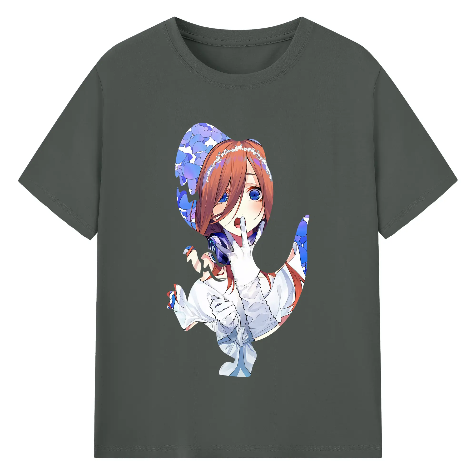 五等分の花嫁 グッズ 中野 三玖 - 綿100% 半袖Tシャツ ・ バックプリント ・ 快適 通気性 ・ 日常使い 散歩 スポーツ用