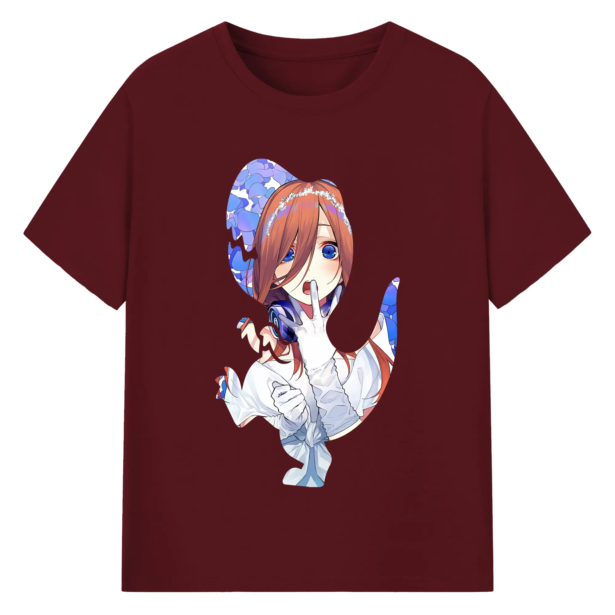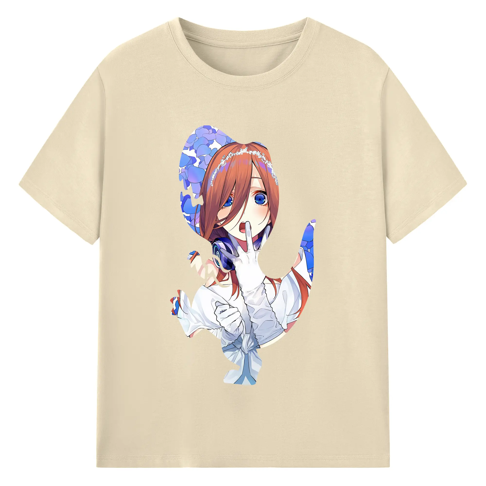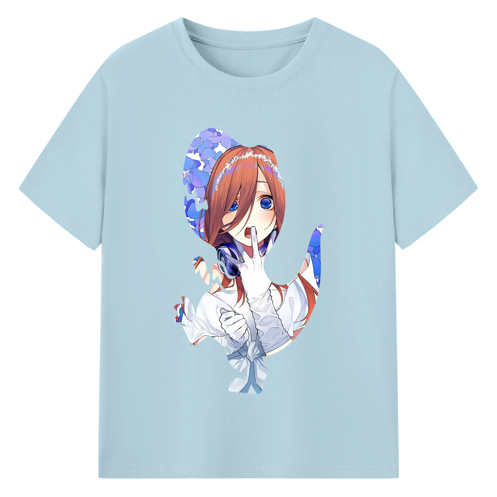 五等分の花嫁 グッズ 中野 三玖 - 綿100% 半袖Tシャツ ・ バックプリント ・ 快適 通気性 ・ 日常使い 散歩 スポーツ用