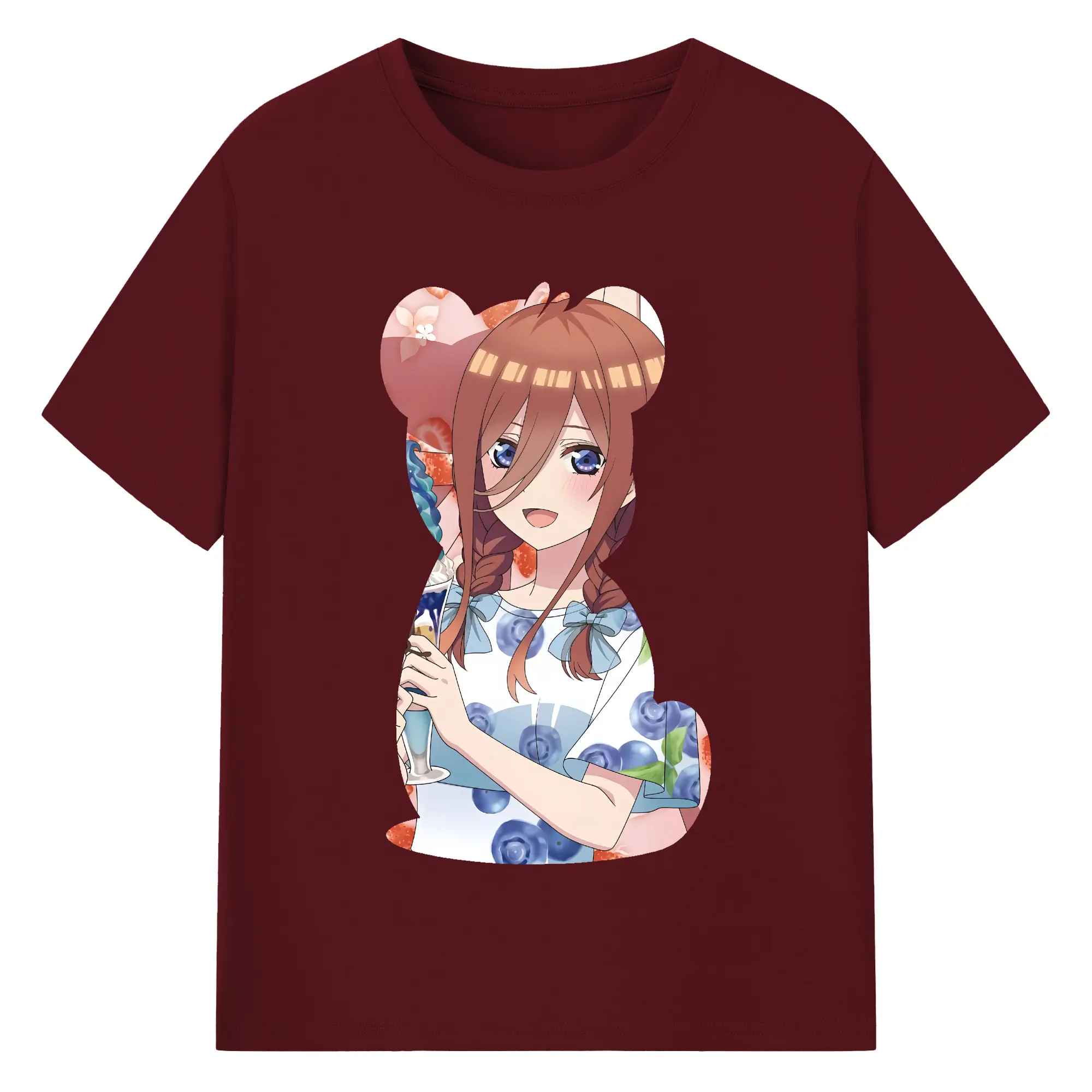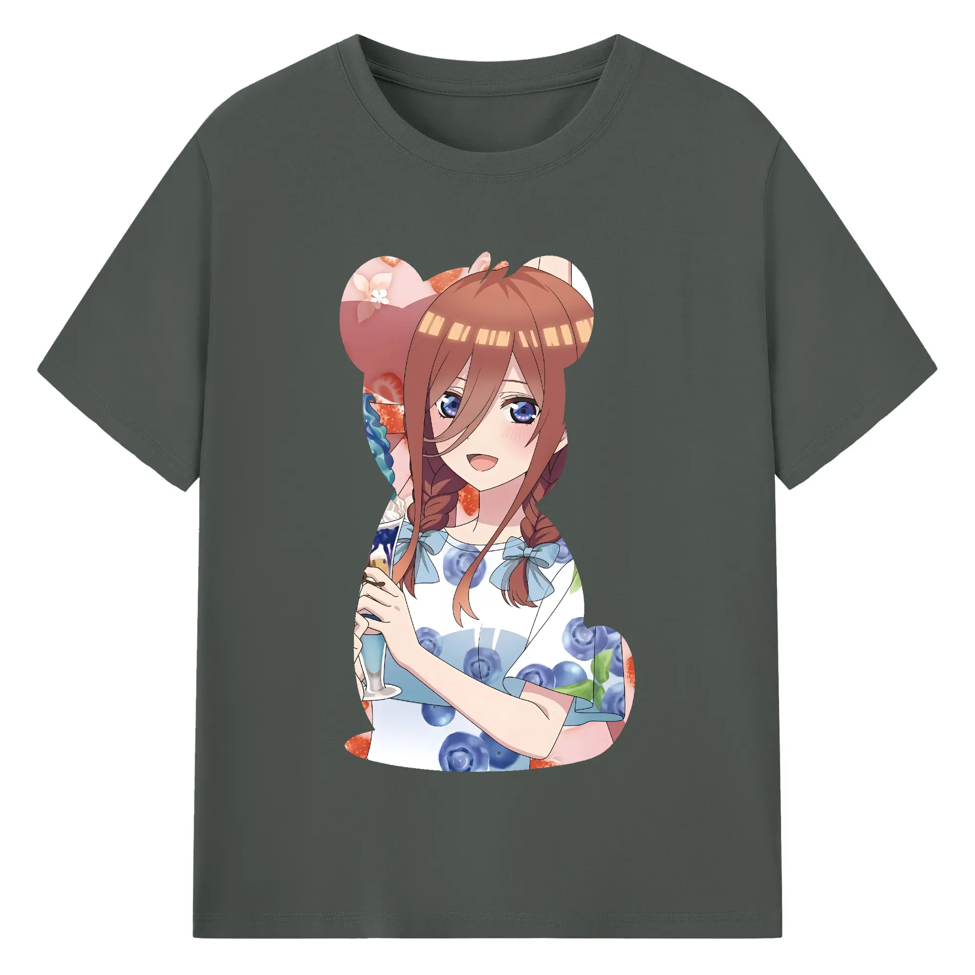 五等分の花嫁 グッズ 中野 三玖 - 綿100% 半袖Tシャツ ・ バックプリント ・ 快適 通気性 ・ 日常使い 散歩 スポーツ用