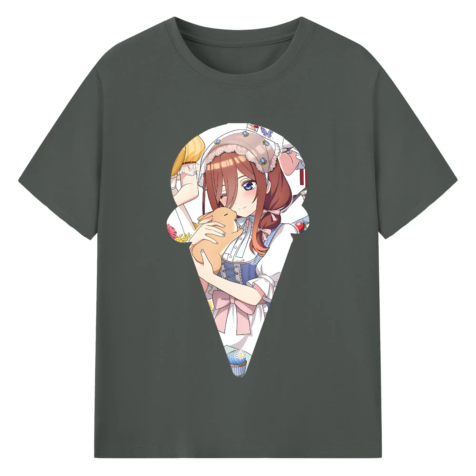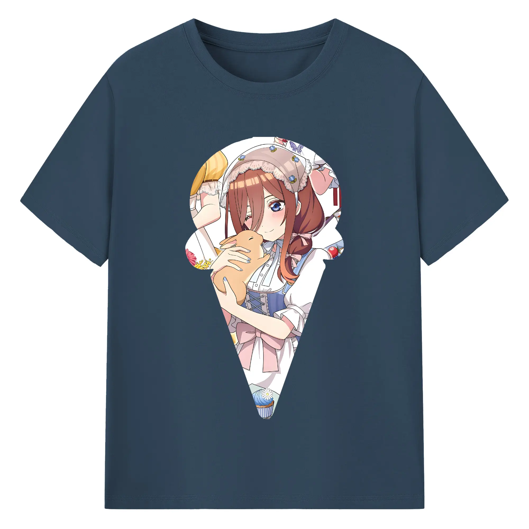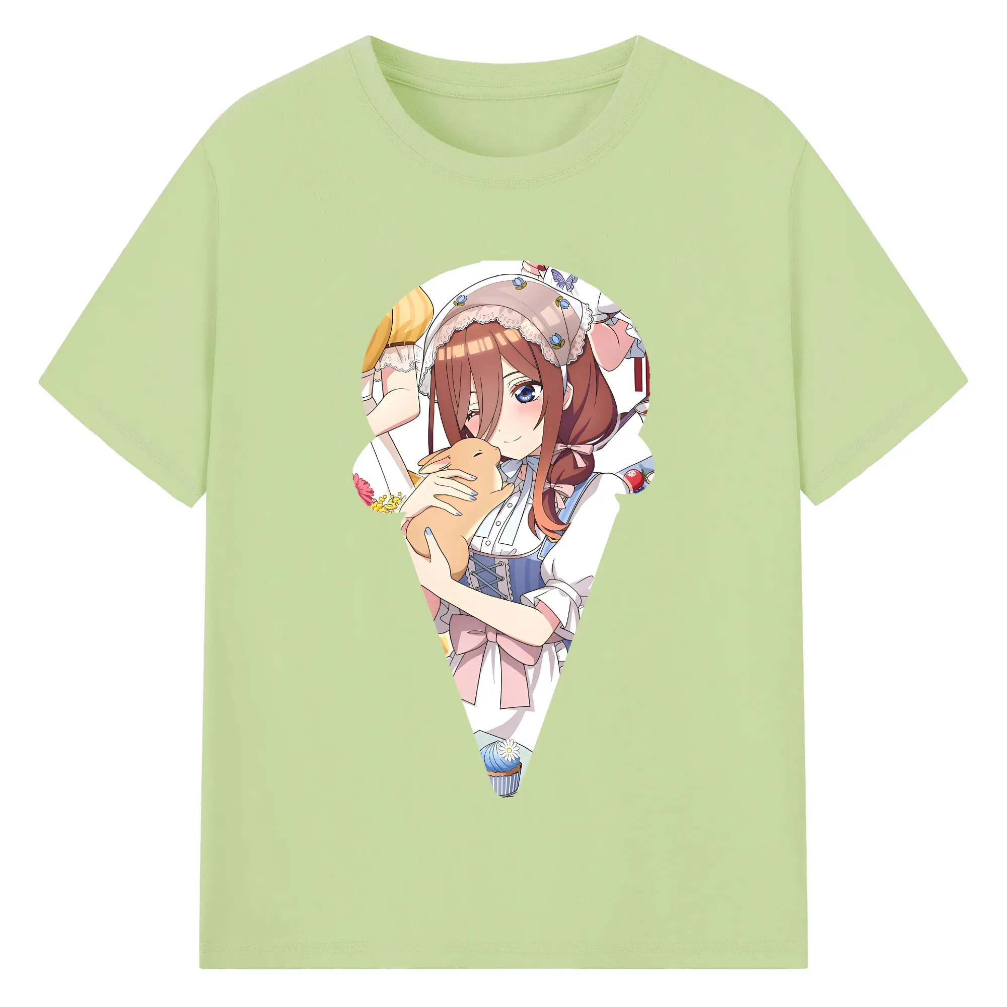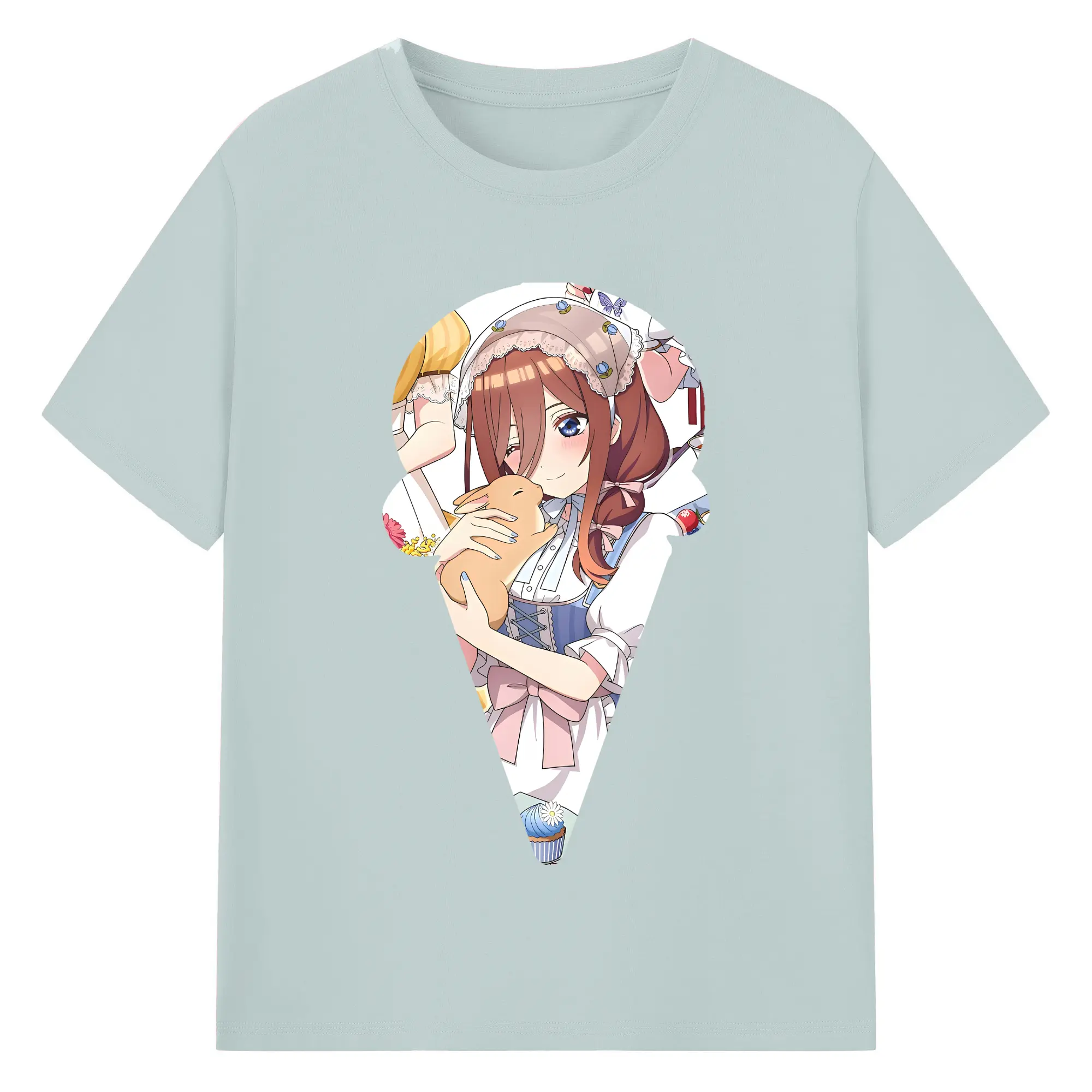 五等分の花嫁 グッズ 中野 三玖 - 綿100% 半袖Tシャツ ・ バックプリント ・ 快適 通気性 ・ 日常使い 散歩 スポーツ用