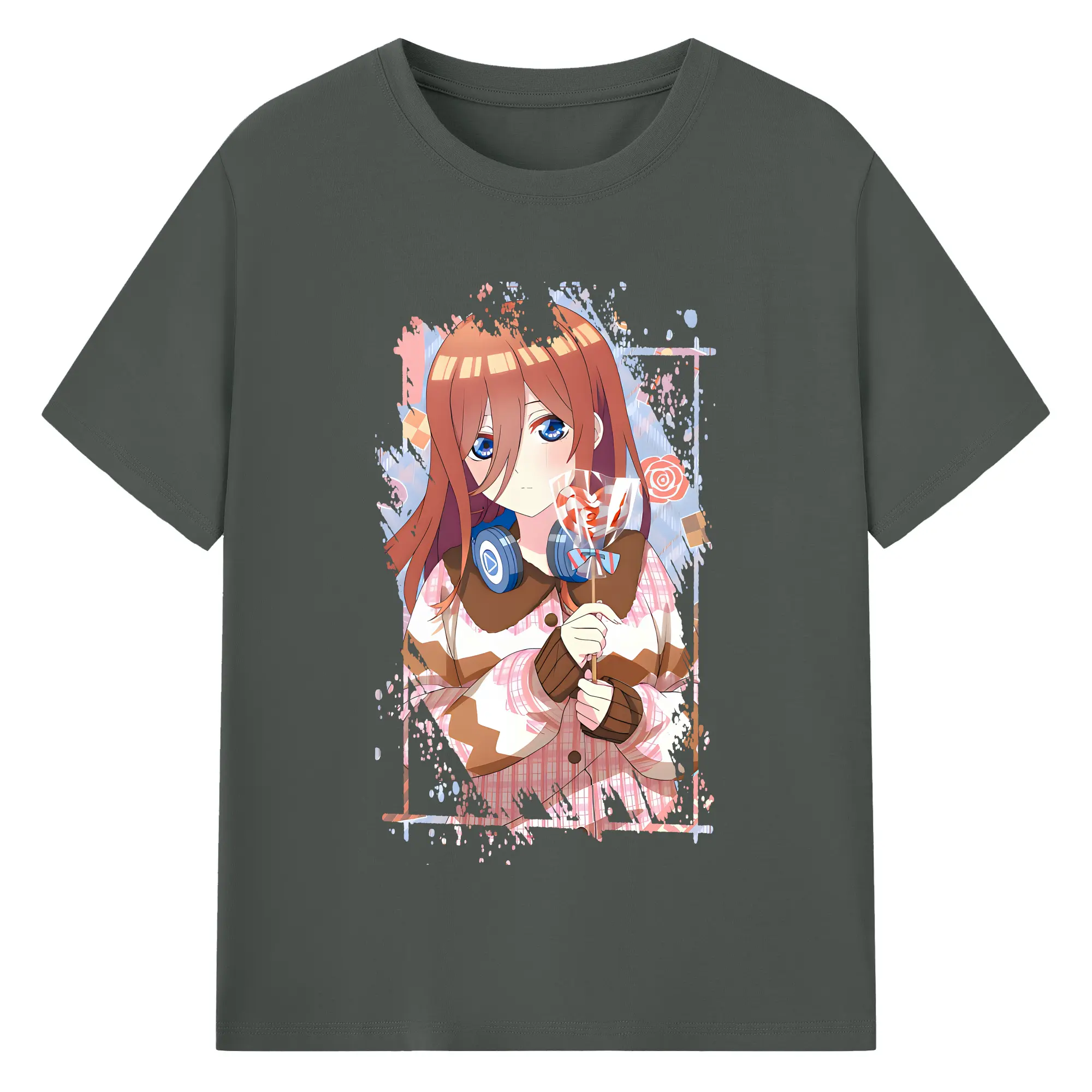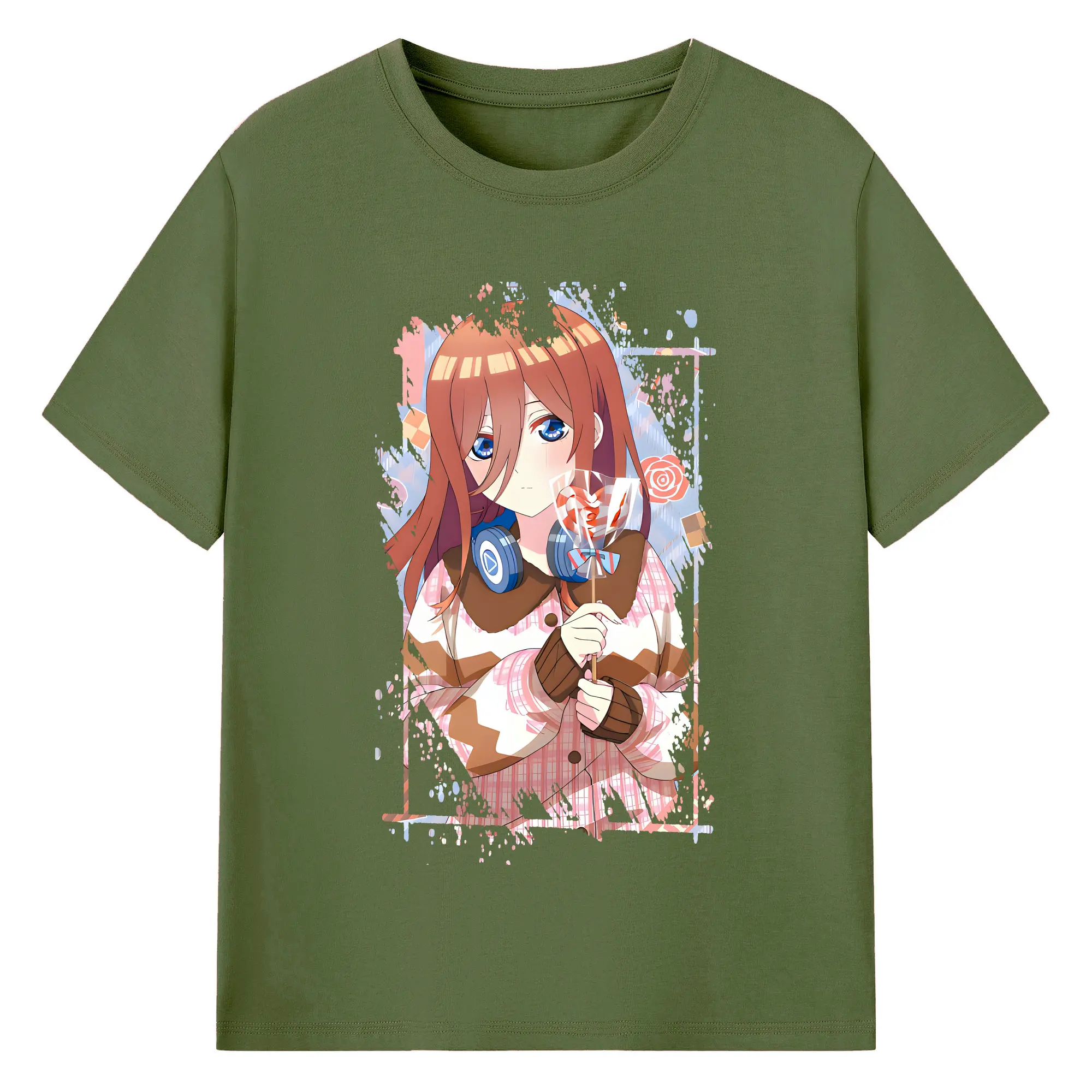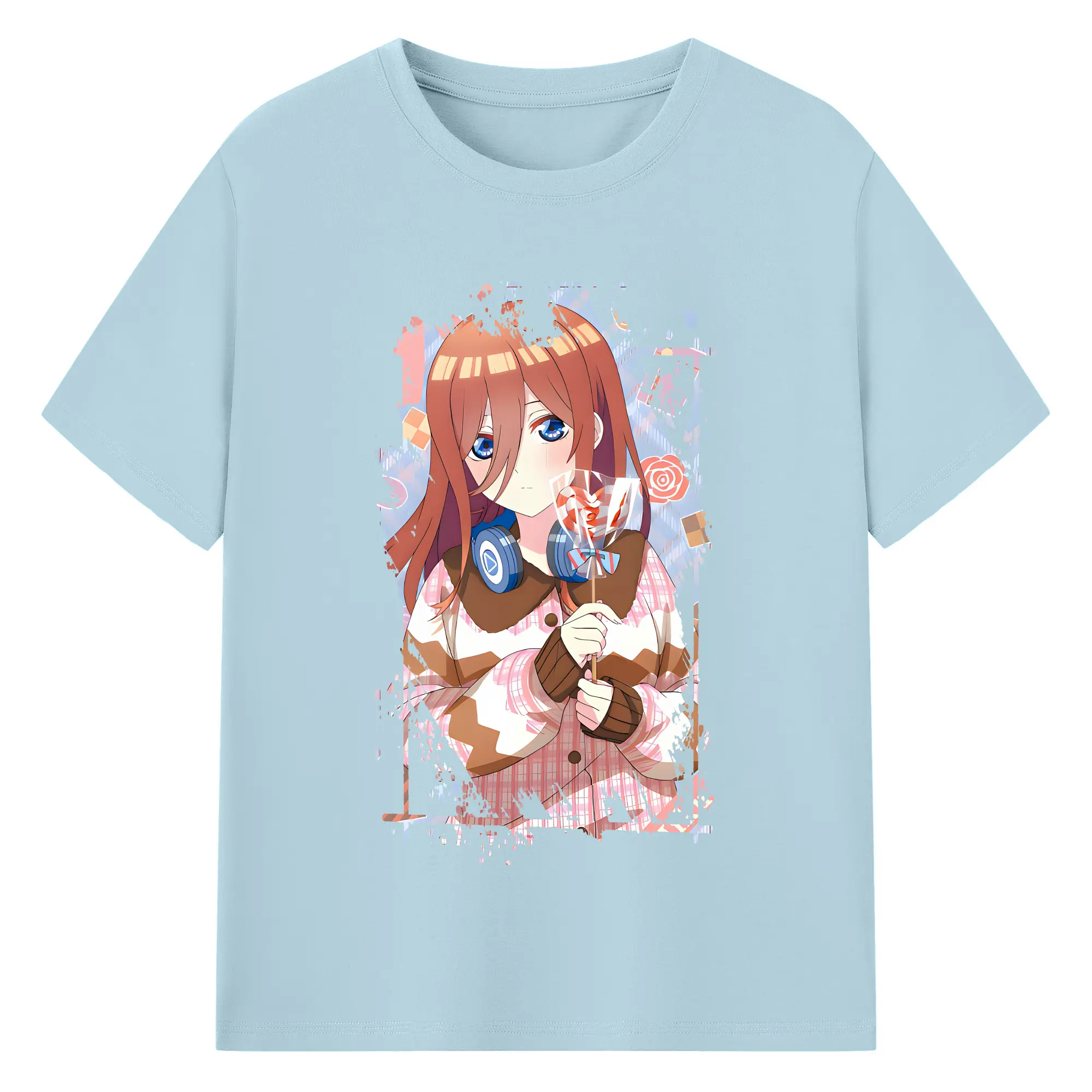 五等分の花嫁 グッズ 中野 三玖 - 綿100% 半袖Tシャツ ・ バックプリント ・ 快適 通気性 ・ 日常使い 散歩 スポーツ用
