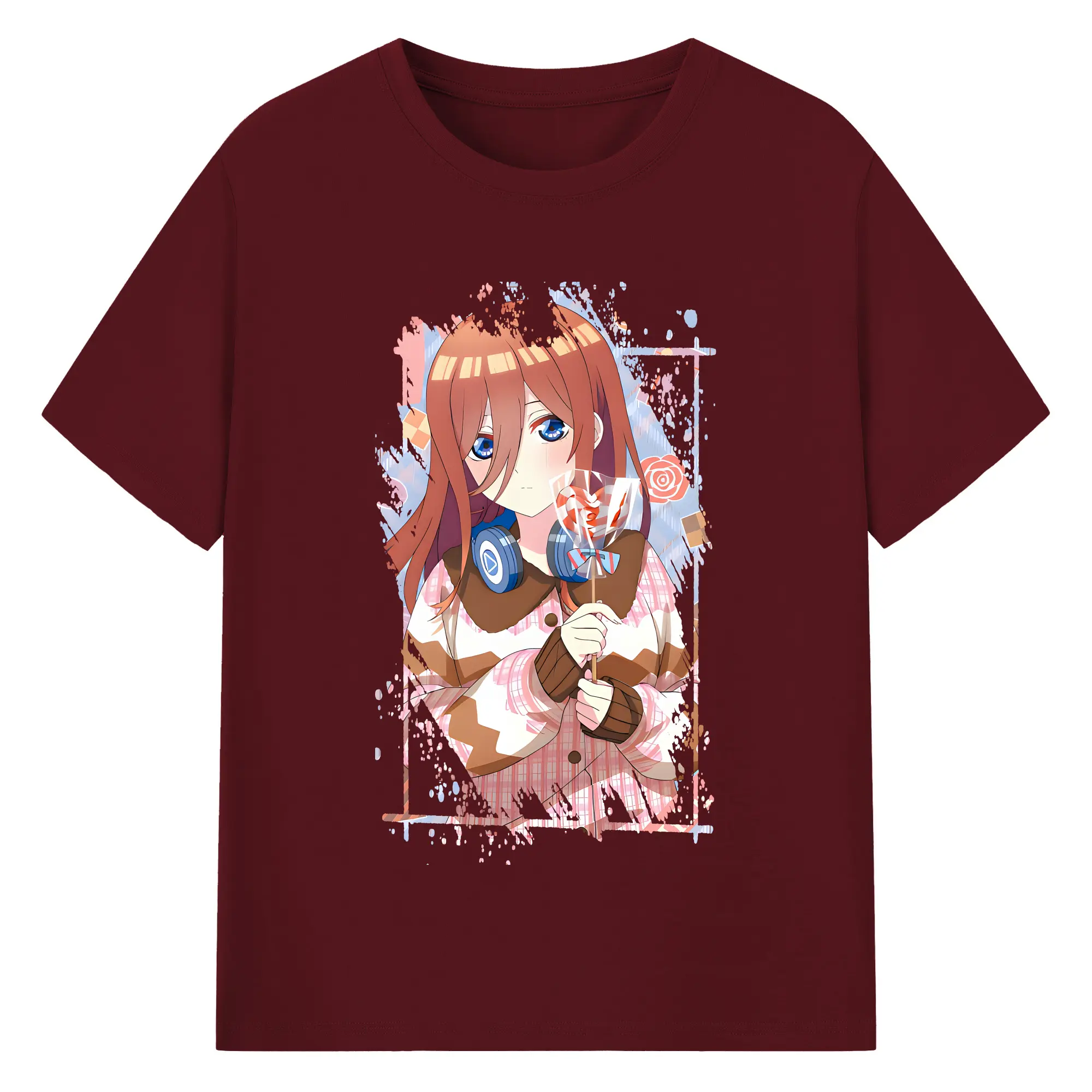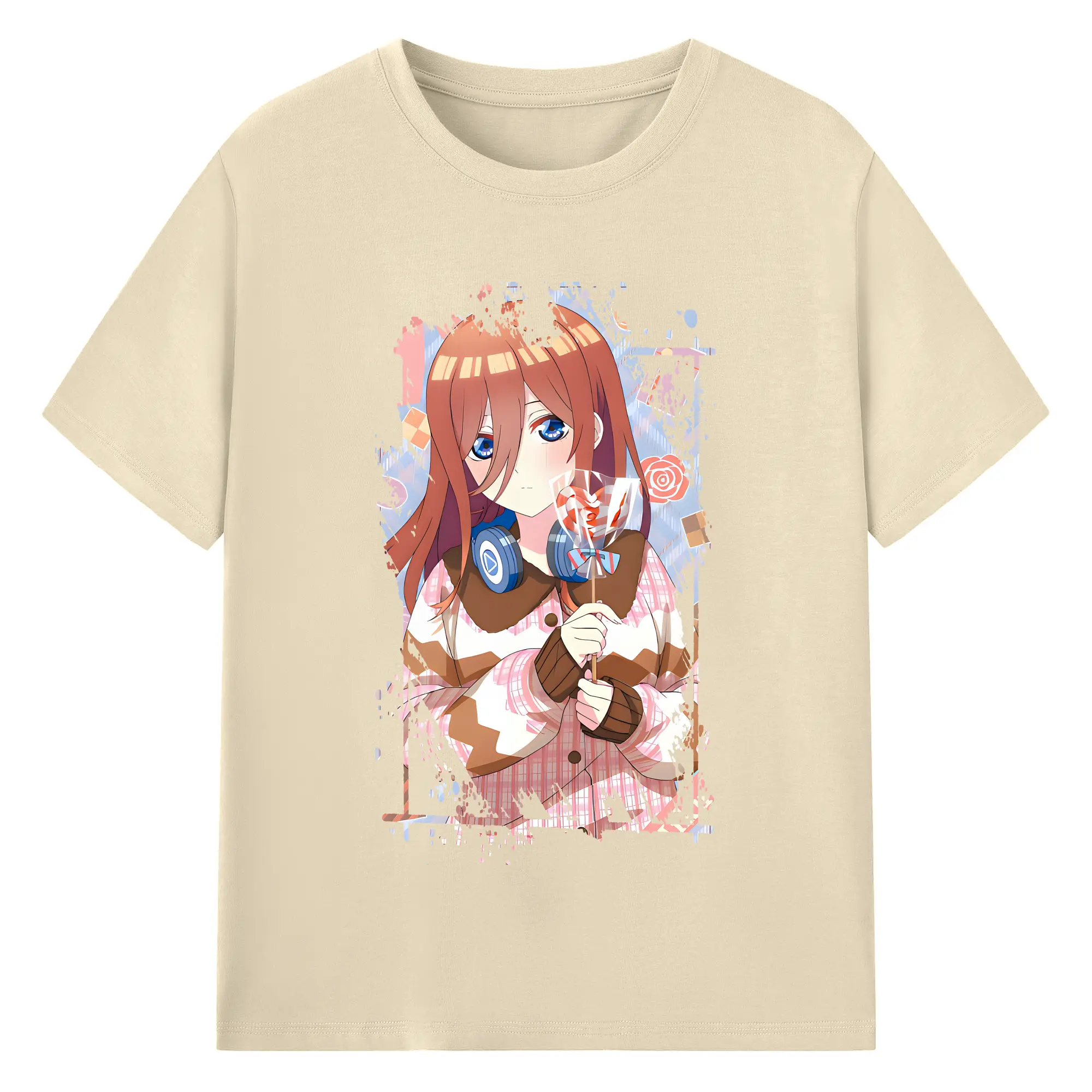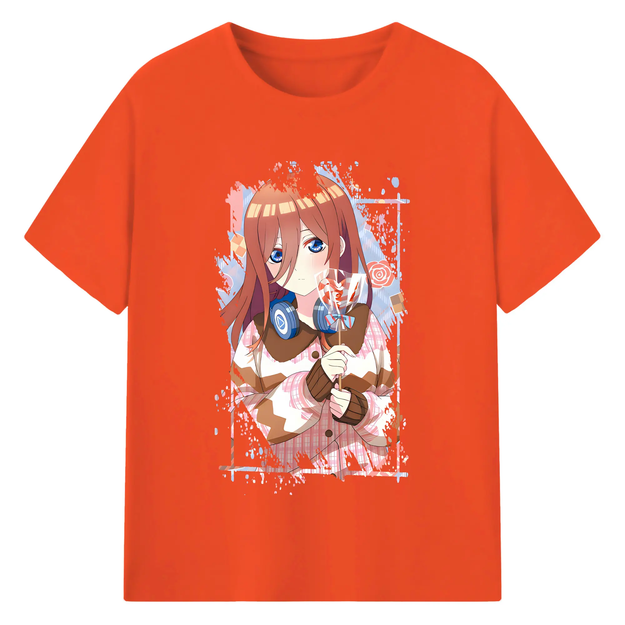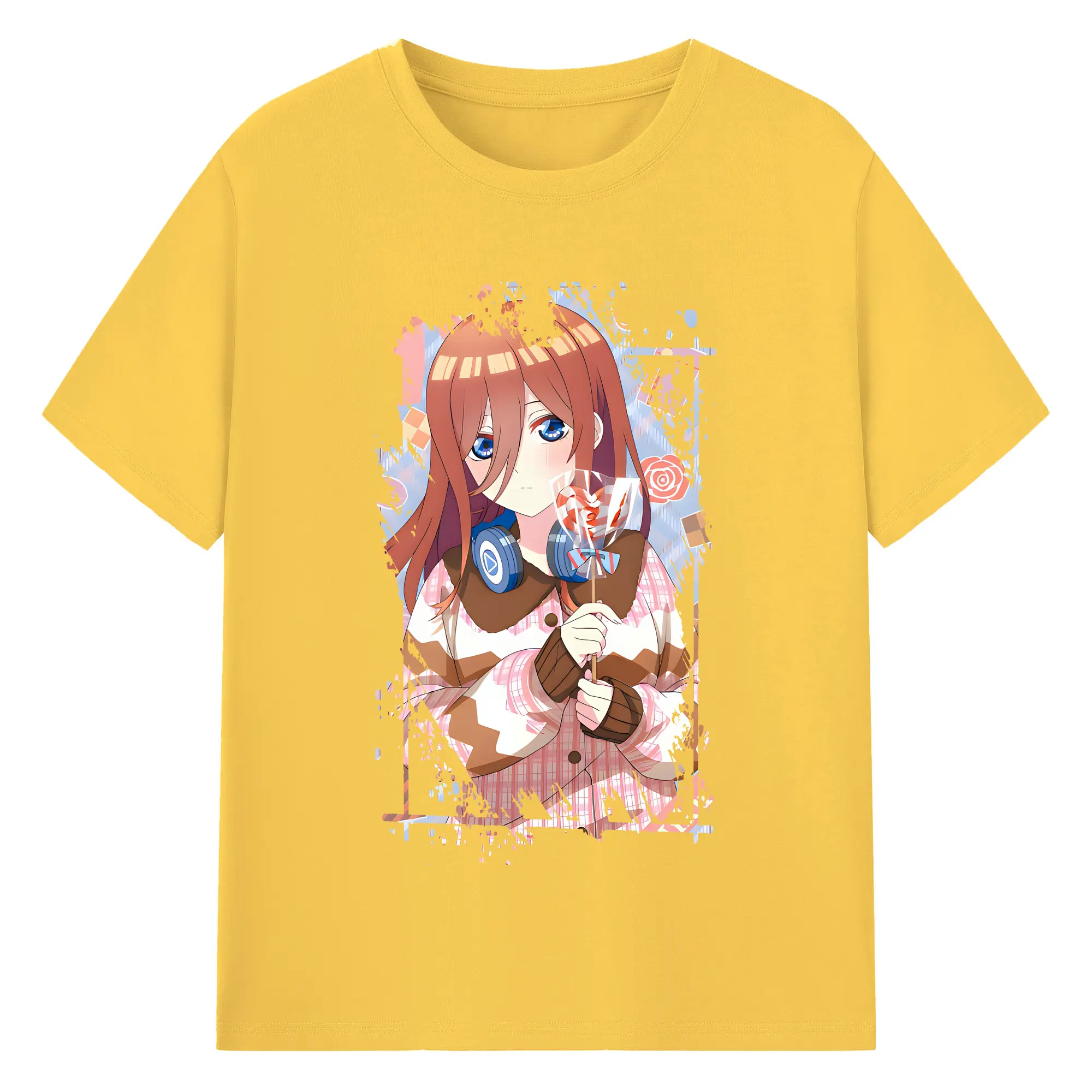 五等分の花嫁 グッズ 中野 三玖 - 綿100% 半袖Tシャツ ・ バックプリント ・ 快適 通気性 ・ 日常使い 散歩 スポーツ用