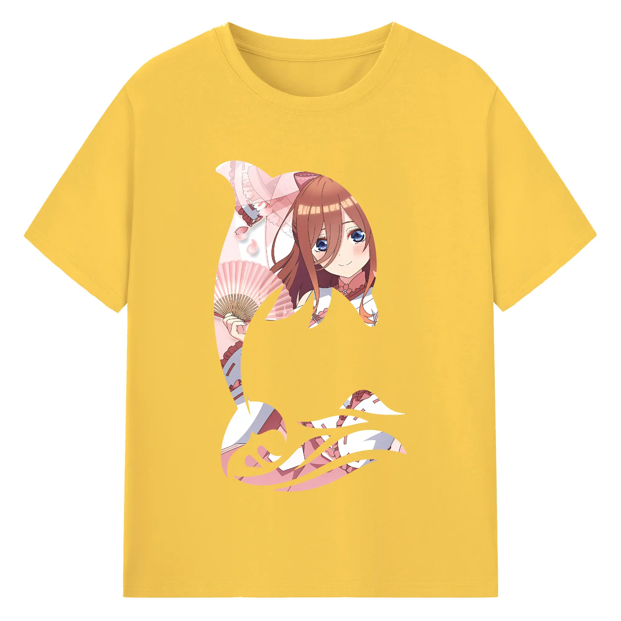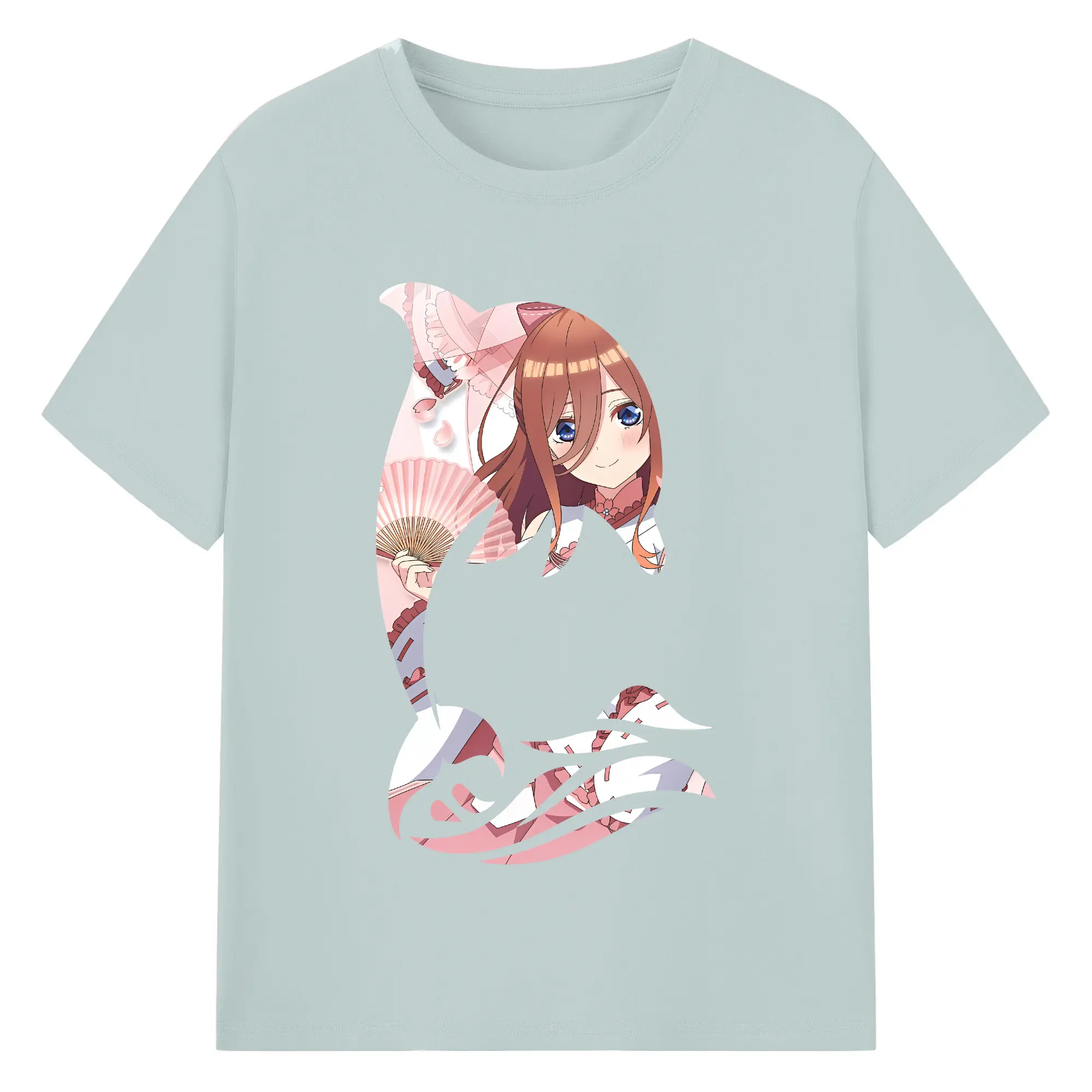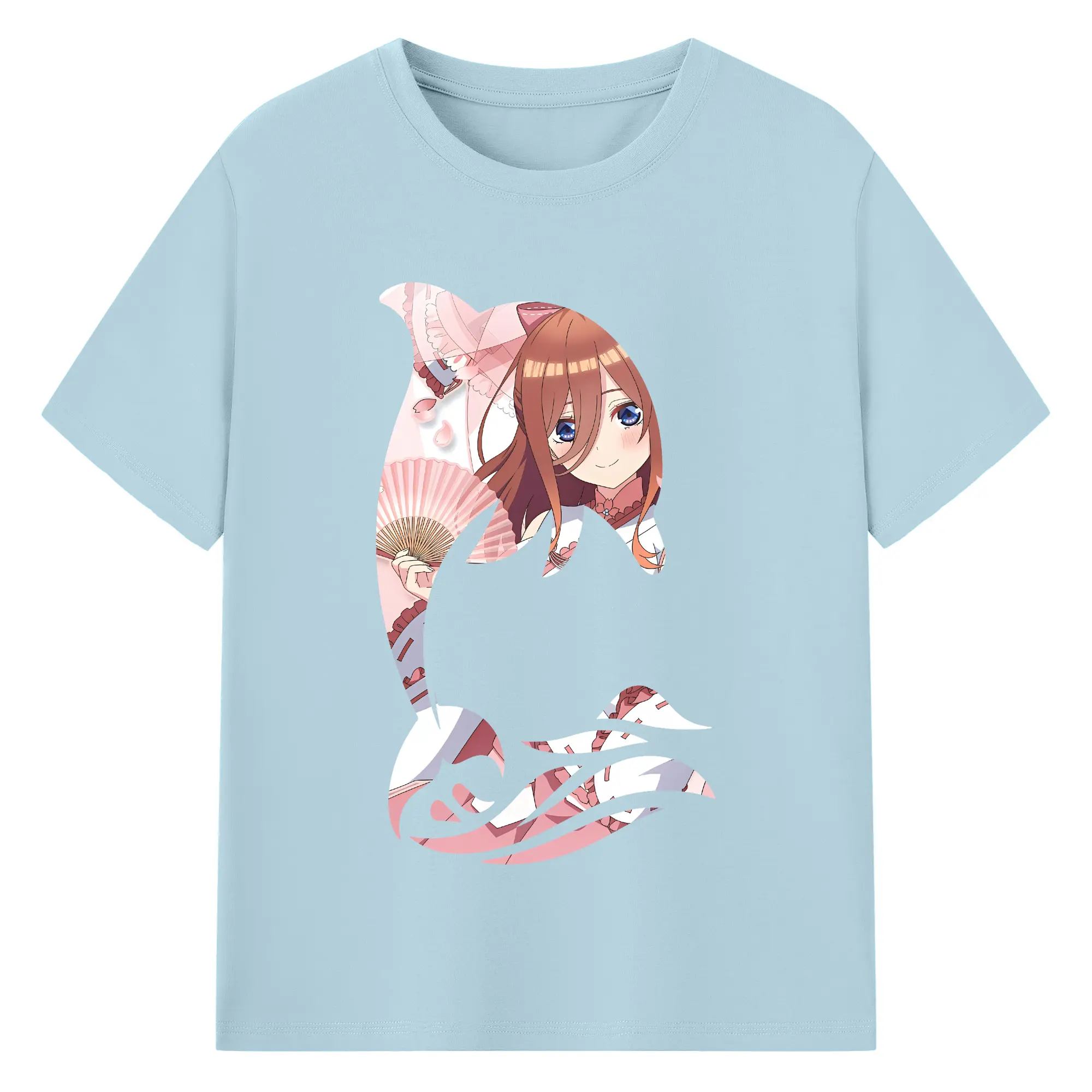 五等分の花嫁 グッズ 中野 三玖 - 綿100% 半袖Tシャツ ・ バックプリント ・ 快適 通気性 ・ 日常使い 散歩 スポーツ用