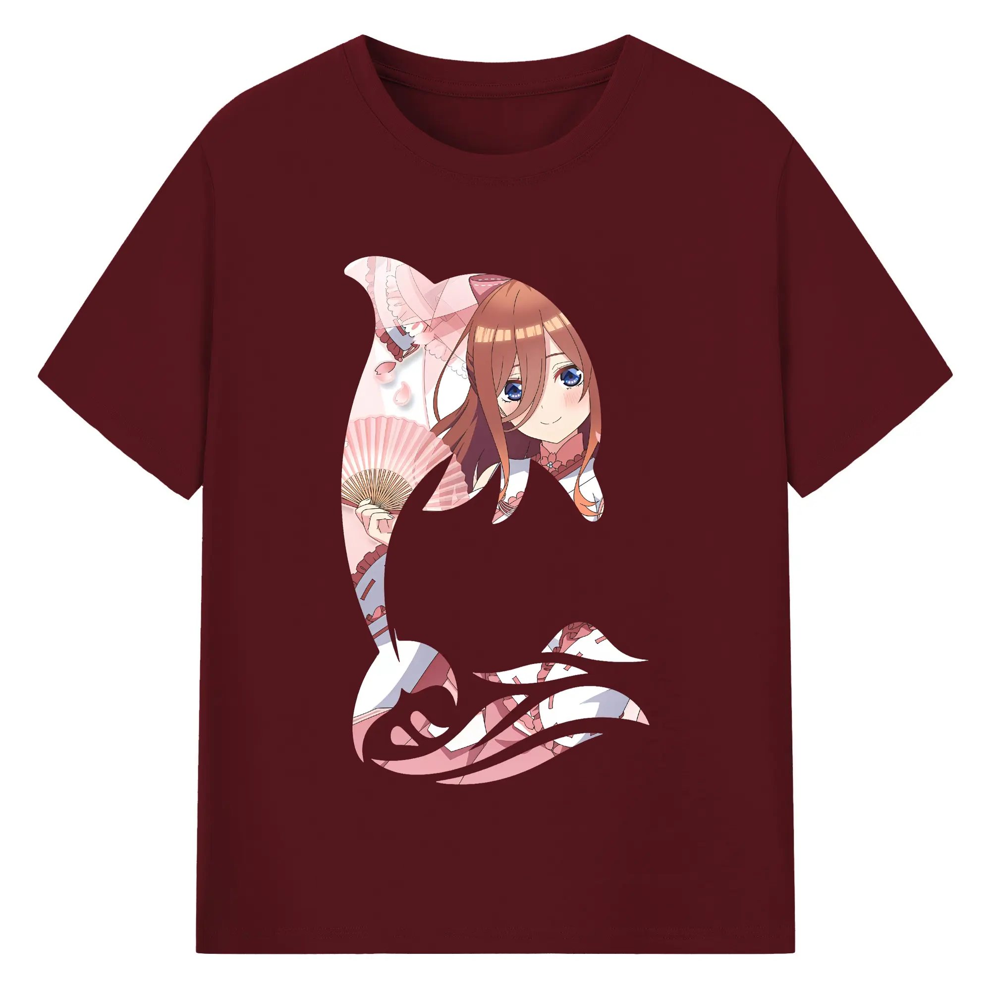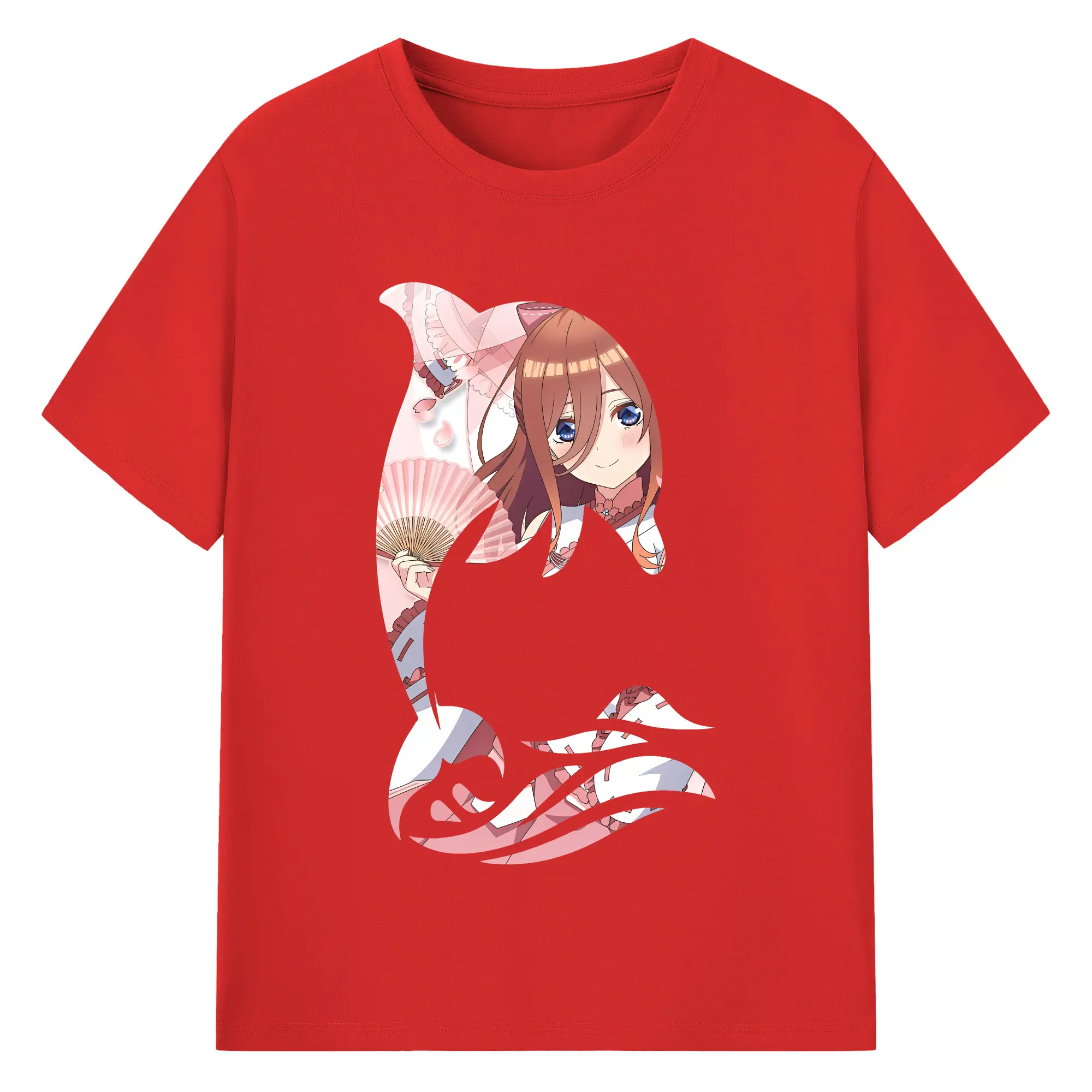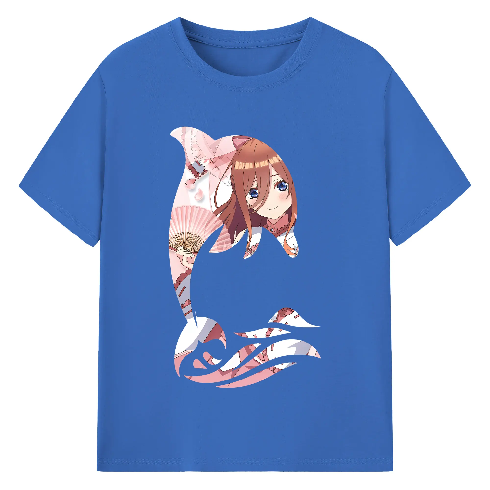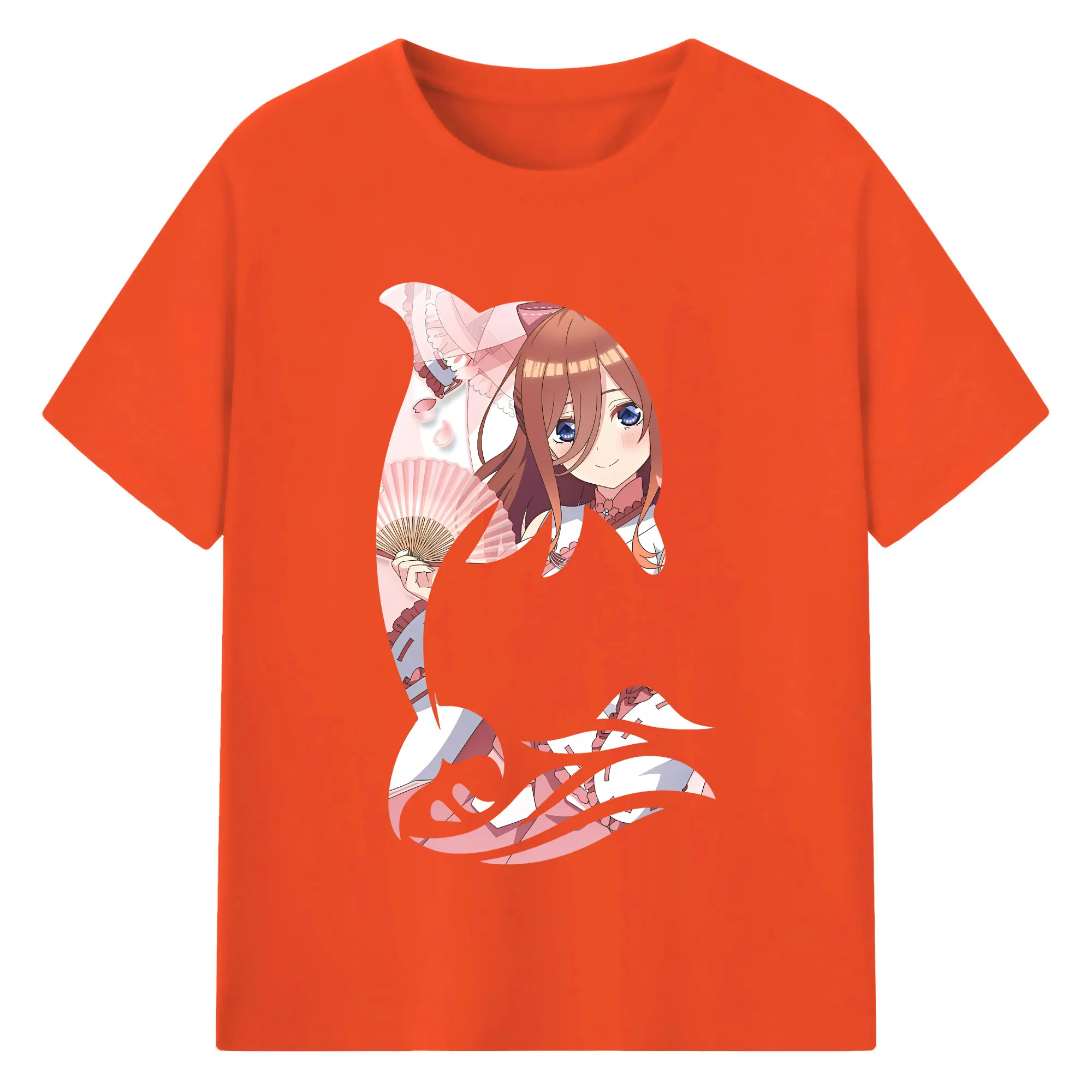 五等分の花嫁 グッズ 中野 三玖 - 綿100% 半袖Tシャツ ・ バックプリント ・ 快適 通気性 ・ 日常使い 散歩 スポーツ用