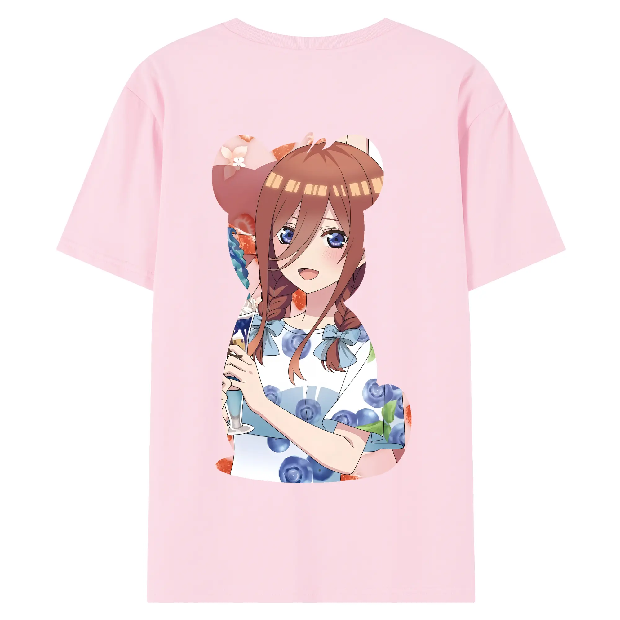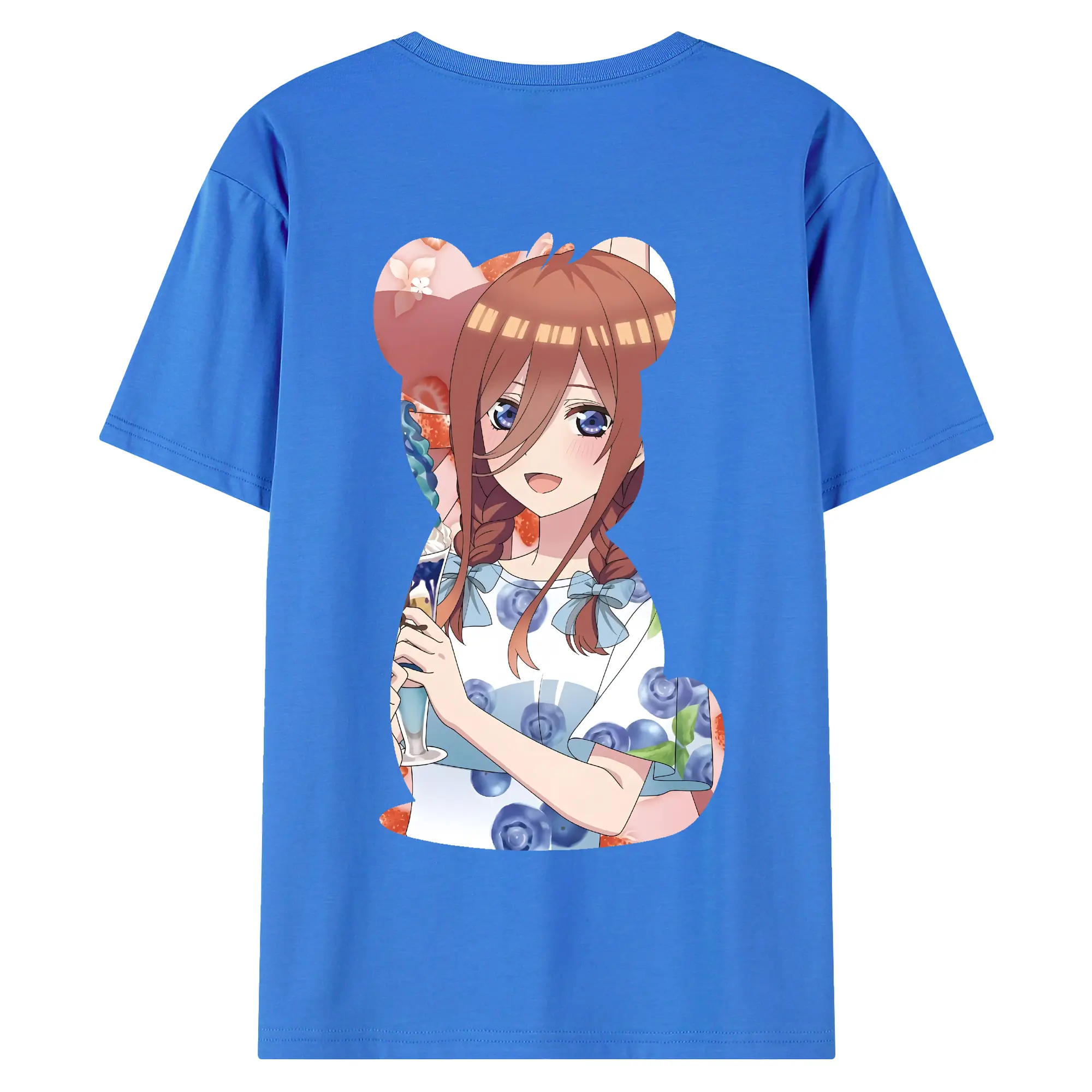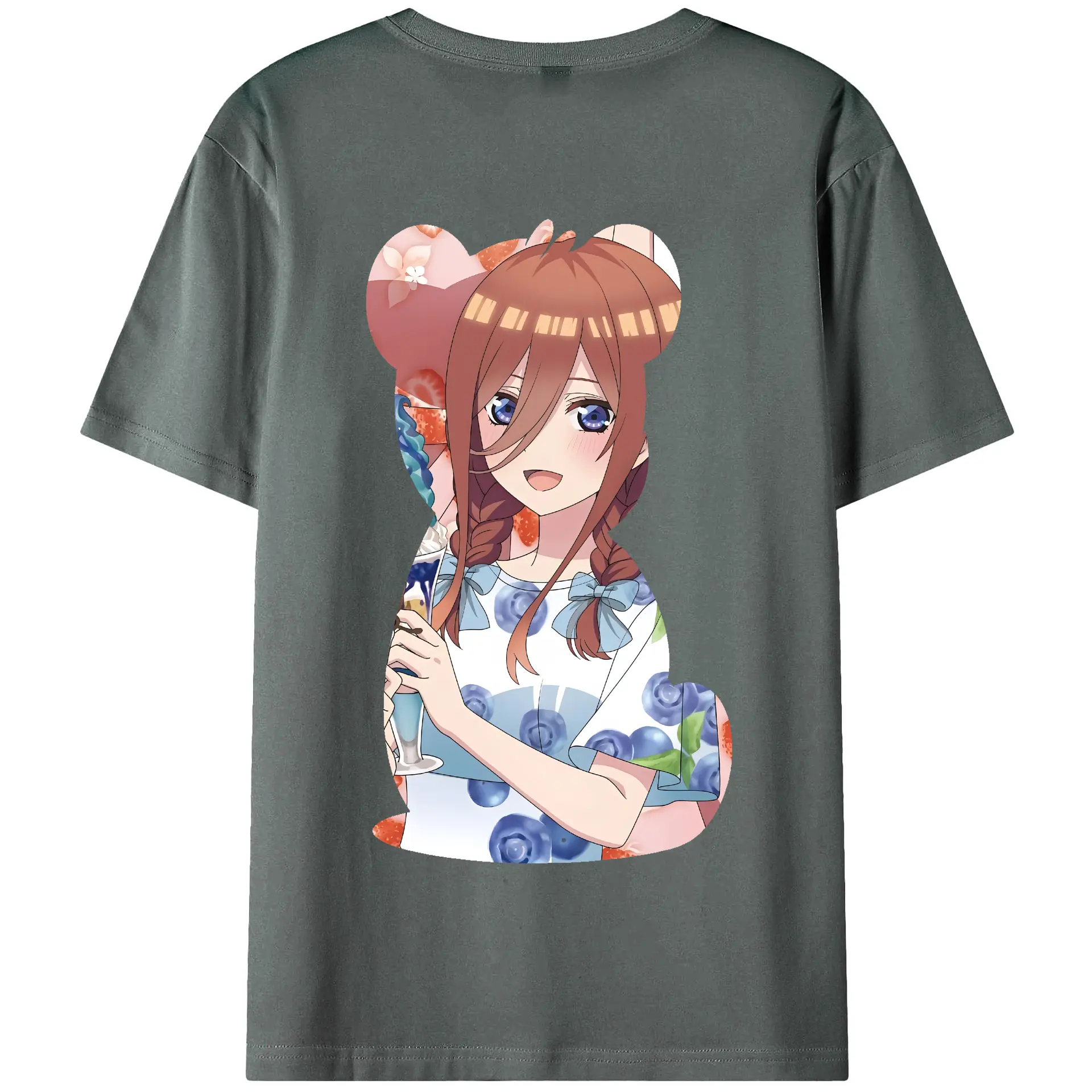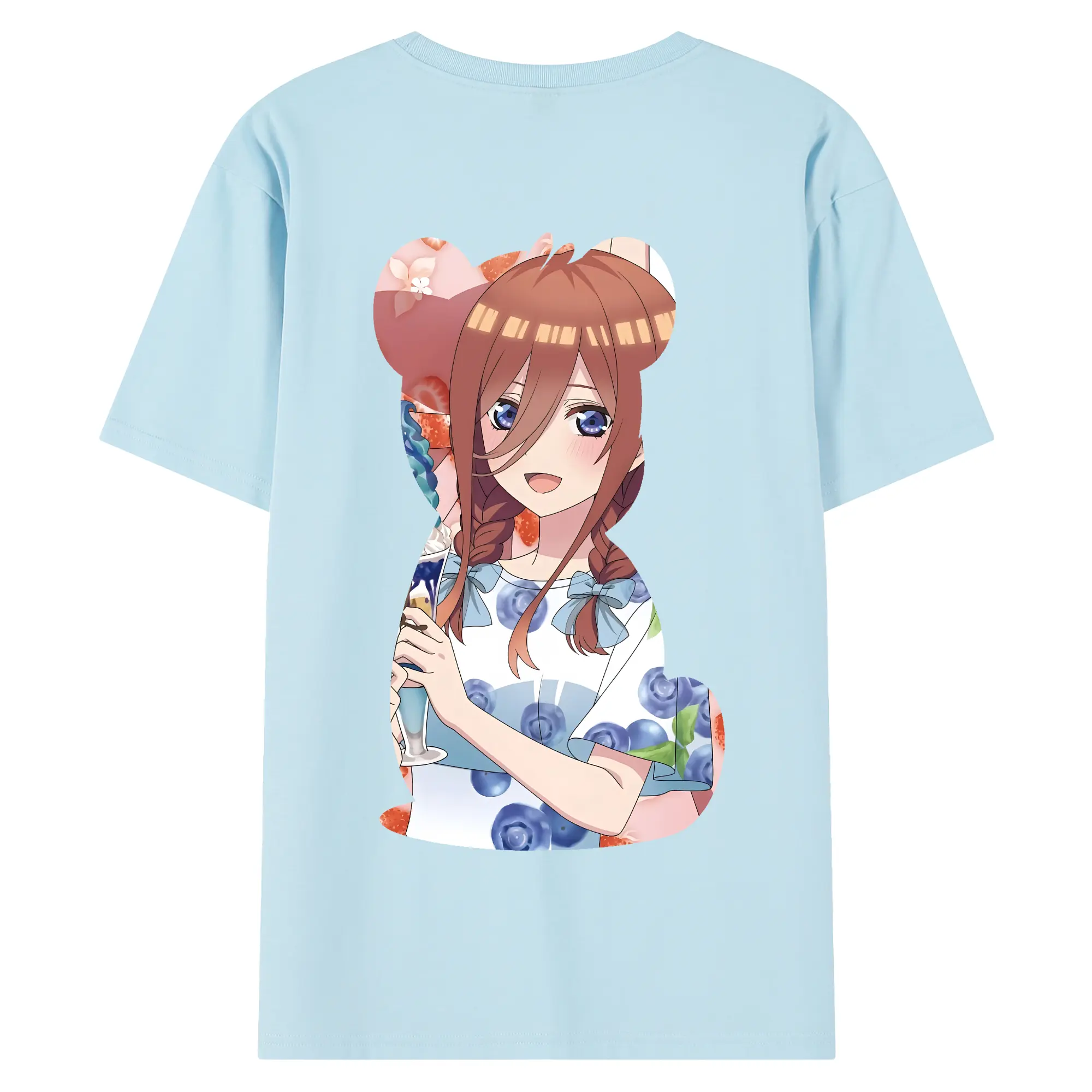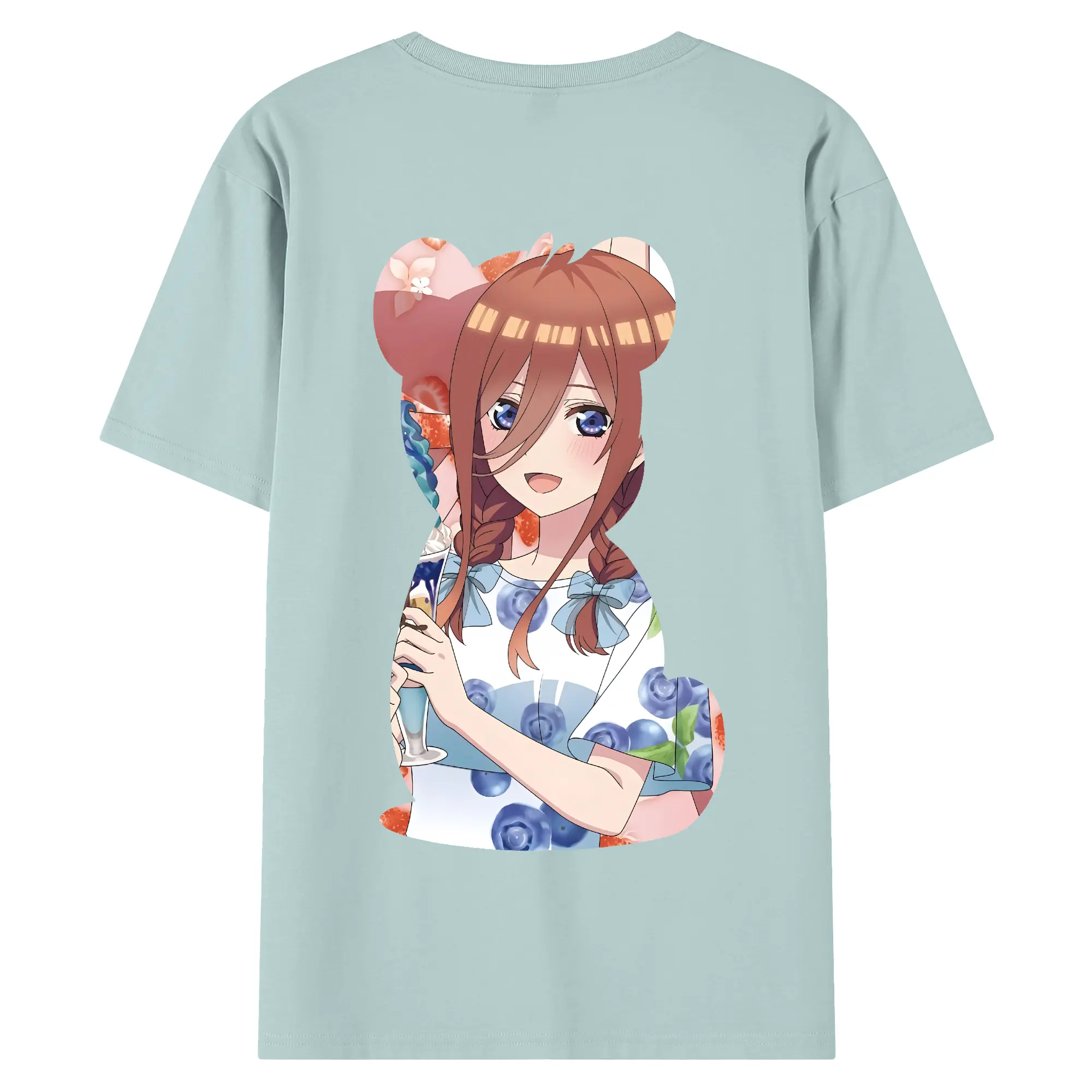 五等分の花嫁 グッズ 中野 三玖 - 綿100% 半袖Tシャツ ・ フロントプリント ・ 快適 通気性 ・ 日常使い 散歩 スポーツ用