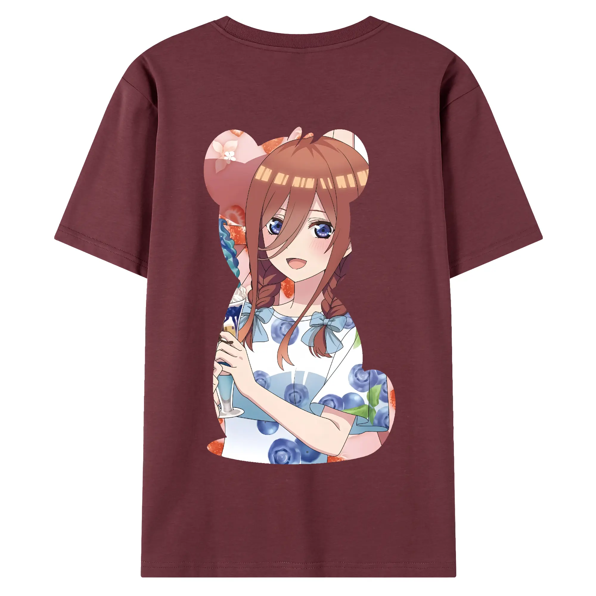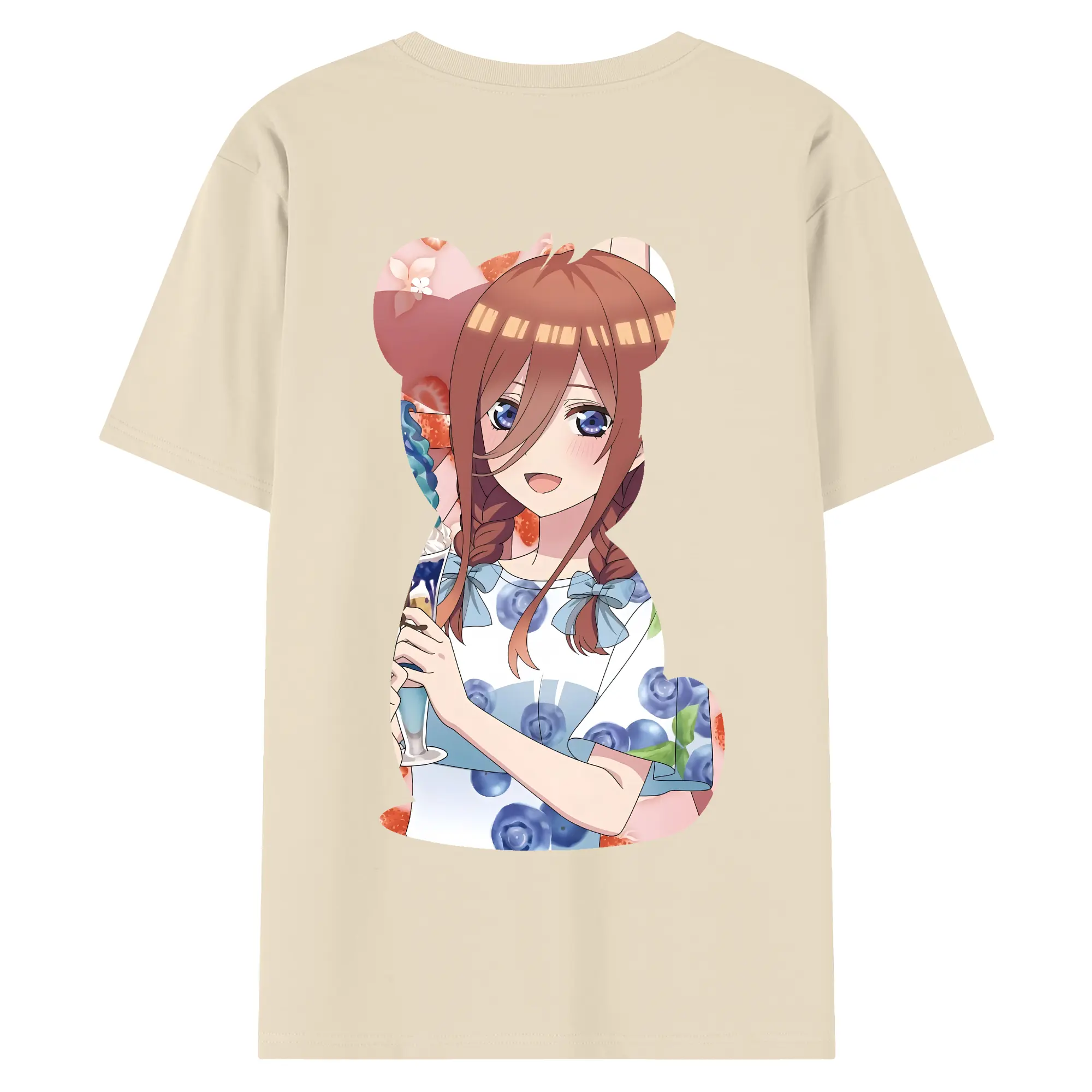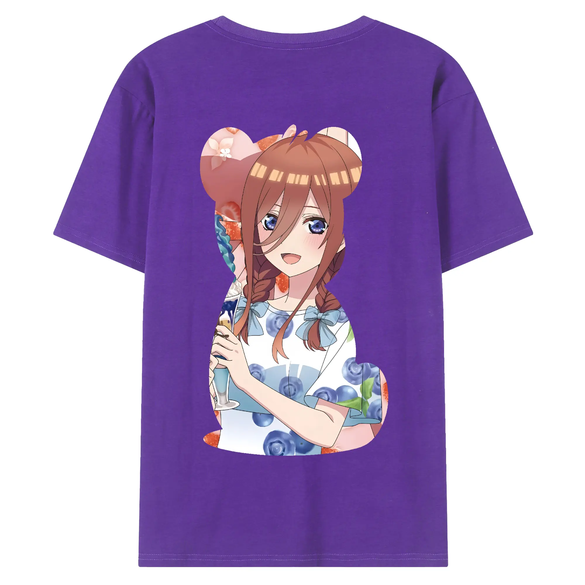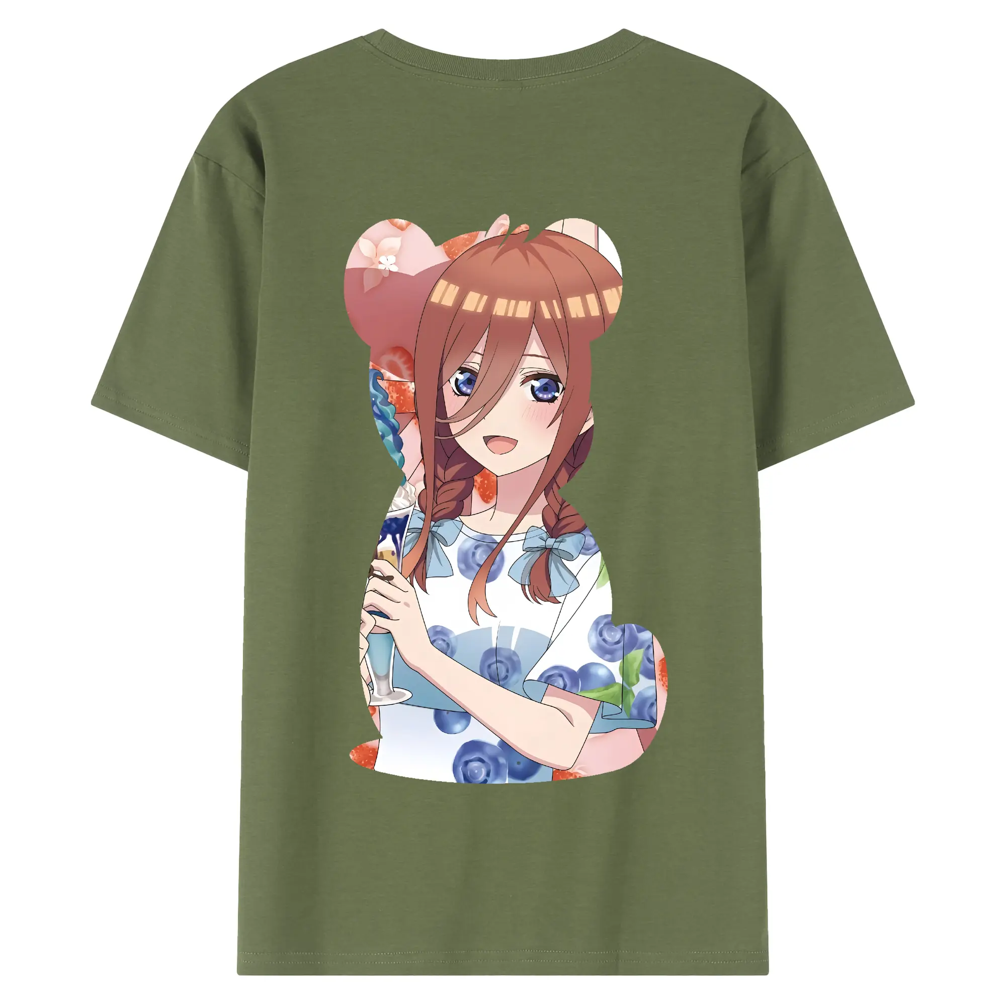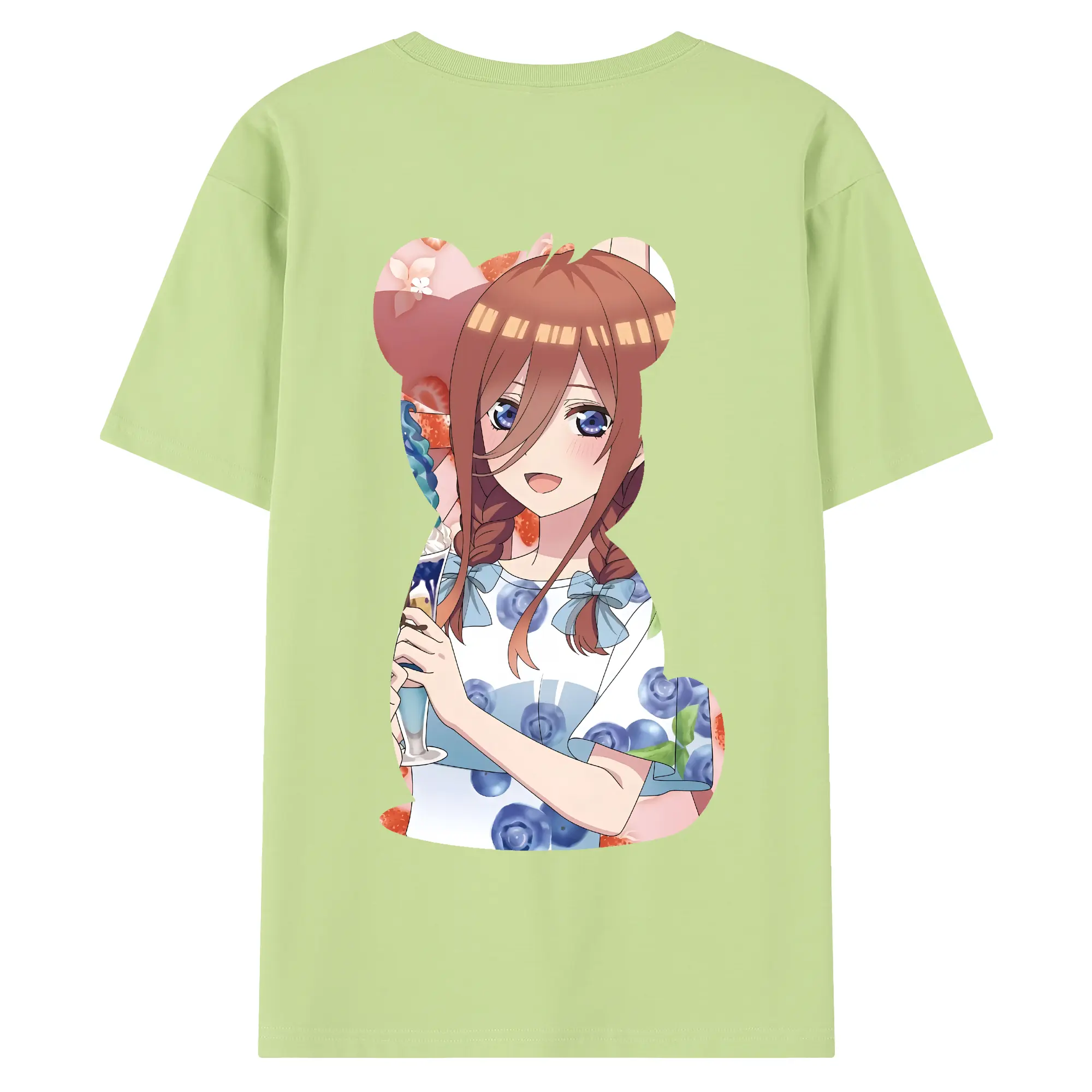 五等分の花嫁 グッズ 中野 三玖 - 綿100% 半袖Tシャツ ・ フロントプリント ・ 快適 通気性 ・ 日常使い 散歩 スポーツ用