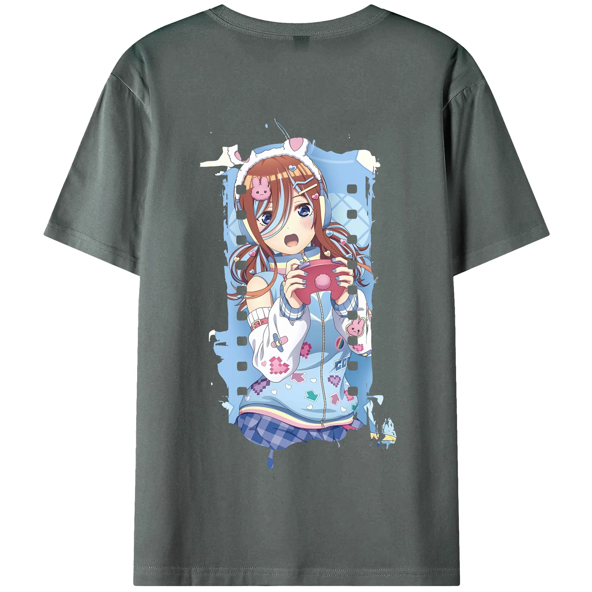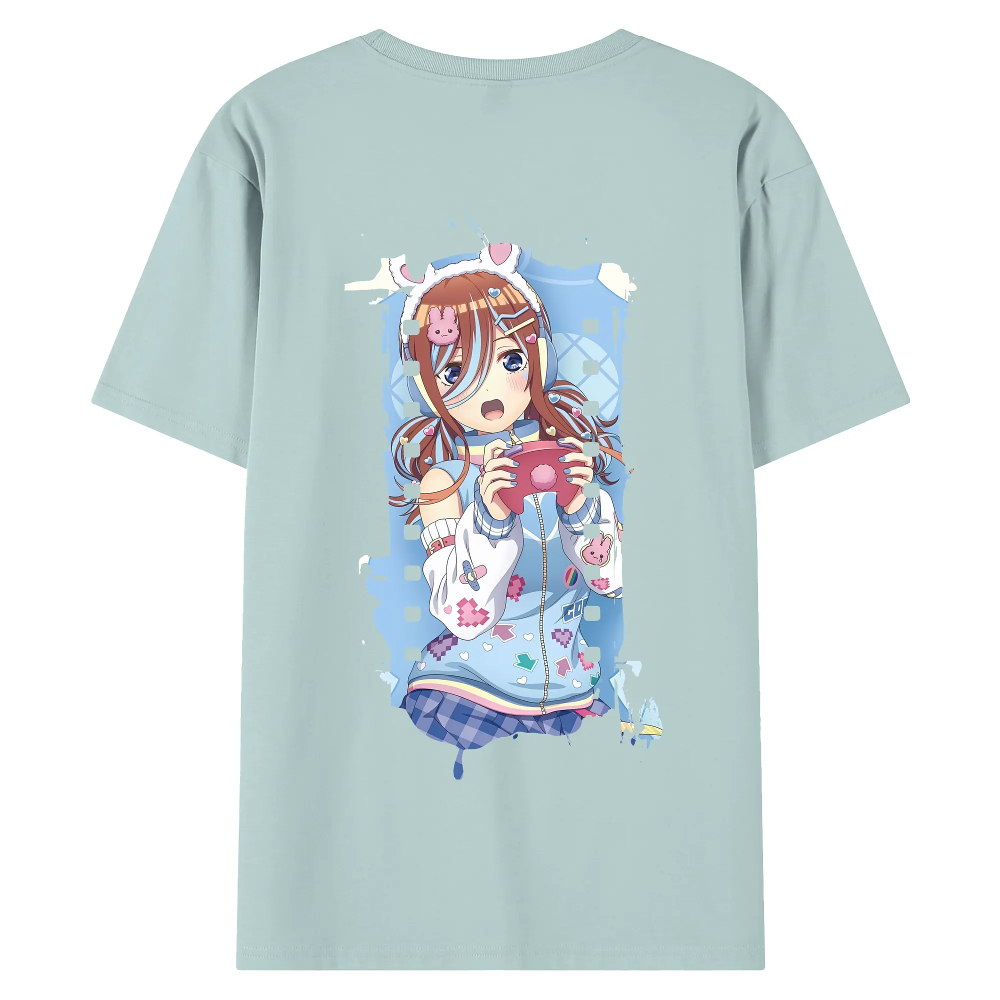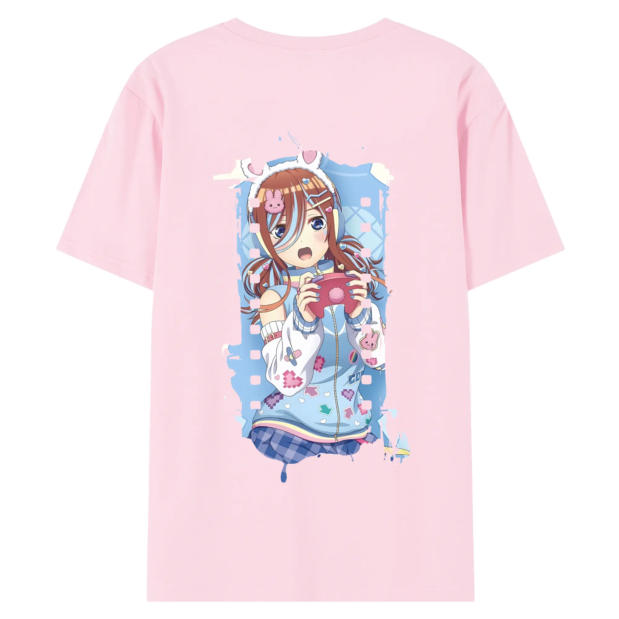 五等分の花嫁 グッズ 中野 三玖 - 綿100% 半袖Tシャツ ・ フロントプリント ・ 快適 通気性 ・ 日常使い 散歩 スポーツ用