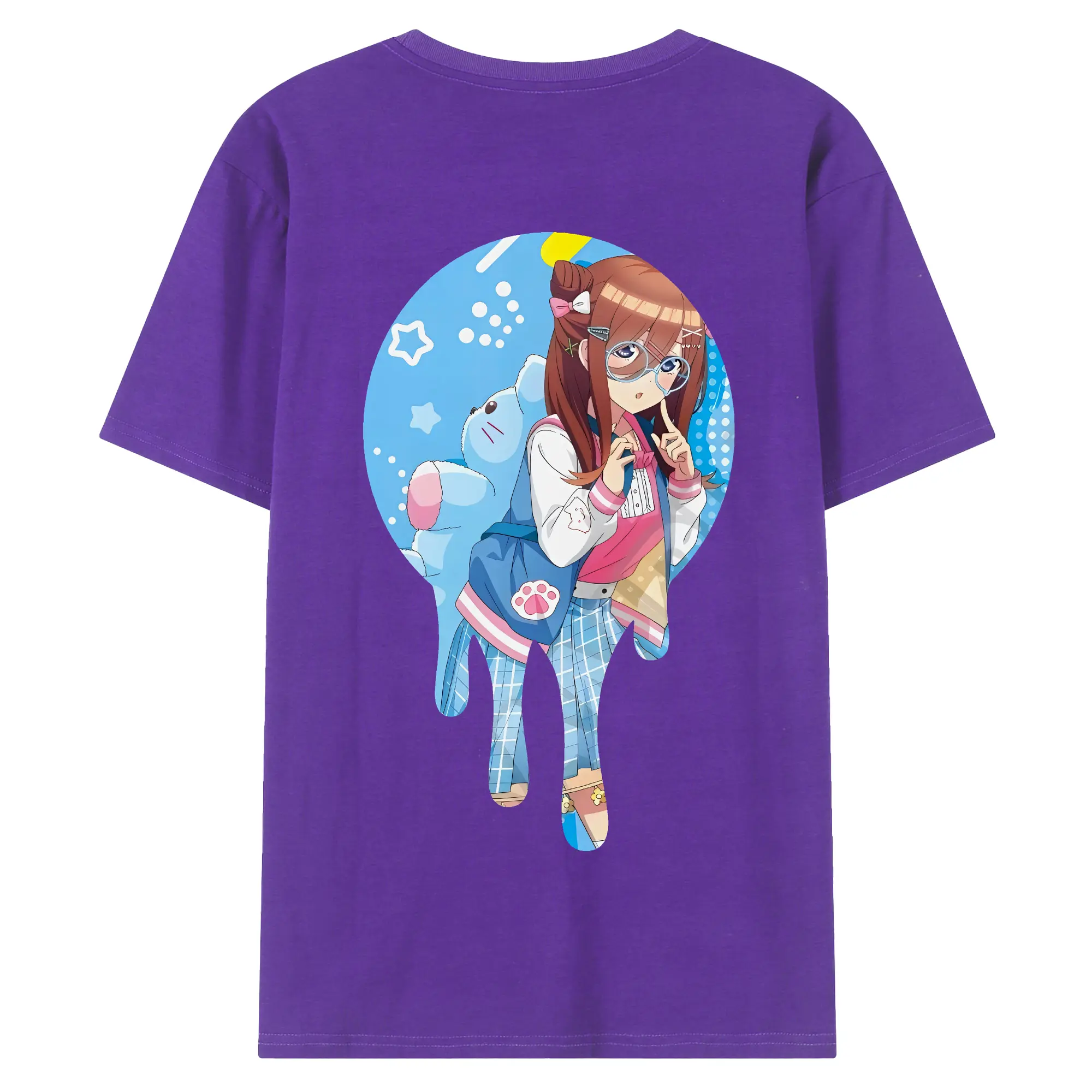 アイカツ グッズ 紫吹 蘭 - 綿100% 半袖Tシャツ ・ バックプリント ・ 快適 通気性 ・ 日常使い 散歩 スポーツ用