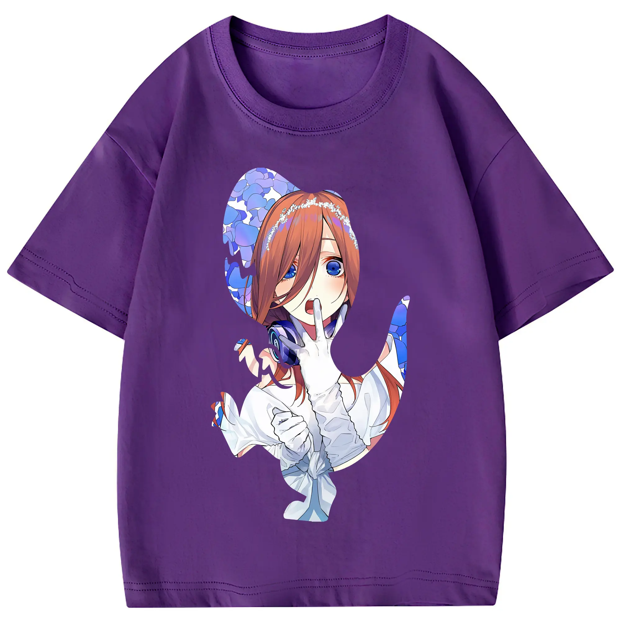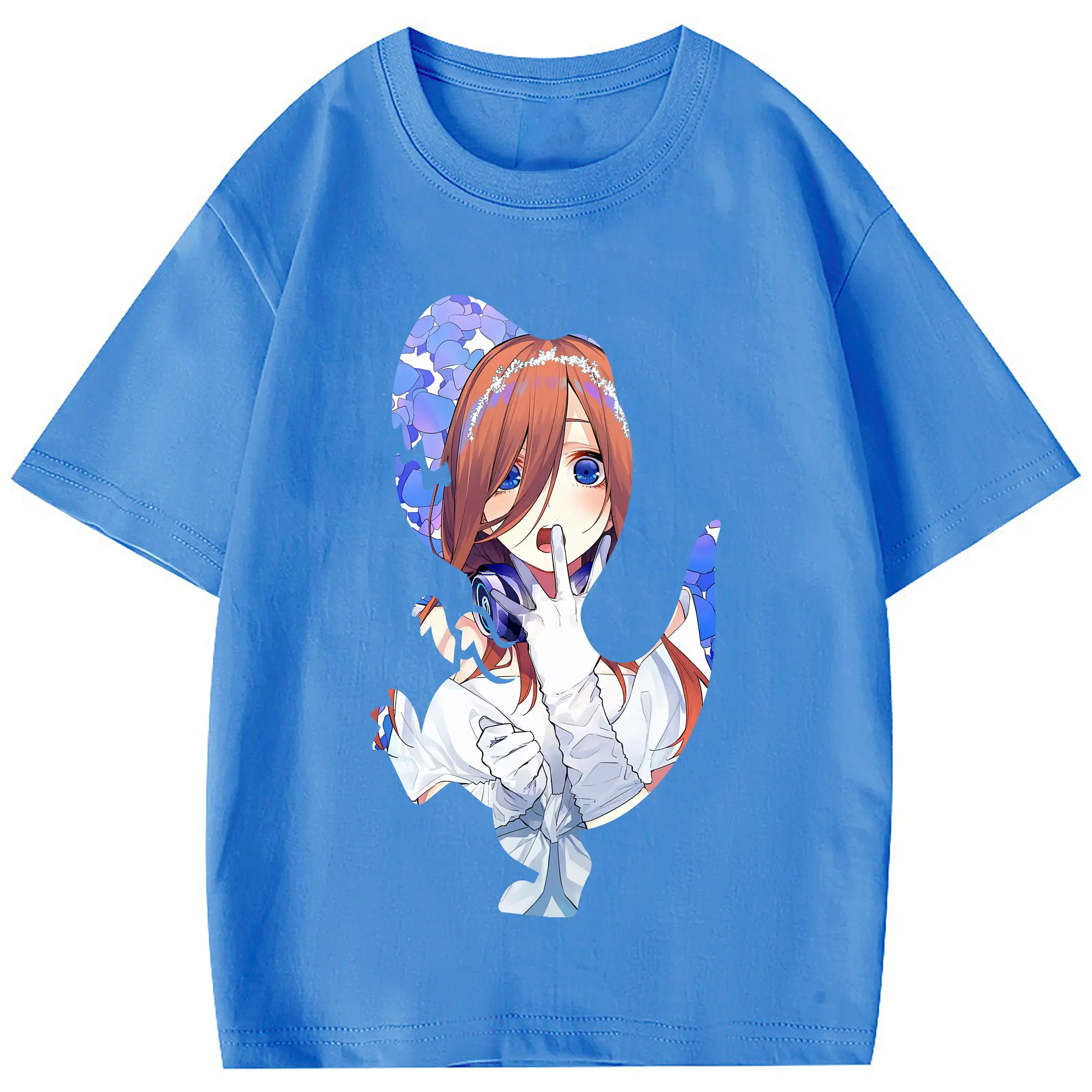五等分の花嫁 グッズ 中野 三玖 - 綿100% 半袖Tシャツ ・ フロントプリント ・ 快適 通気性 ・ 日常使い 散歩 スポーツ用