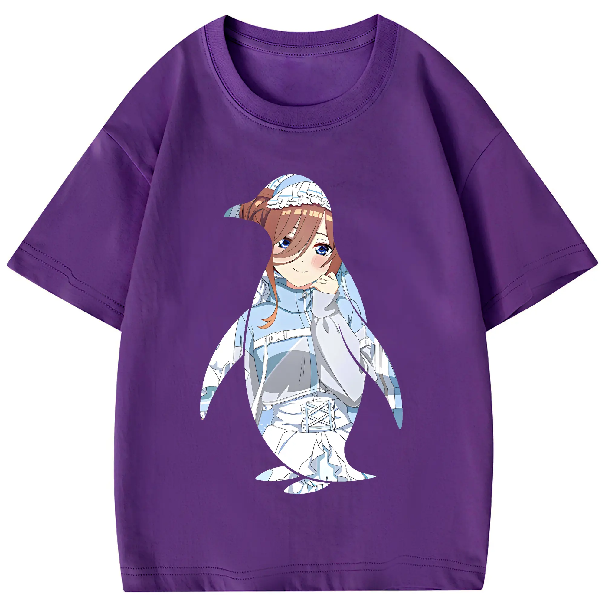 五等分の花嫁 グッズ 中野 三玖 - 綿100% 半袖Tシャツ ・ フロントプリント ・ 快適 通気性 ・ 日常使い 散歩 スポーツ用