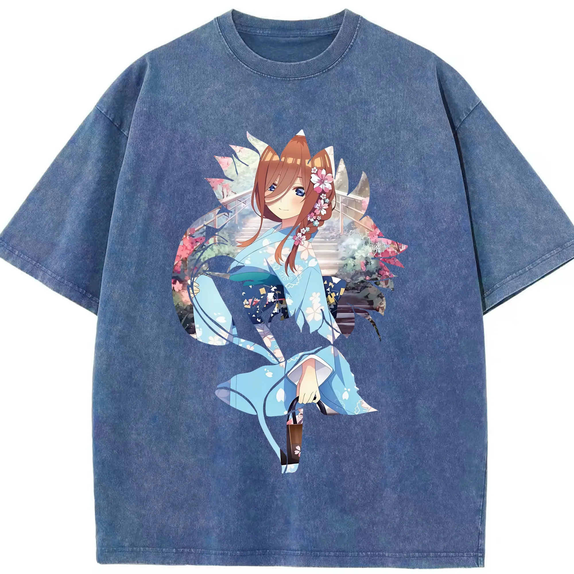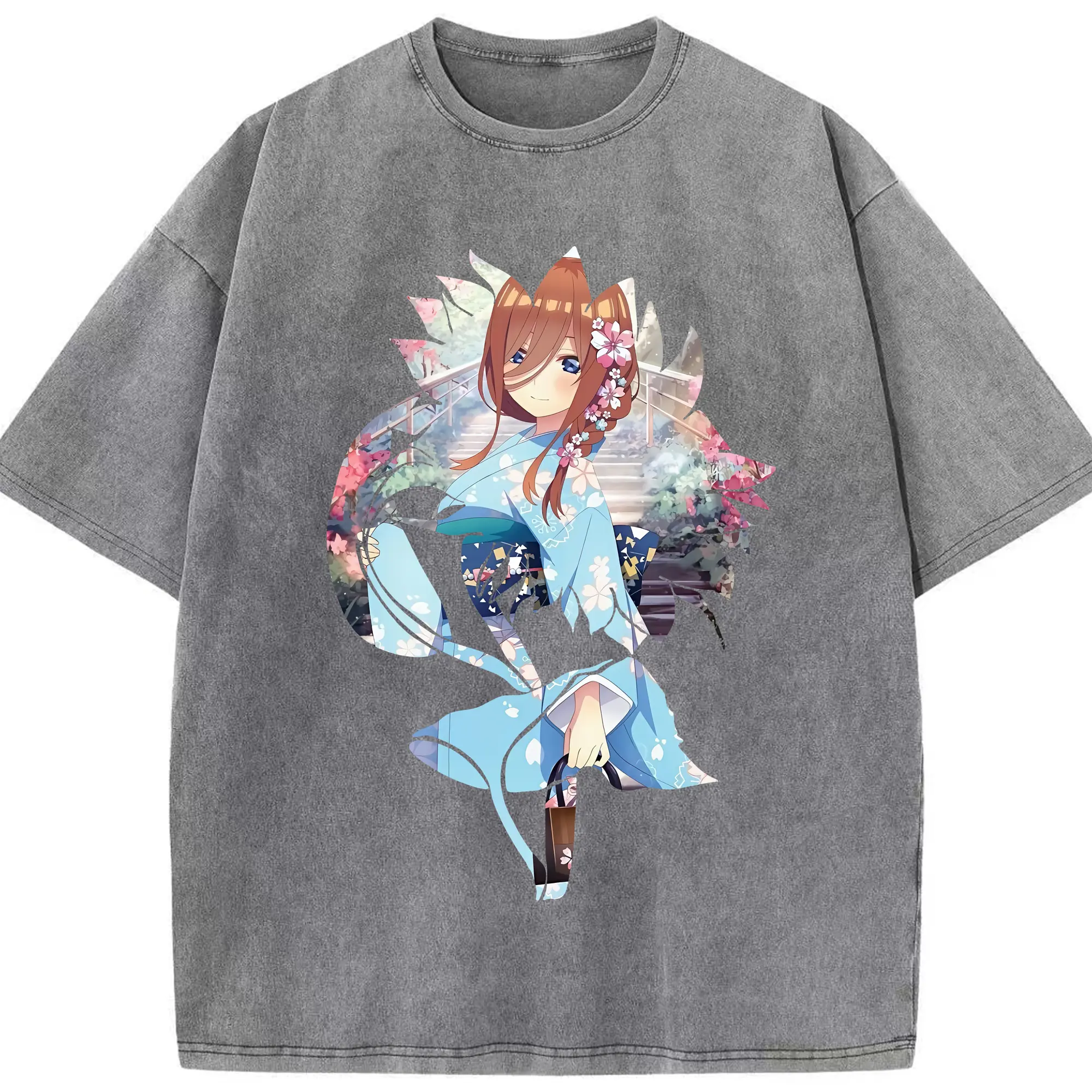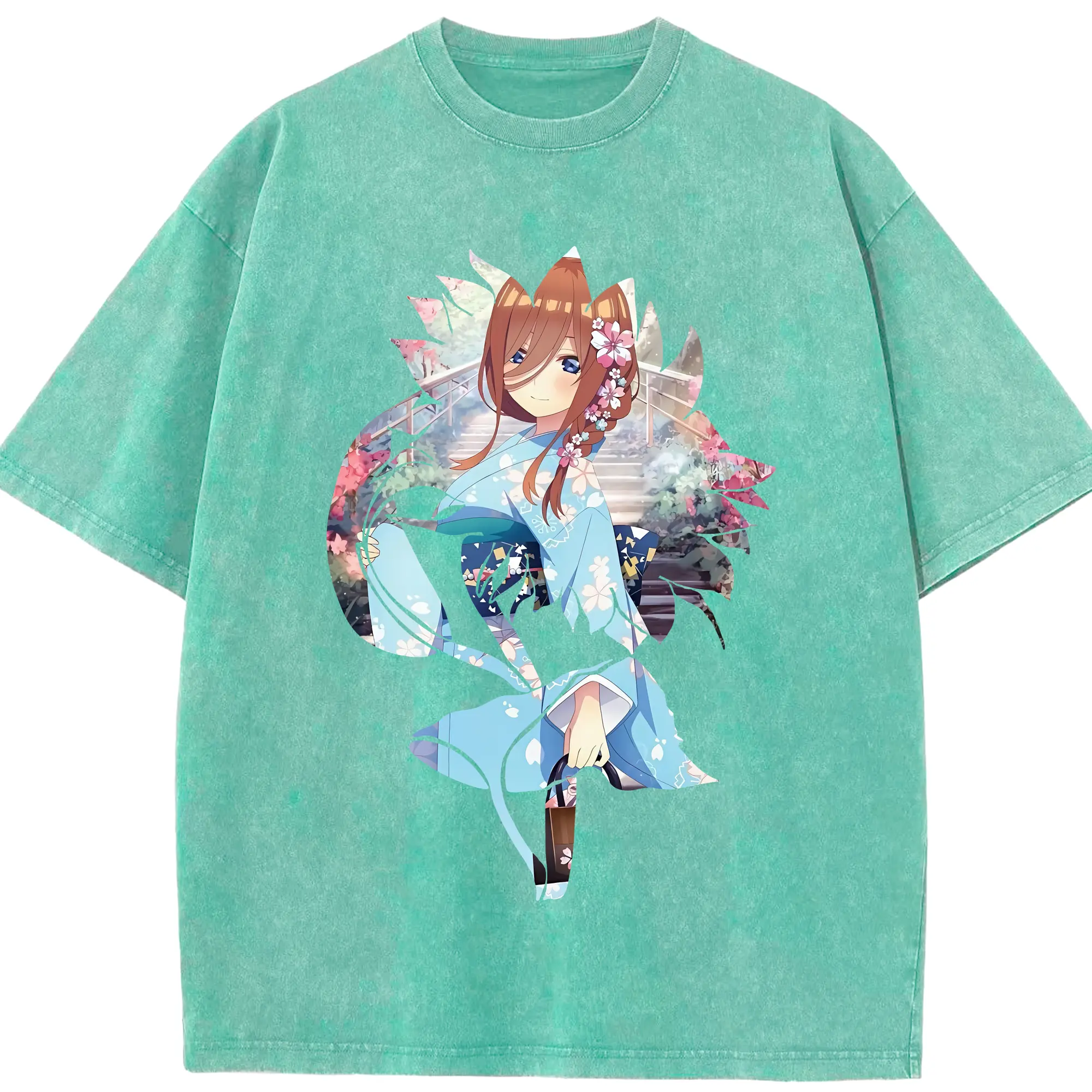 五等分の花嫁 グッズ 中野 三玖 - 綿100% ヴィンテージ風 半袖Tシャツ ・ 背面プリント ・ 柔らか肌触り ・ 通気性 快適 ・ スポーツ カジュアル 外出用