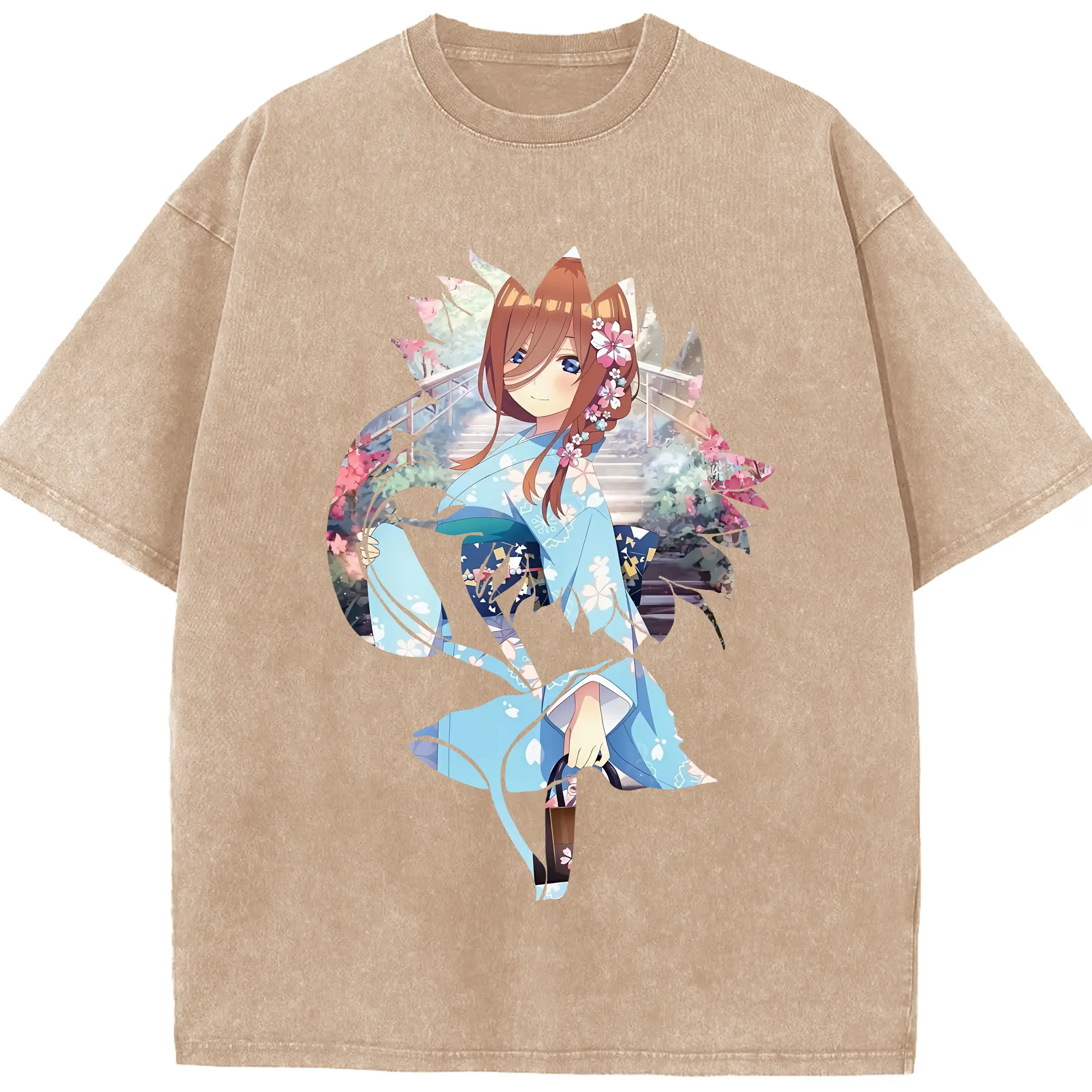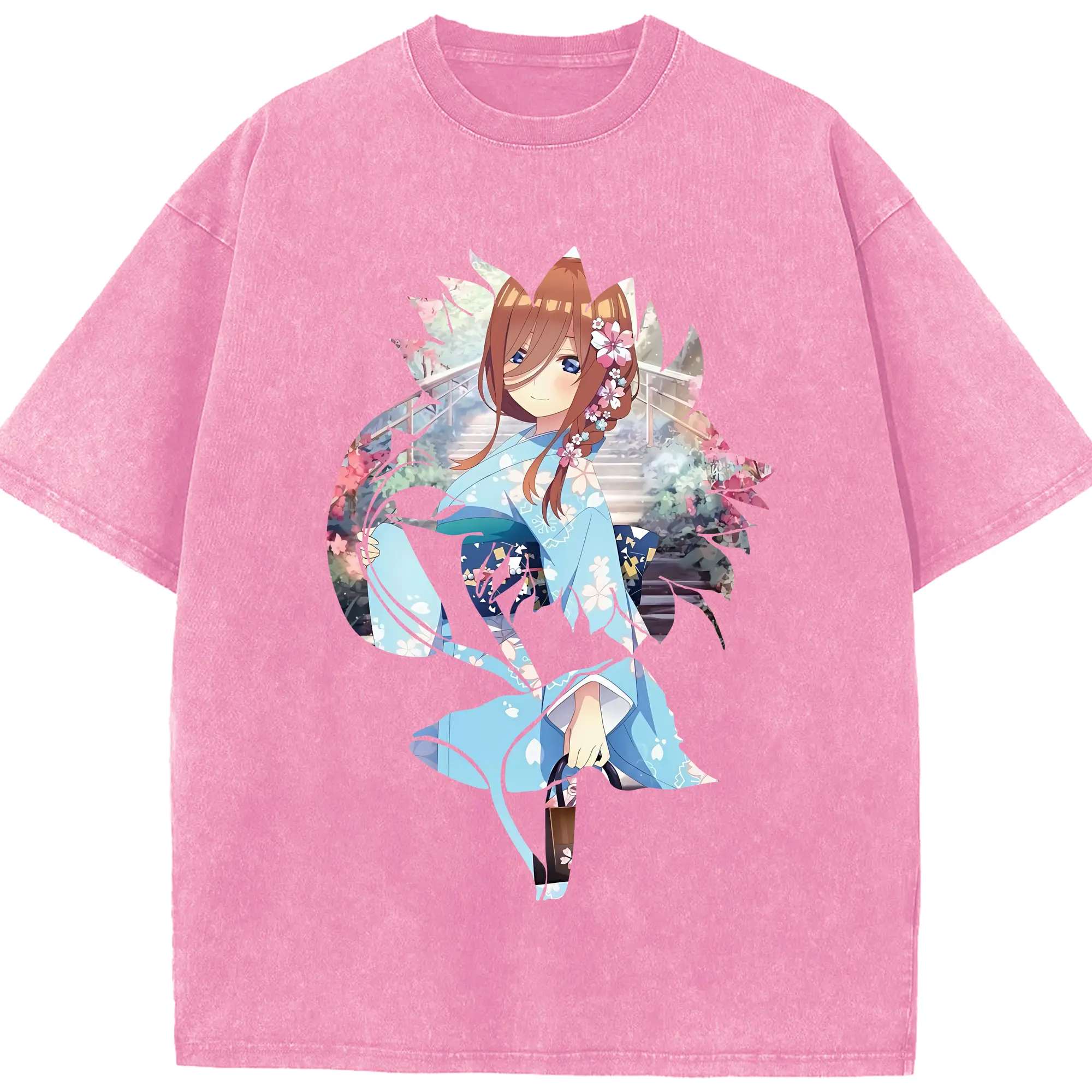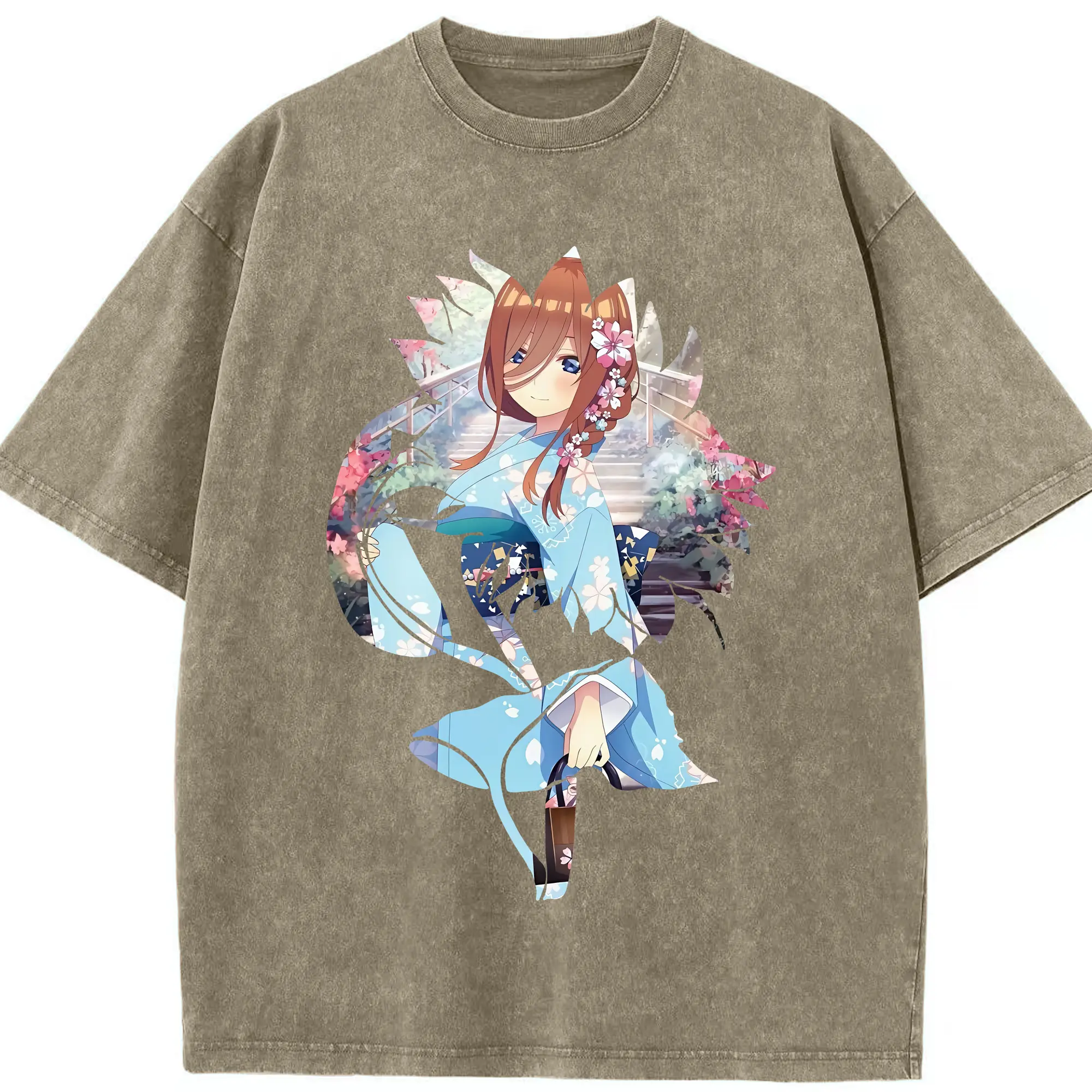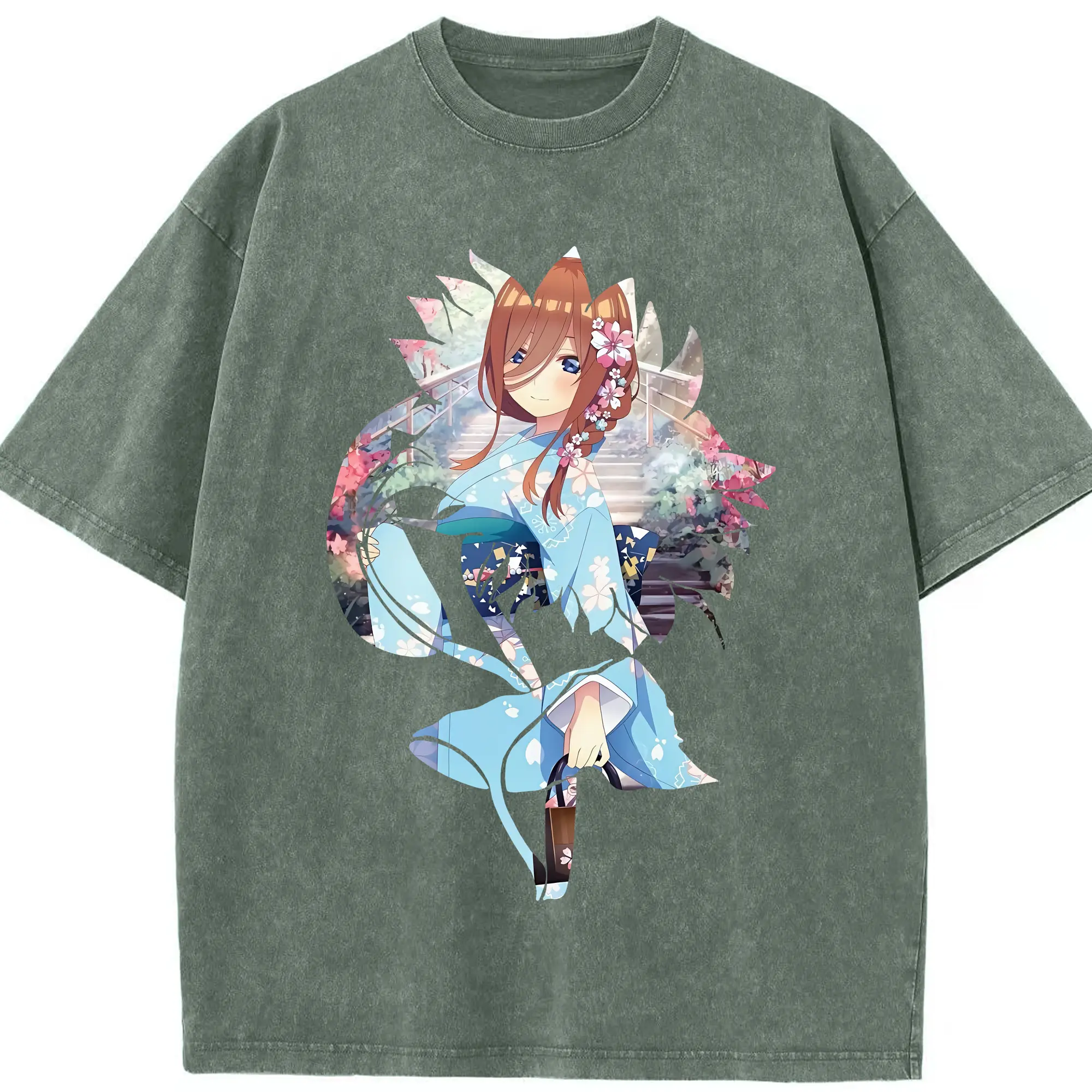 五等分の花嫁 グッズ 中野 三玖 - 綿100% ヴィンテージ風 半袖Tシャツ ・ 背面プリント ・ 柔らか肌触り ・ 通気性 快適 ・ スポーツ カジュアル 外出用