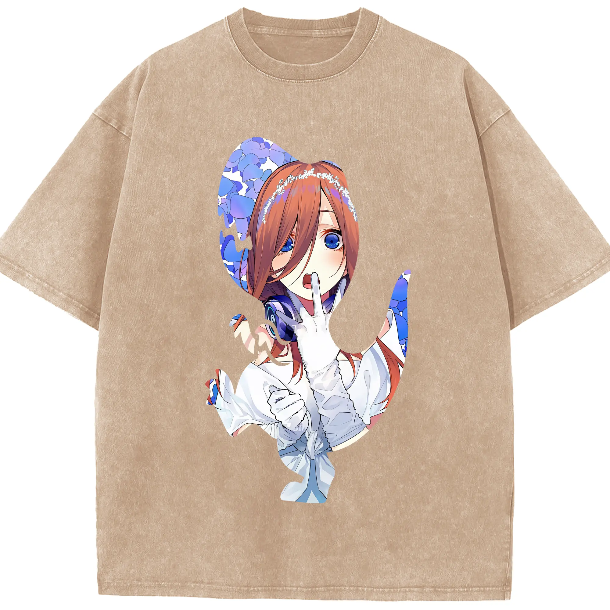 五等分の花嫁 グッズ 中野 三玖 - 綿100% ヴィンテージ風 半袖Tシャツ ・ 背面プリント ・ 柔らか肌触り ・ 通気性 快適 ・ スポーツ カジュアル 外出用