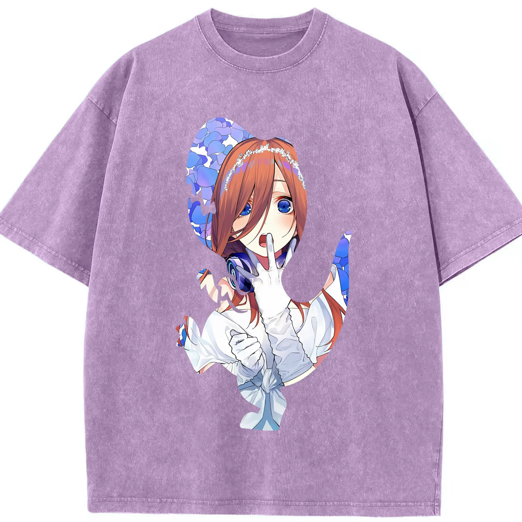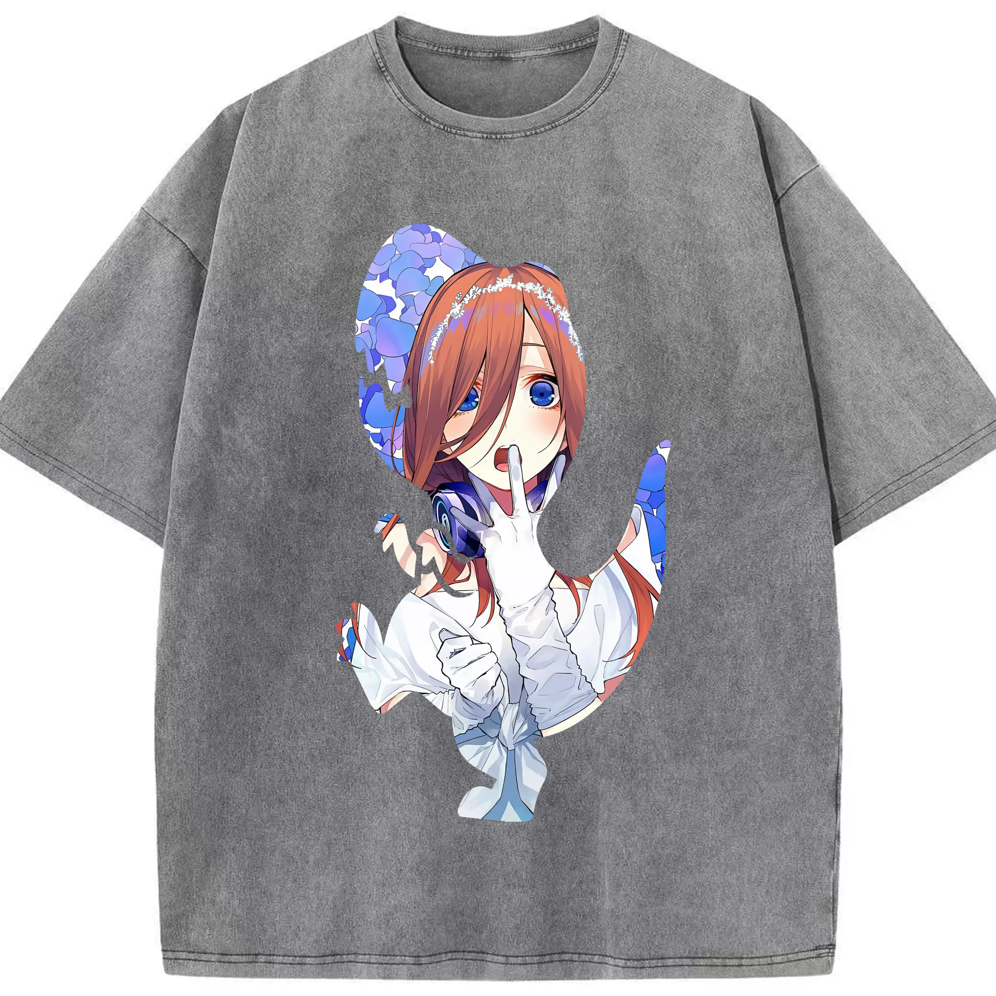 五等分の花嫁 グッズ 中野 三玖 - 綿100% 半袖Tシャツ ・ フロントプリント ・ 快適 通気性 ・ 日常使い 散歩 スポーツ用