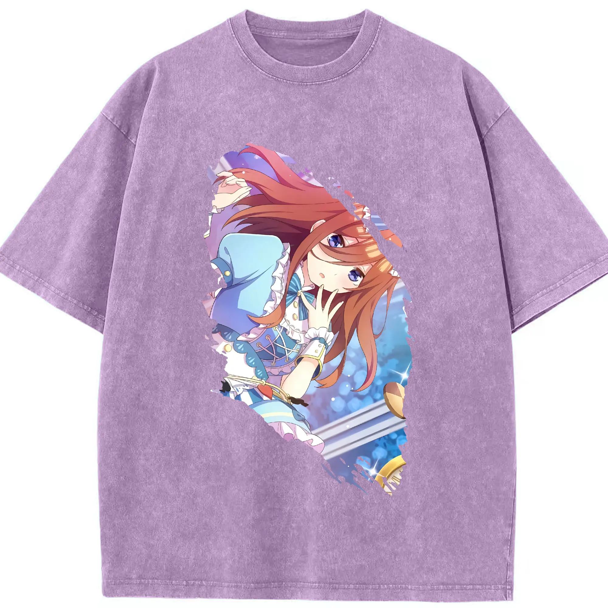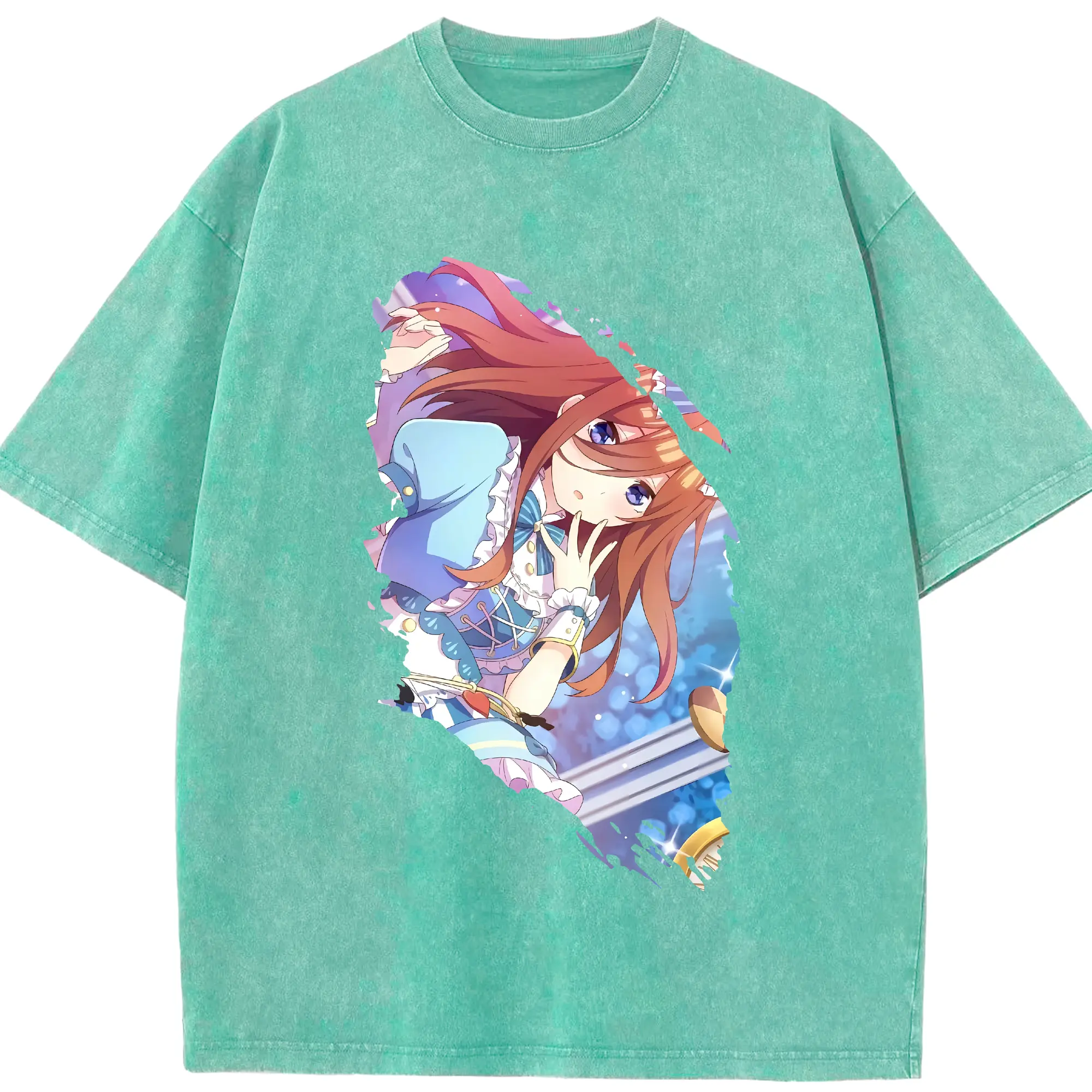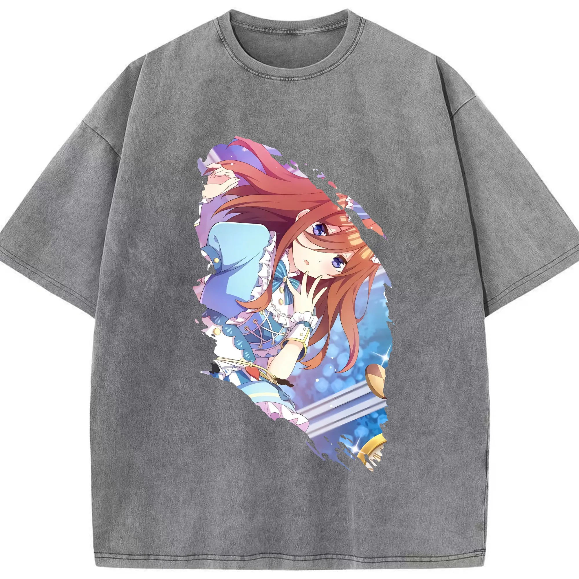 五等分の花嫁 グッズ 中野 三玖 - 綿100% ヴィンテージ風 半袖Tシャツ ・ 背面プリント ・ 柔らか肌触り ・ 通気性 快適 ・ スポーツ カジュアル 外出用
