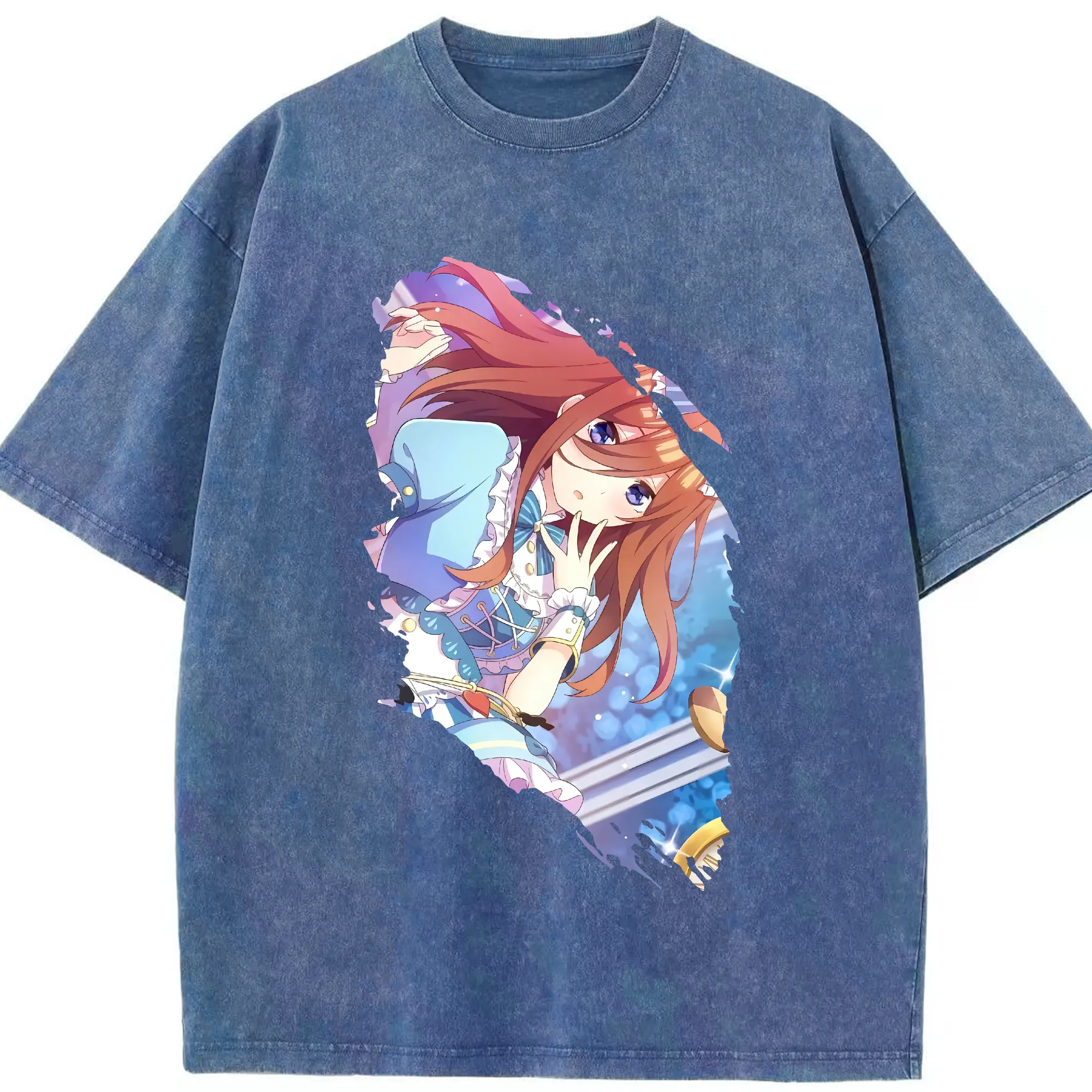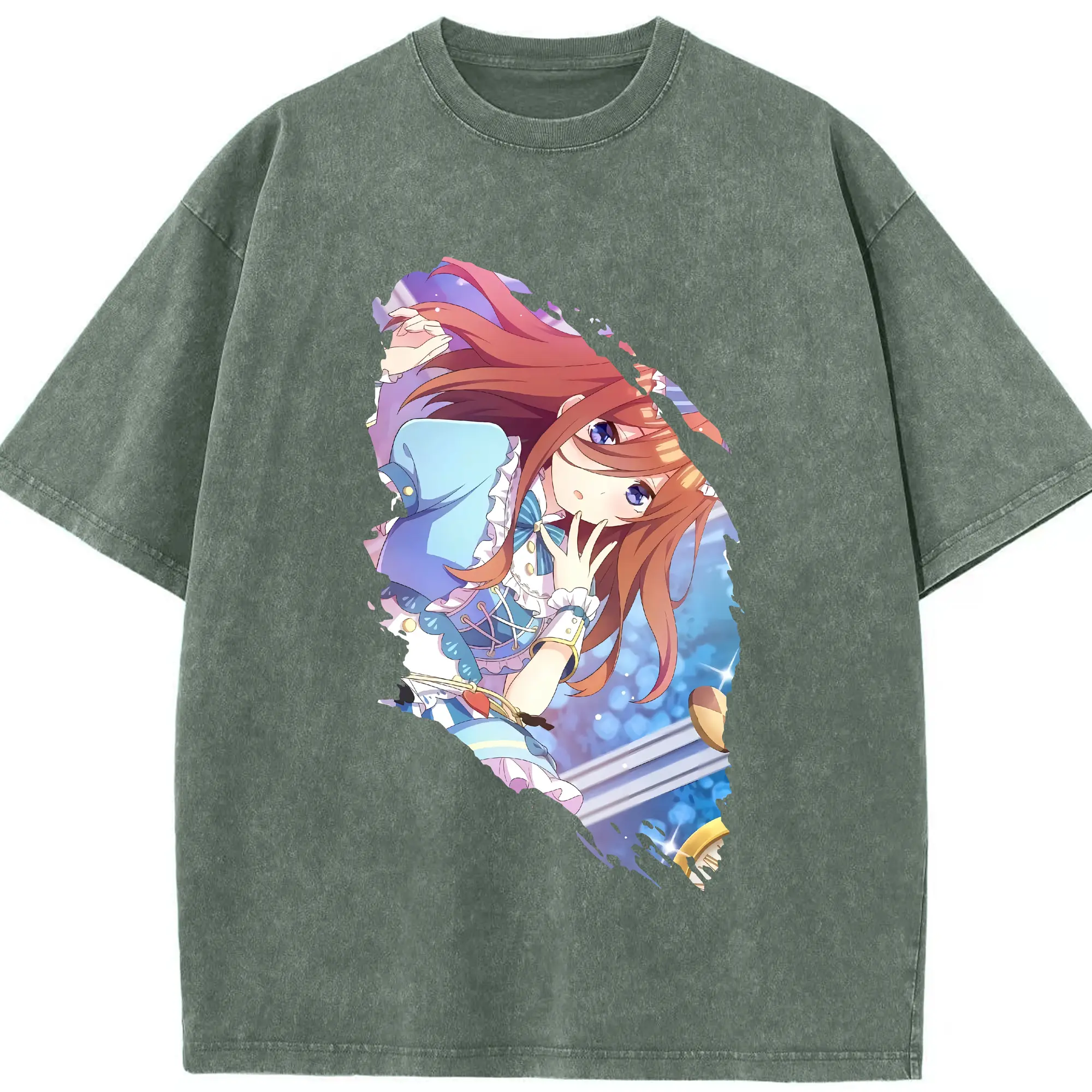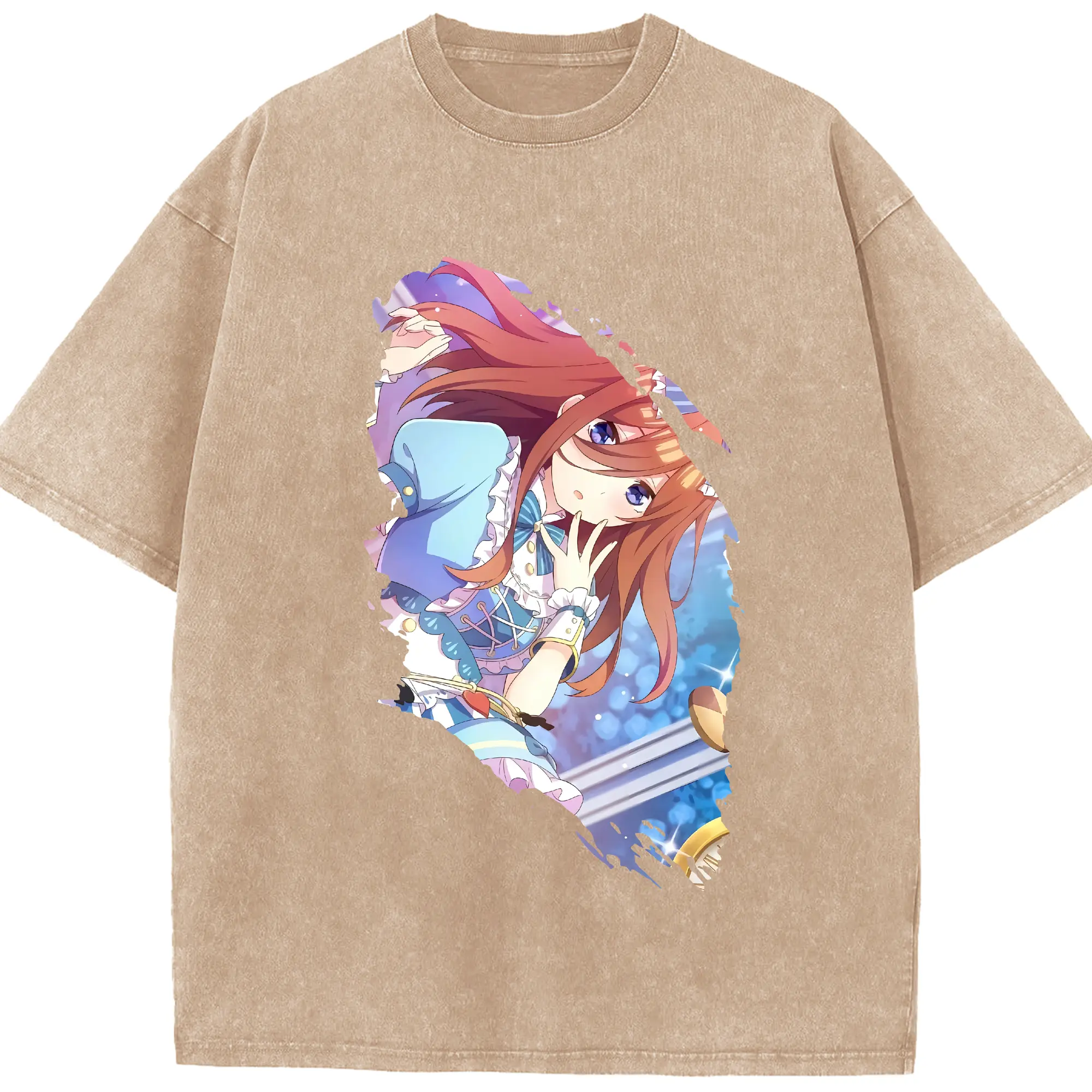 五等分の花嫁 グッズ 中野 三玖 - 綿100% ヴィンテージ風 半袖Tシャツ ・ 背面プリント ・ 柔らか肌触り ・ 通気性 快適 ・ スポーツ カジュアル 外出用