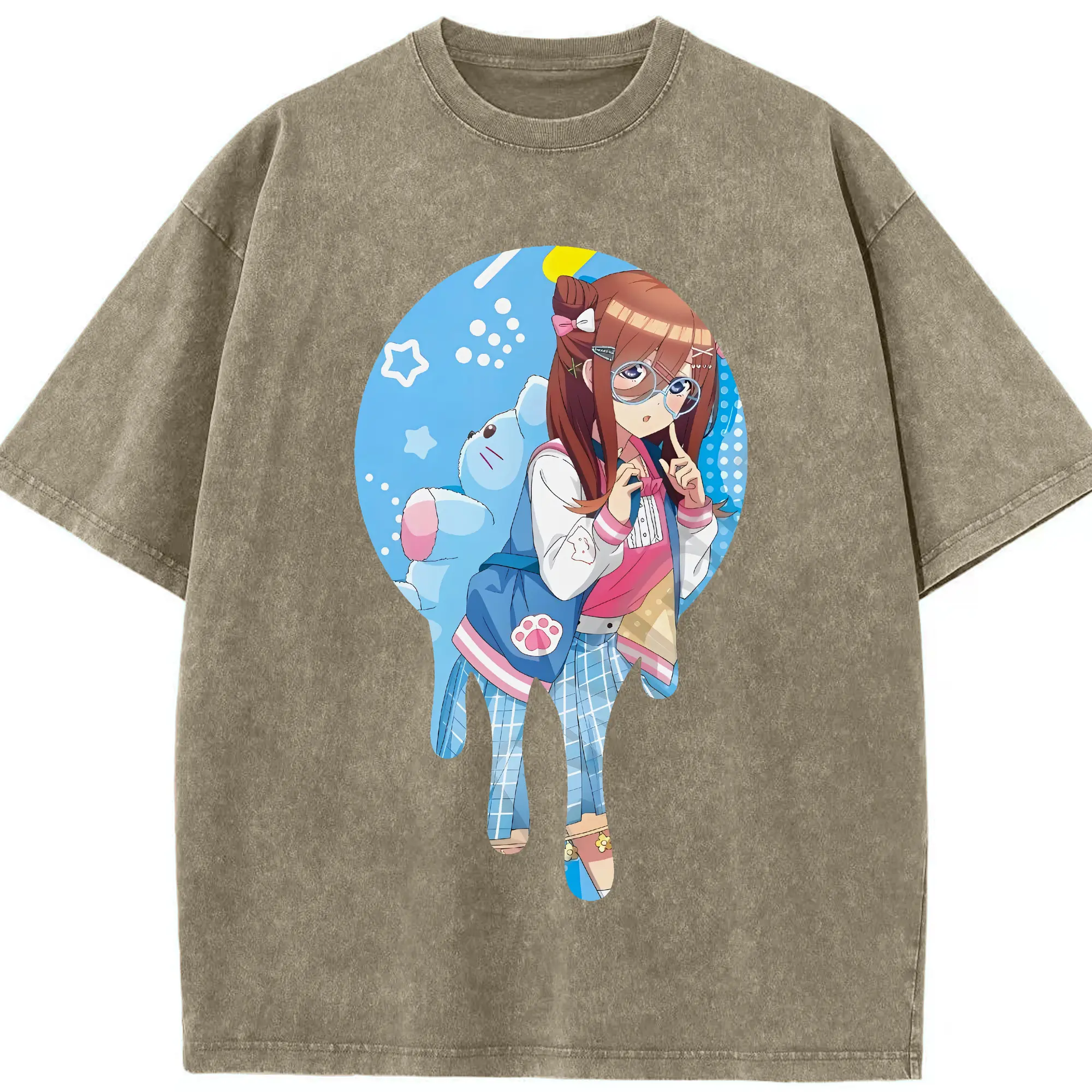 五等分の花嫁 グッズ 中野 三玖 - 綿100% ヴィンテージ風 半袖Tシャツ ・ 背面プリント ・ 柔らか肌触り ・ 通気性 快適 ・ スポーツ カジュアル 外出用