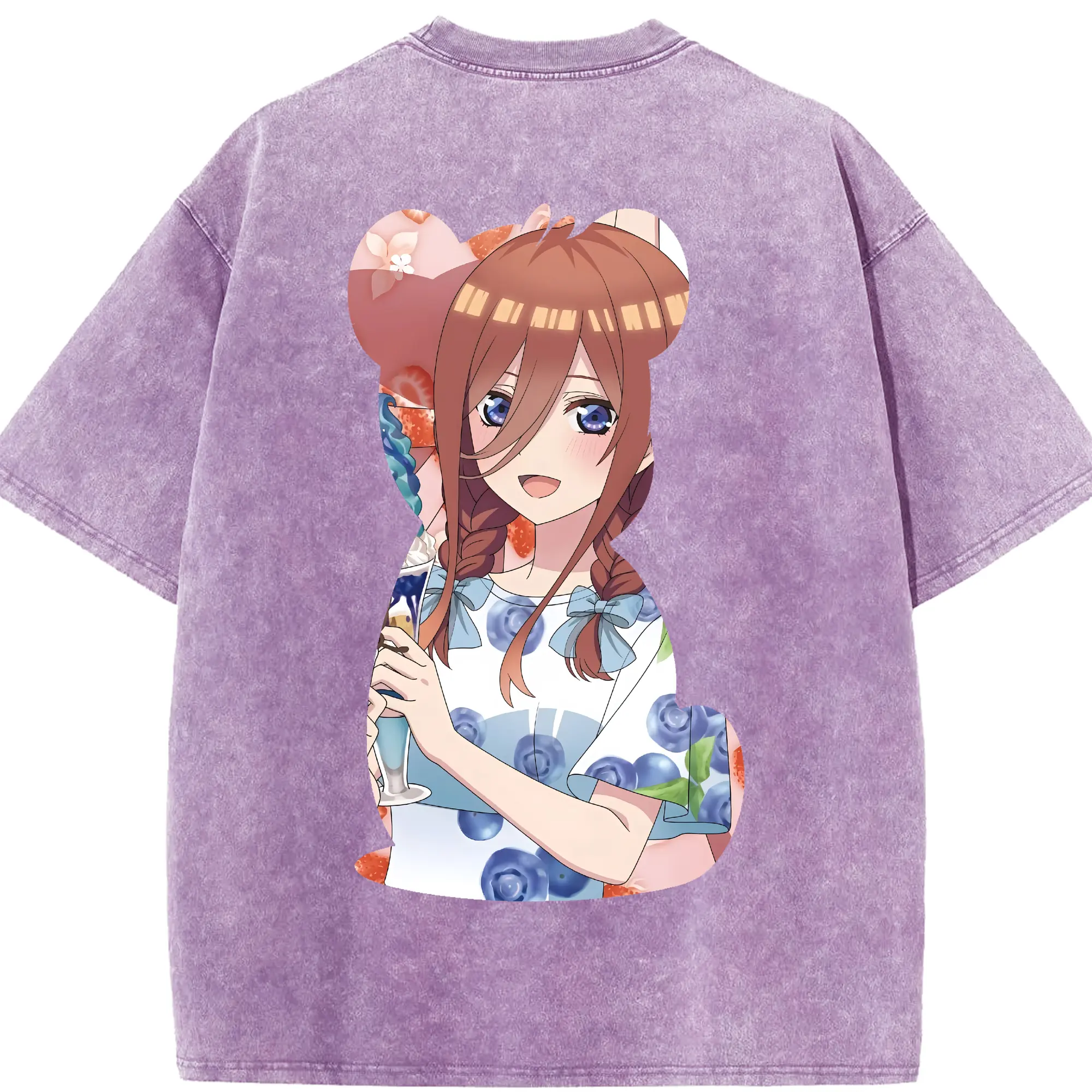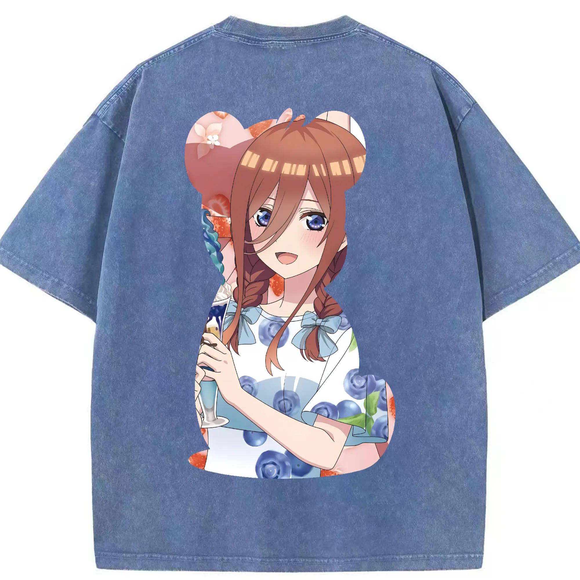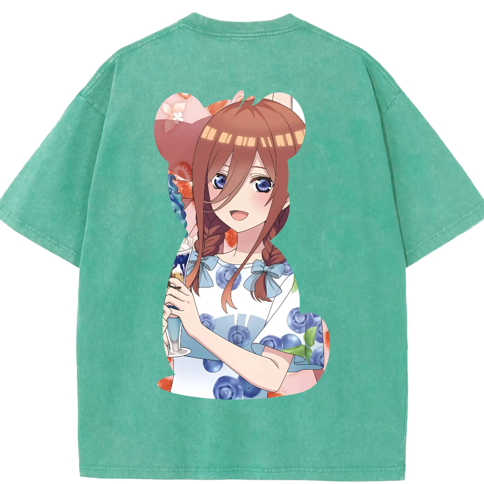 五等分の花嫁 グッズ 中野 三玖 - 綿100% ヴィンテージ風 半袖Tシャツ ・ フロントプリント ・ 柔らか肌触り ・ 通気性 快適 ・ スポーツ カジュアル 外出用