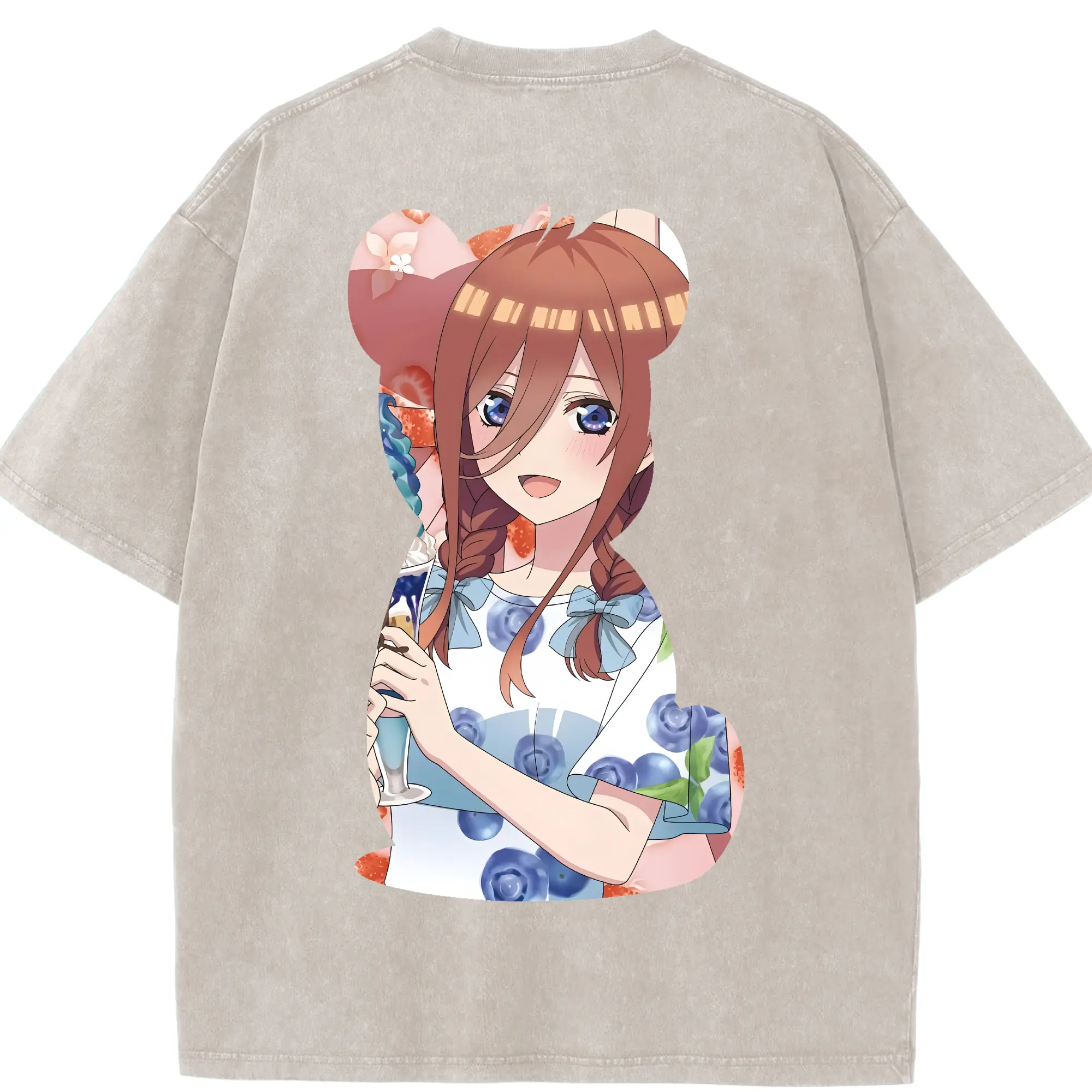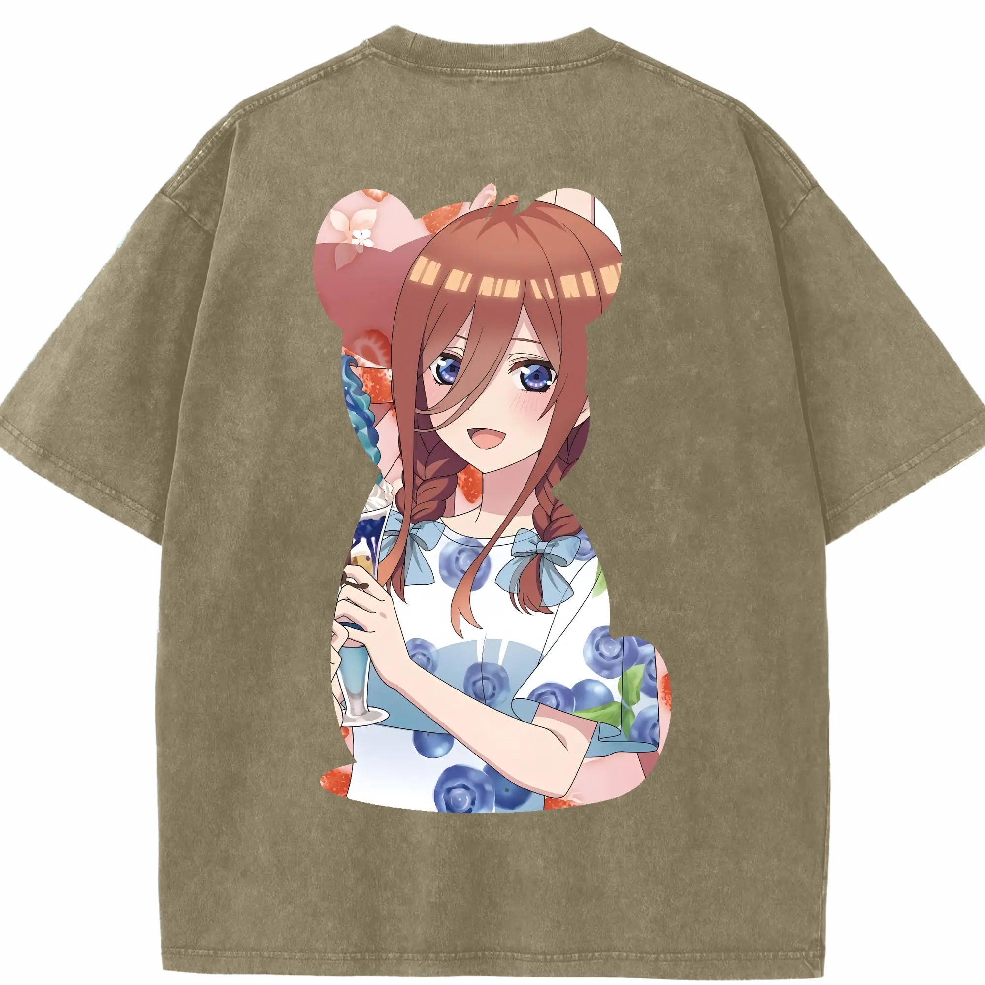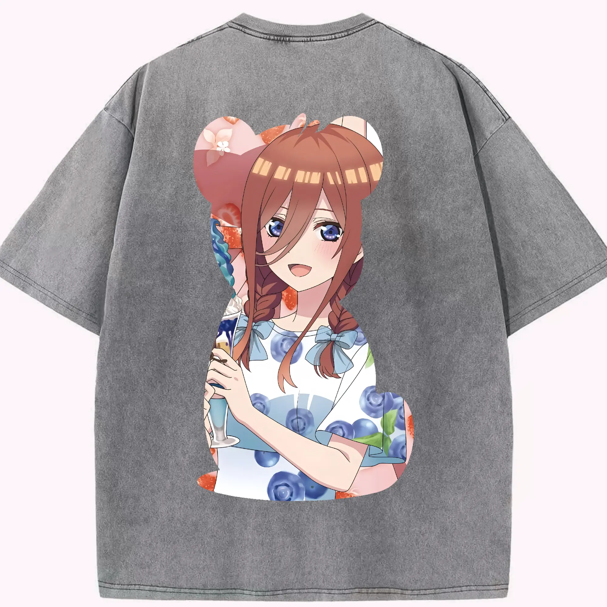 五等分の花嫁 グッズ 中野 三玖 - 綿100% ヴィンテージ風 半袖Tシャツ ・ フロントプリント ・ 柔らか肌触り ・ 通気性 快適 ・ スポーツ カジュアル 外出用