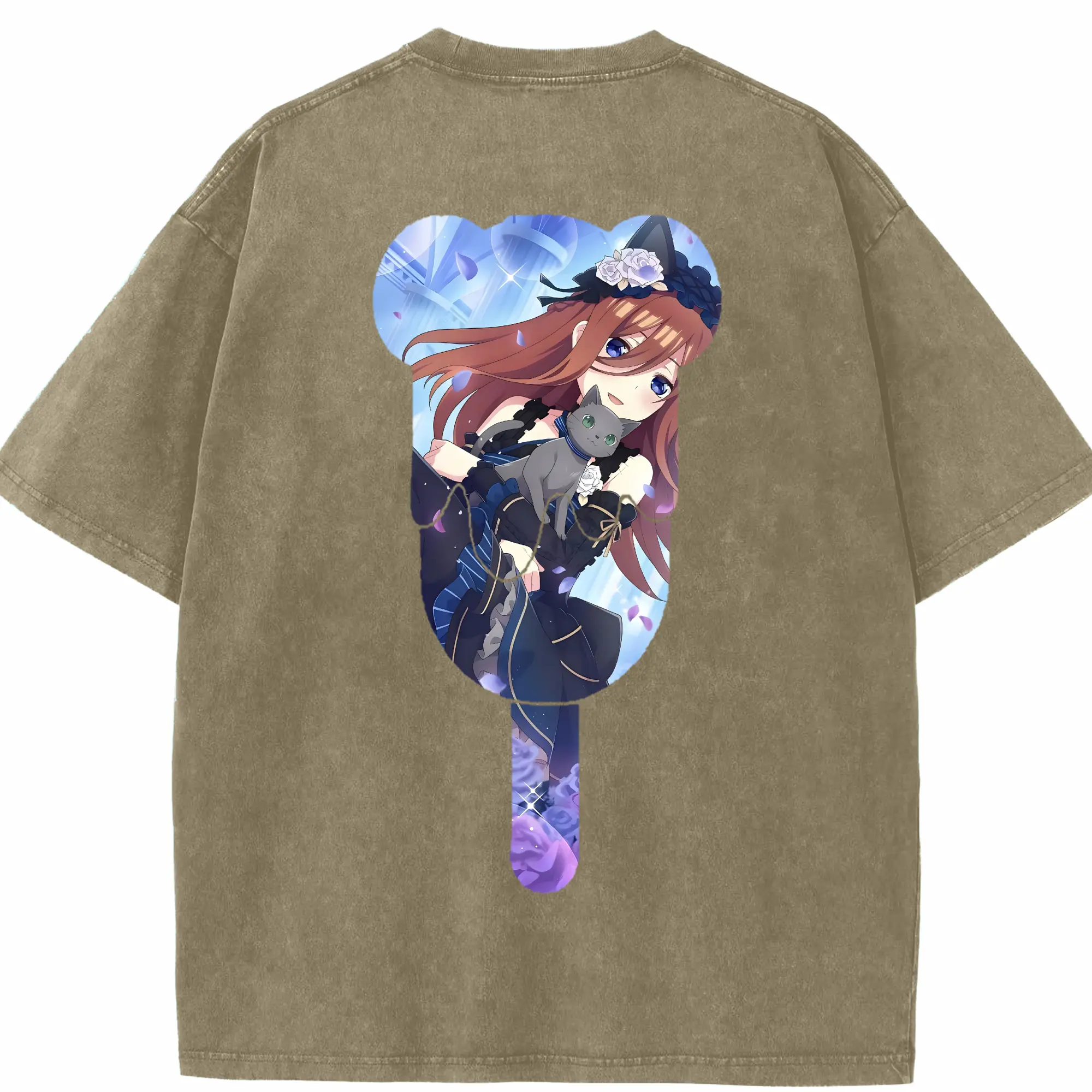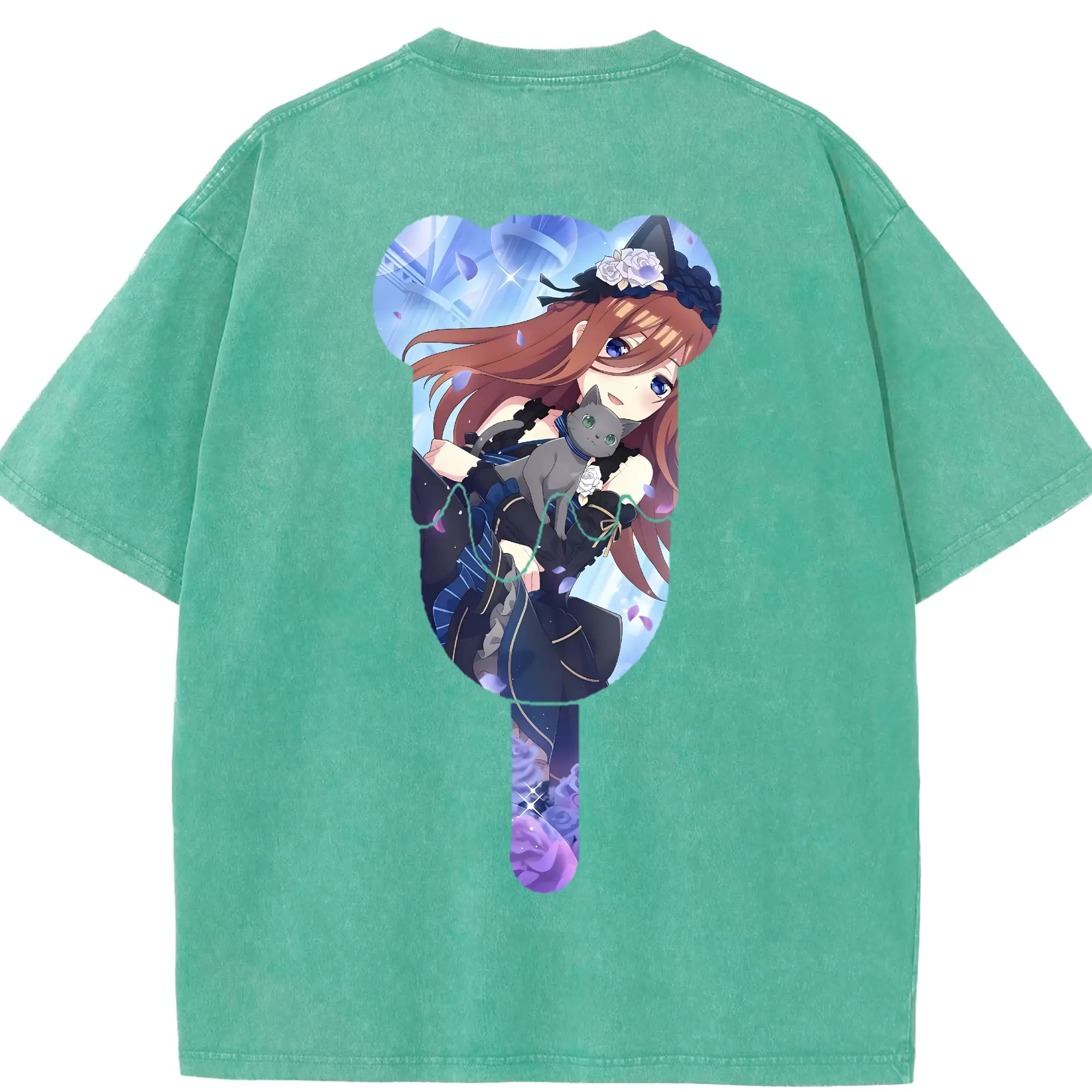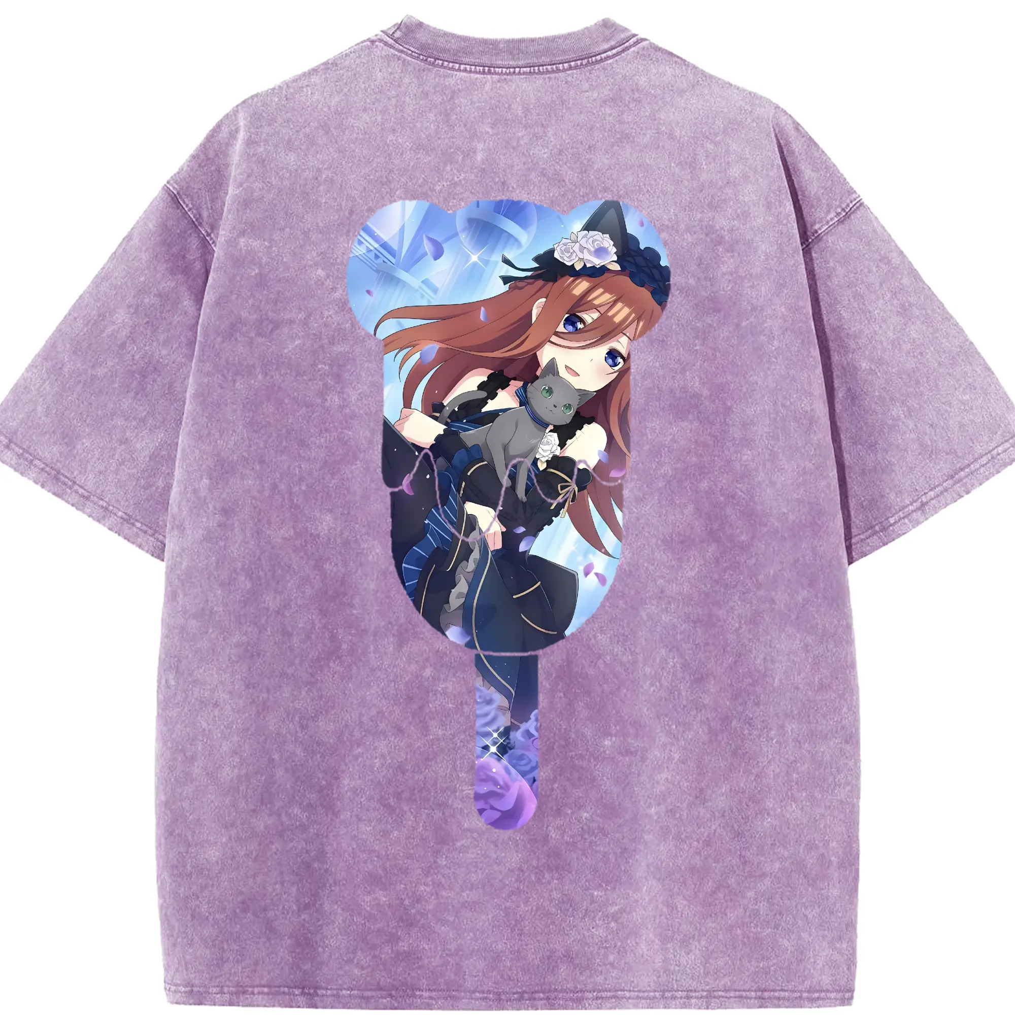 五等分の花嫁 グッズ 中野 三玖 - 綿100% ヴィンテージ風 半袖Tシャツ ・ 背面プリント ・ 柔らか肌触り ・ 通気性 快適 ・ スポーツ カジュアル 外出用