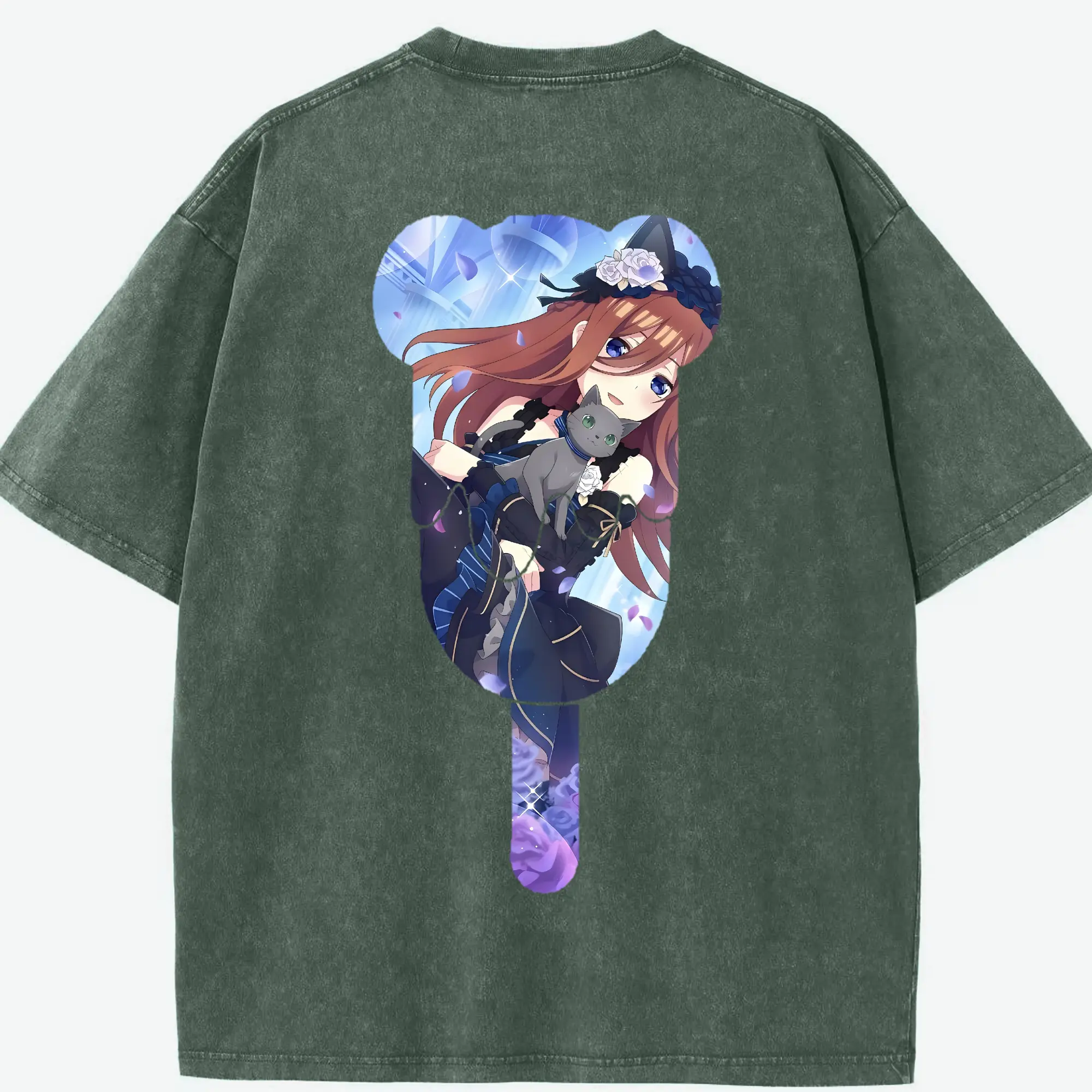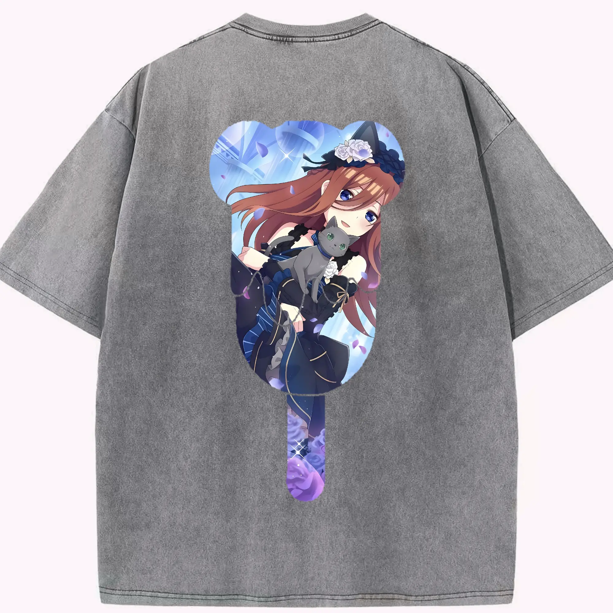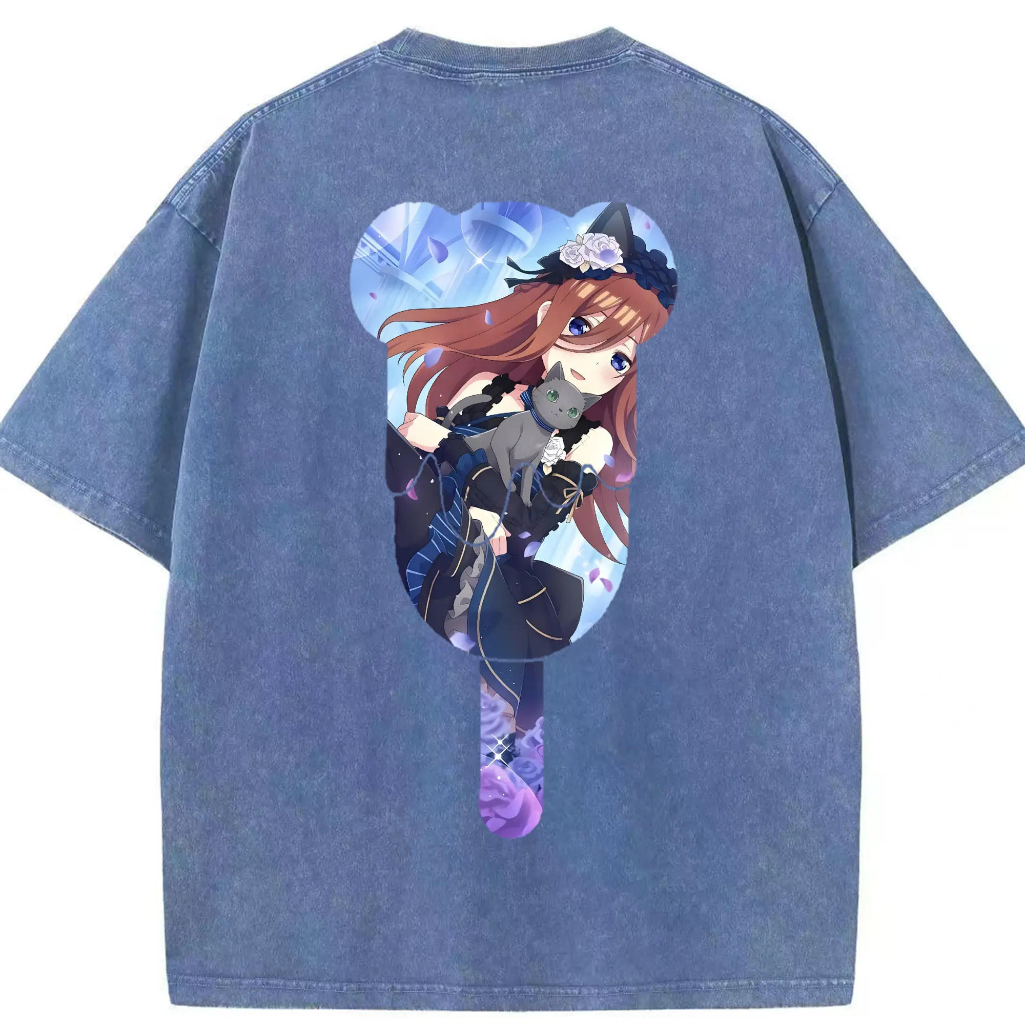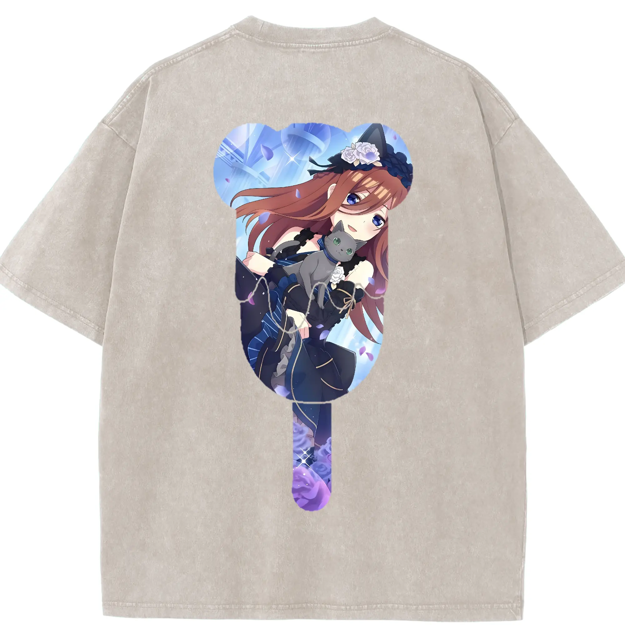 五等分の花嫁 グッズ 中野 三玖 - 綿100% ヴィンテージ風 半袖Tシャツ ・ 背面プリント ・ 柔らか肌触り ・ 通気性 快適 ・ スポーツ カジュアル 外出用