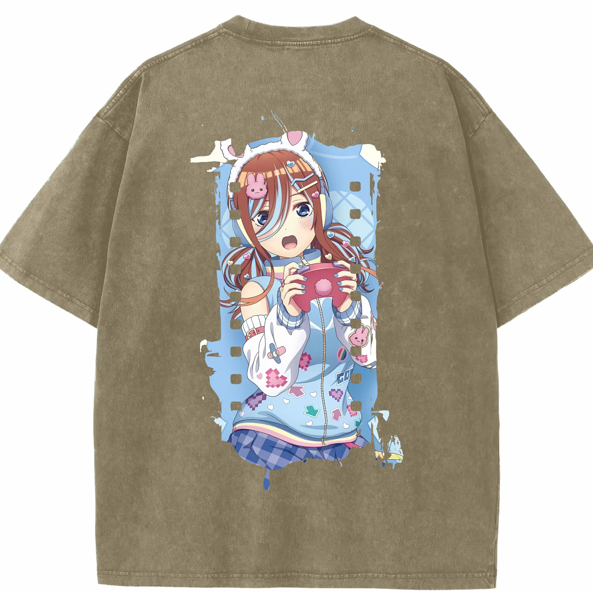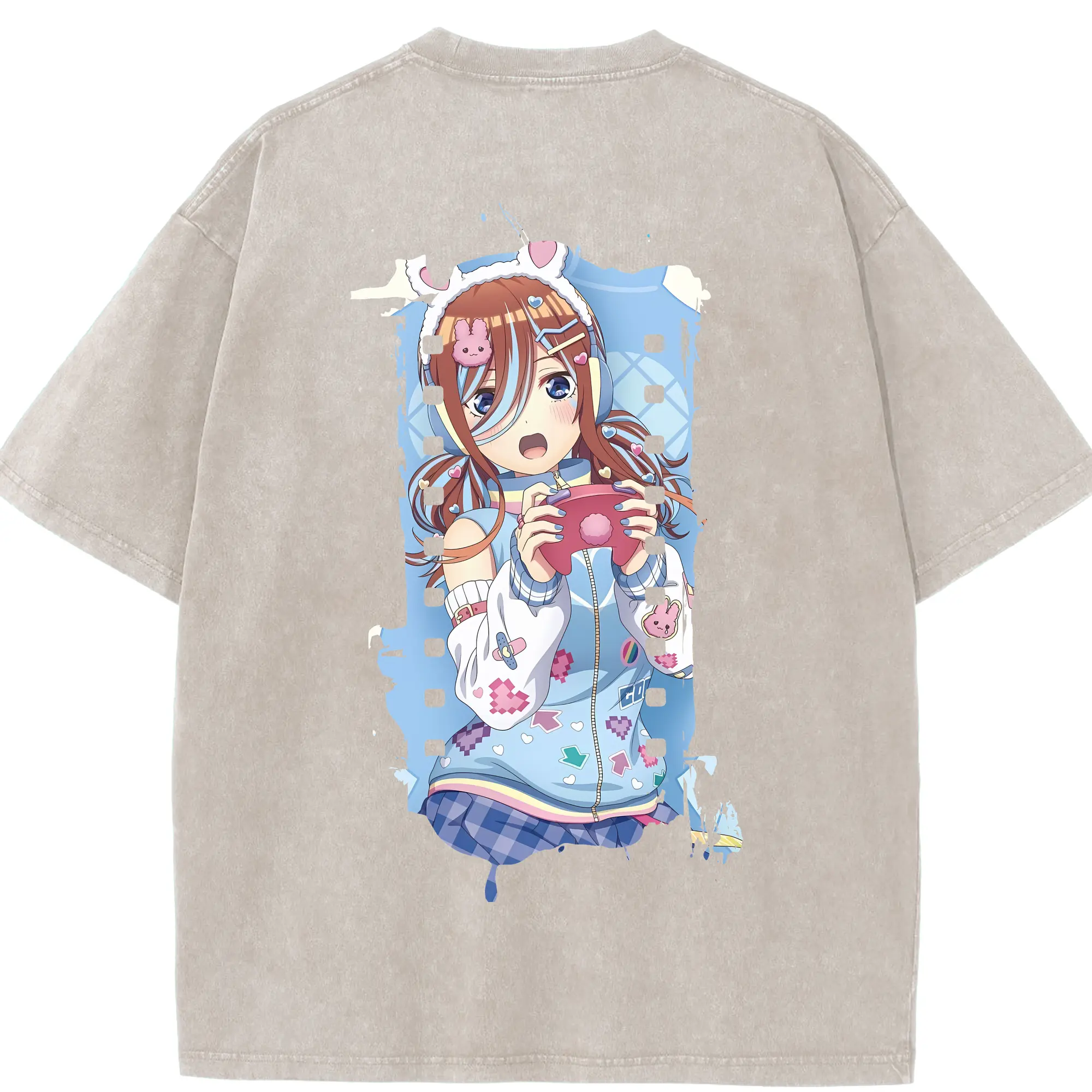 五等分の花嫁 グッズ 中野 三玖 - 綿100% ヴィンテージ風 半袖Tシャツ ・ フロントプリント ・ 柔らか肌触り ・ 通気性 快適 ・ スポーツ カジュアル 外出用