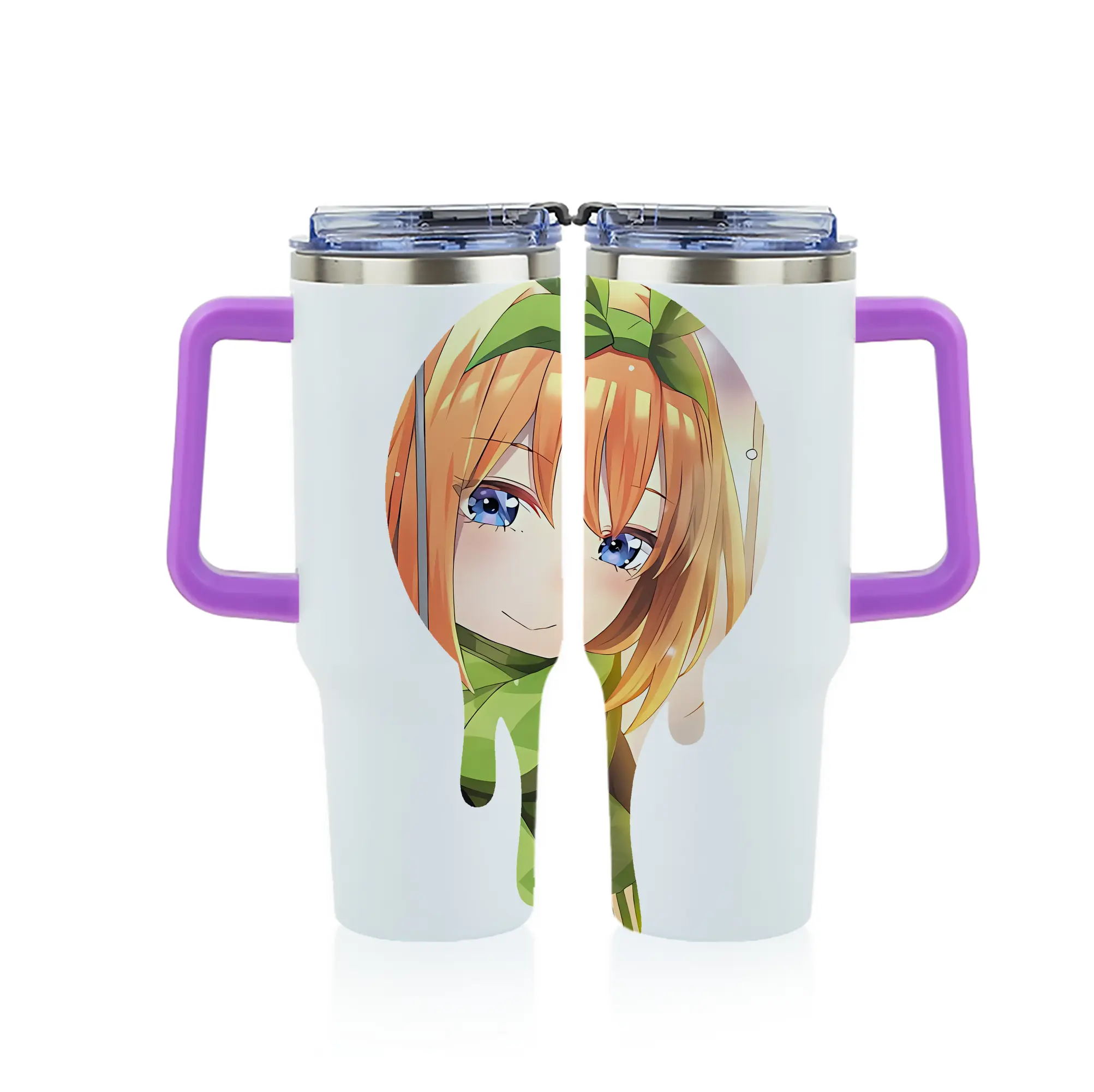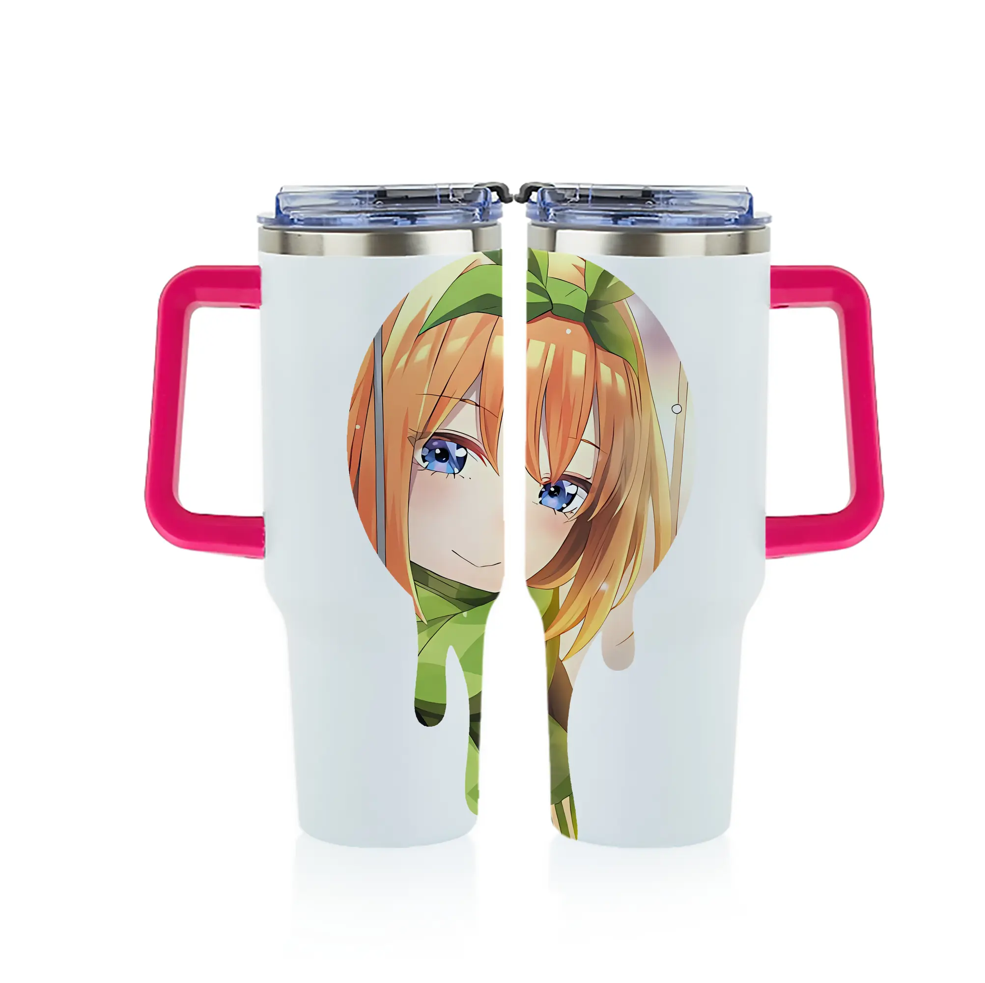 五等分の花嫁 グッズ 中野 四葉 - 1200mL フルプリント車用タンブラー ・ 304ステンレス 内側 ・ 201ステンレス 外側 ・ 保温 保冷 ・ 通勤 ドライブ アウトドア用