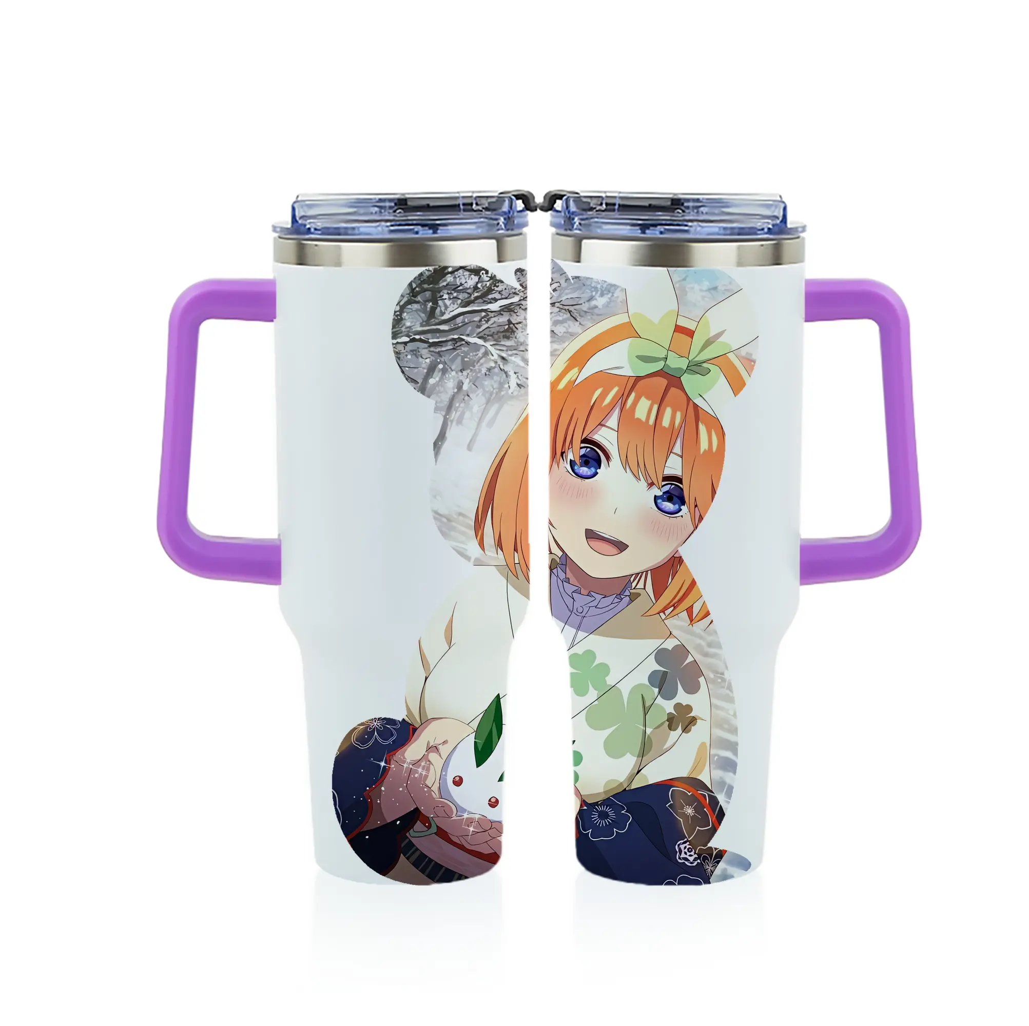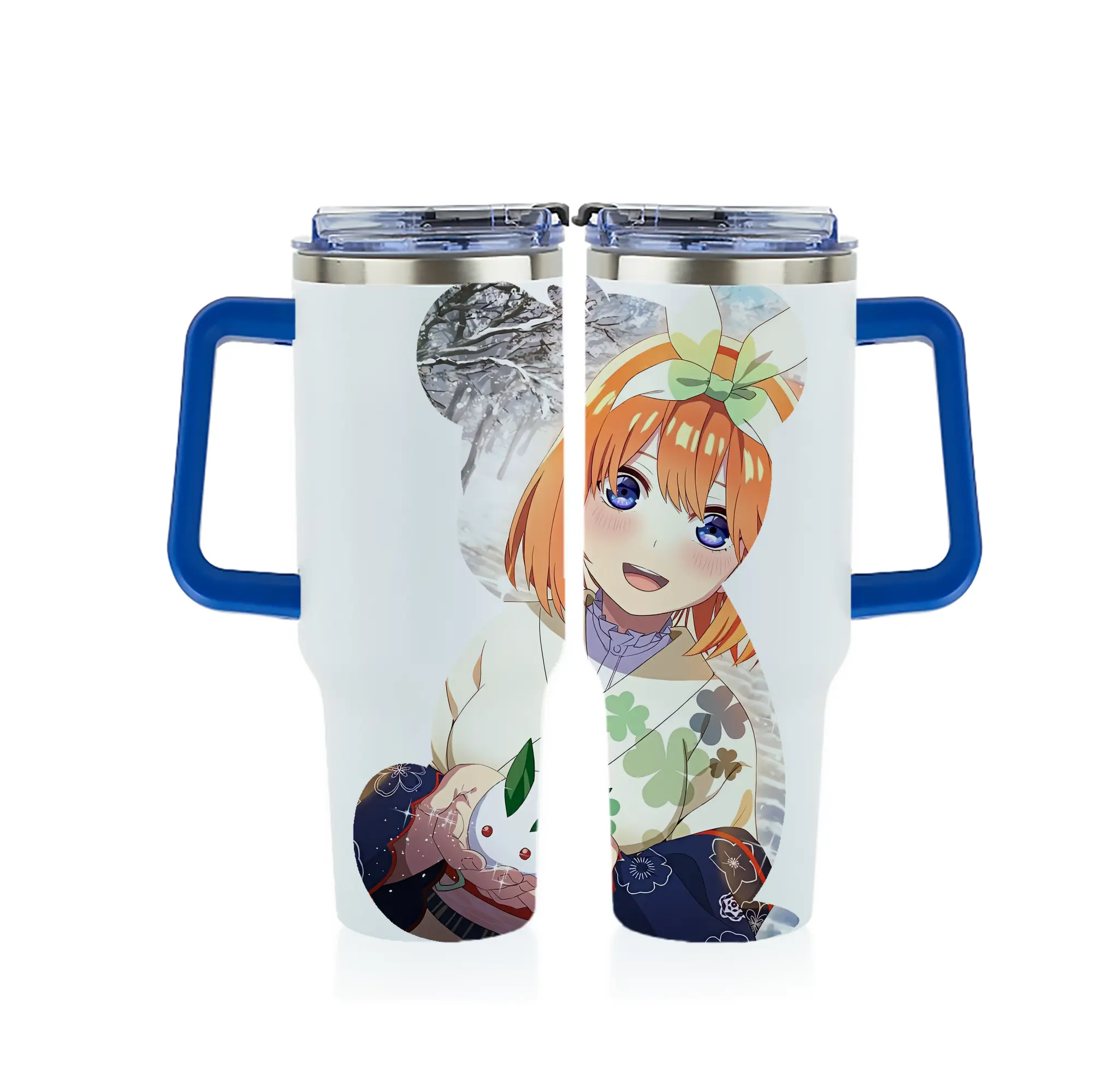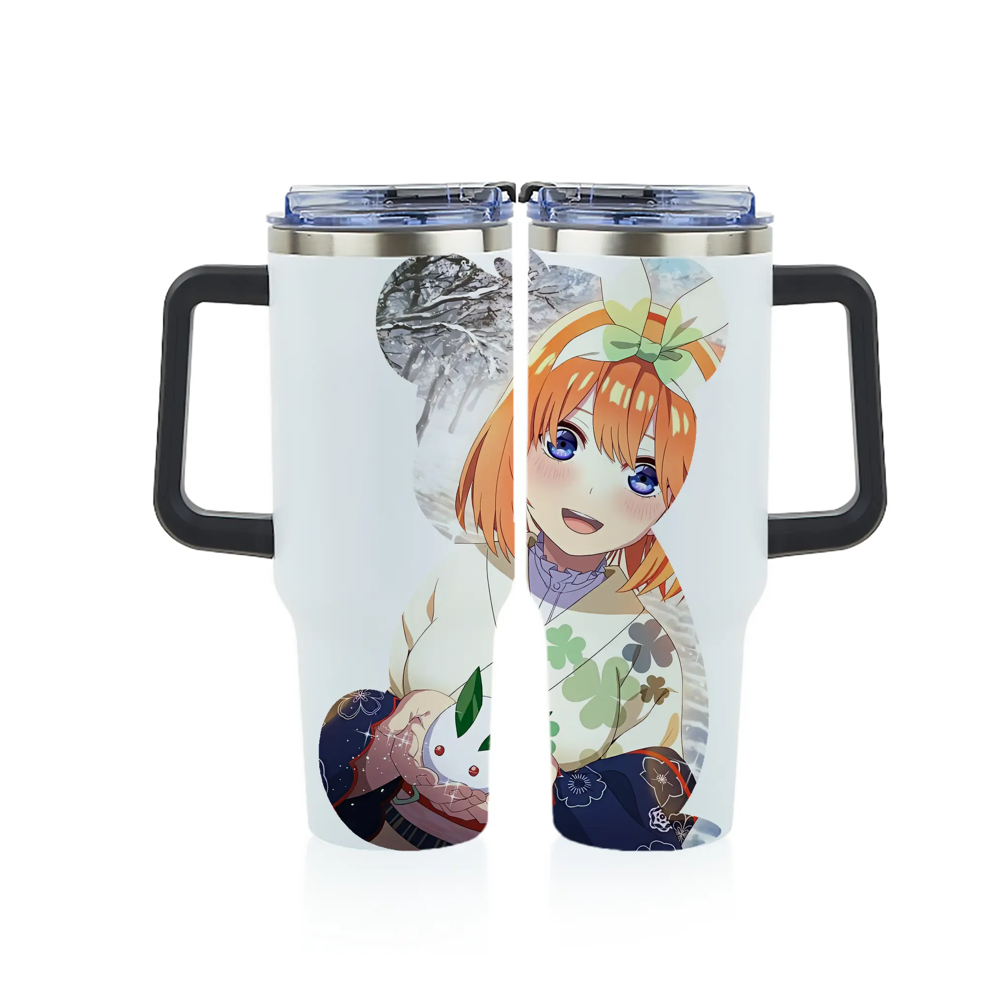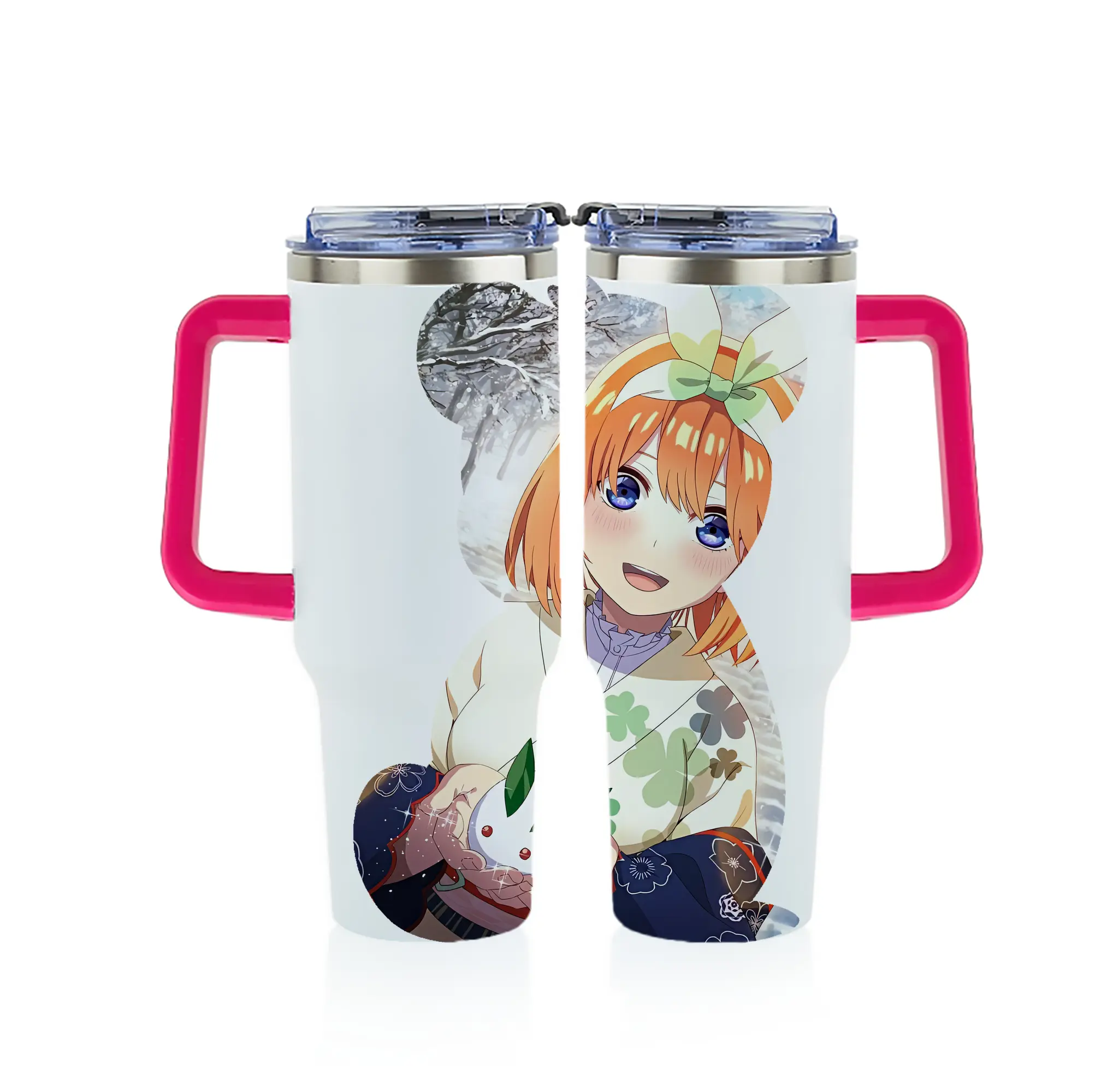 五等分の花嫁 グッズ 中野 四葉 - 1200mL フルプリント車用タンブラー ・ 304ステンレス 内側 ・ 201ステンレス 外側 ・ 保温 保冷 ・ 通勤 ドライブ アウトドア用