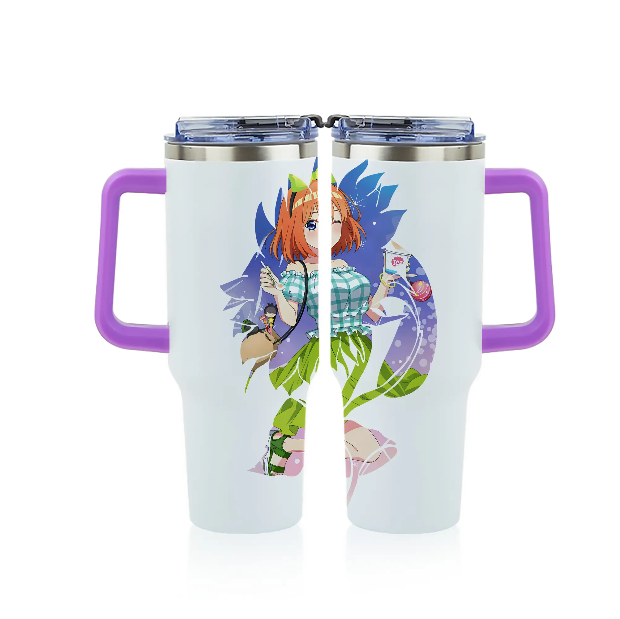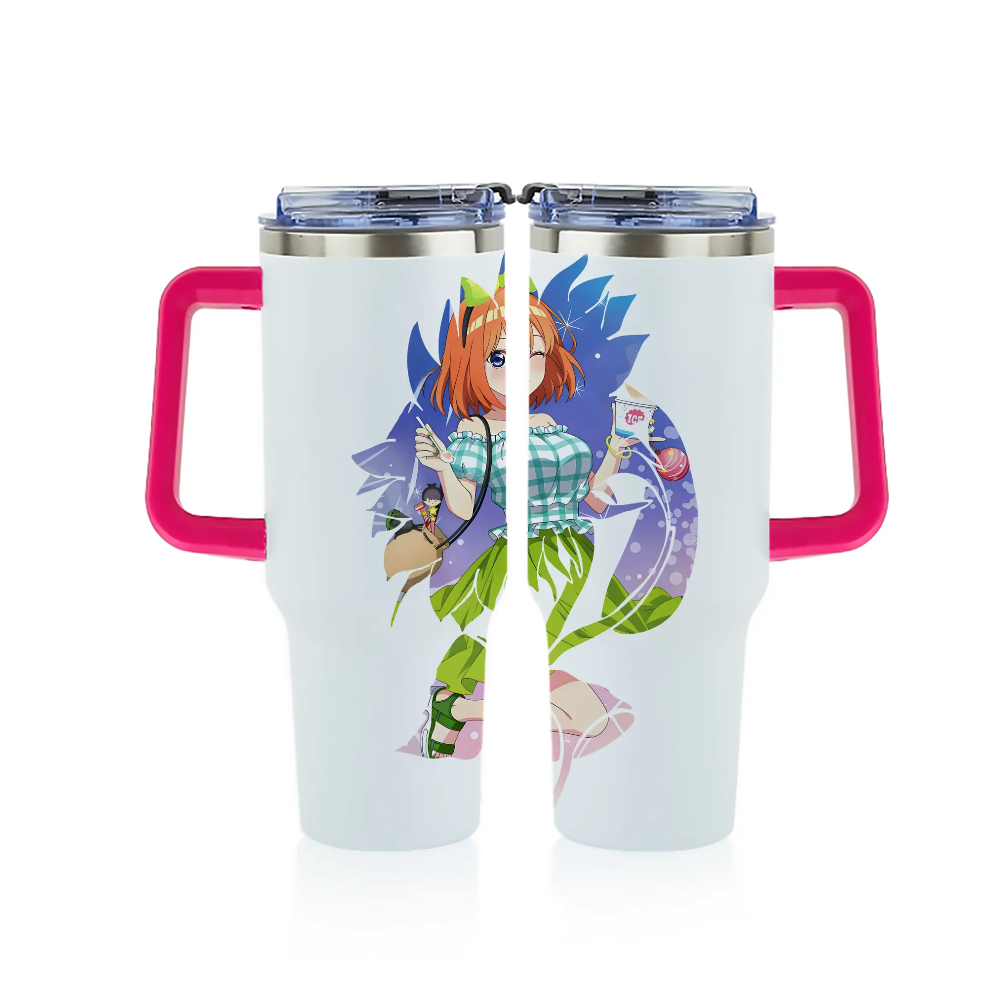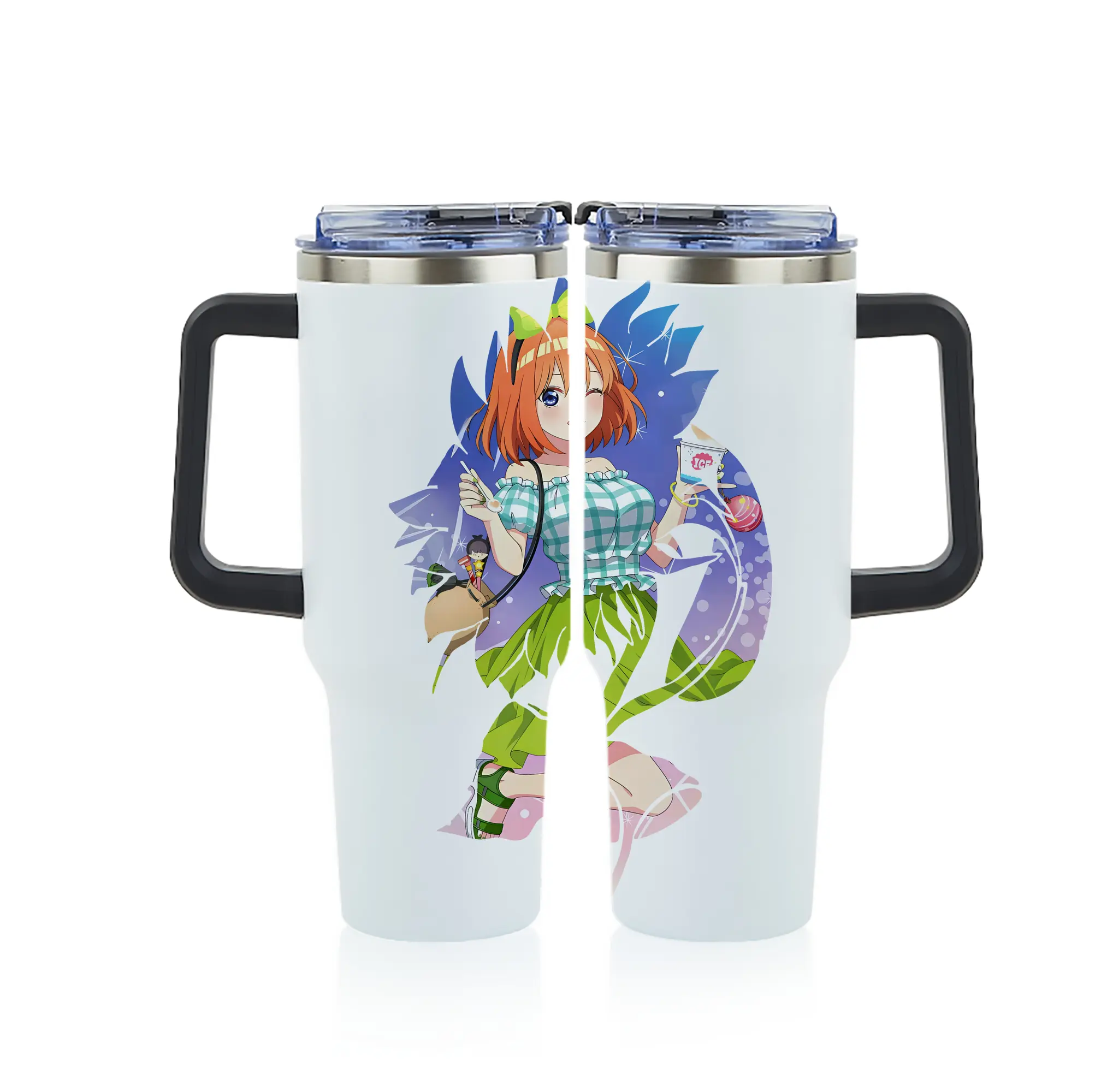 五等分の花嫁 グッズ 中野 四葉 - 1200mL フルプリント車用タンブラー ・ 304ステンレス 内側 ・ 201ステンレス 外側 ・ 保温 保冷 ・ 通勤 ドライブ アウトドア用