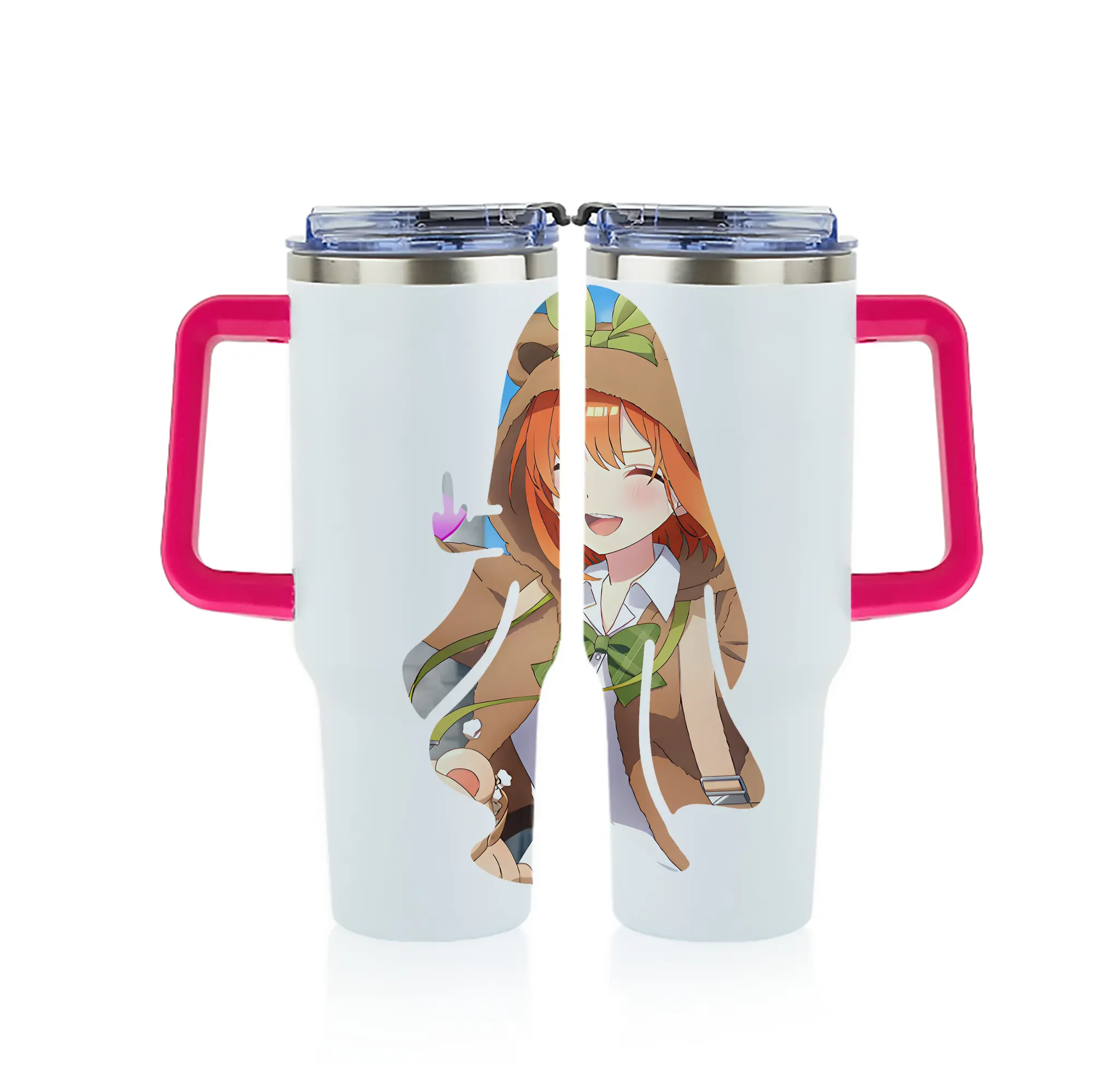 五等分の花嫁 グッズ 中野 四葉 - 1200mL フルプリント車用タンブラー ・ 304ステンレス 内側 ・ 201ステンレス 外側 ・ 保温 保冷 ・ 通勤 ドライブ アウトドア用