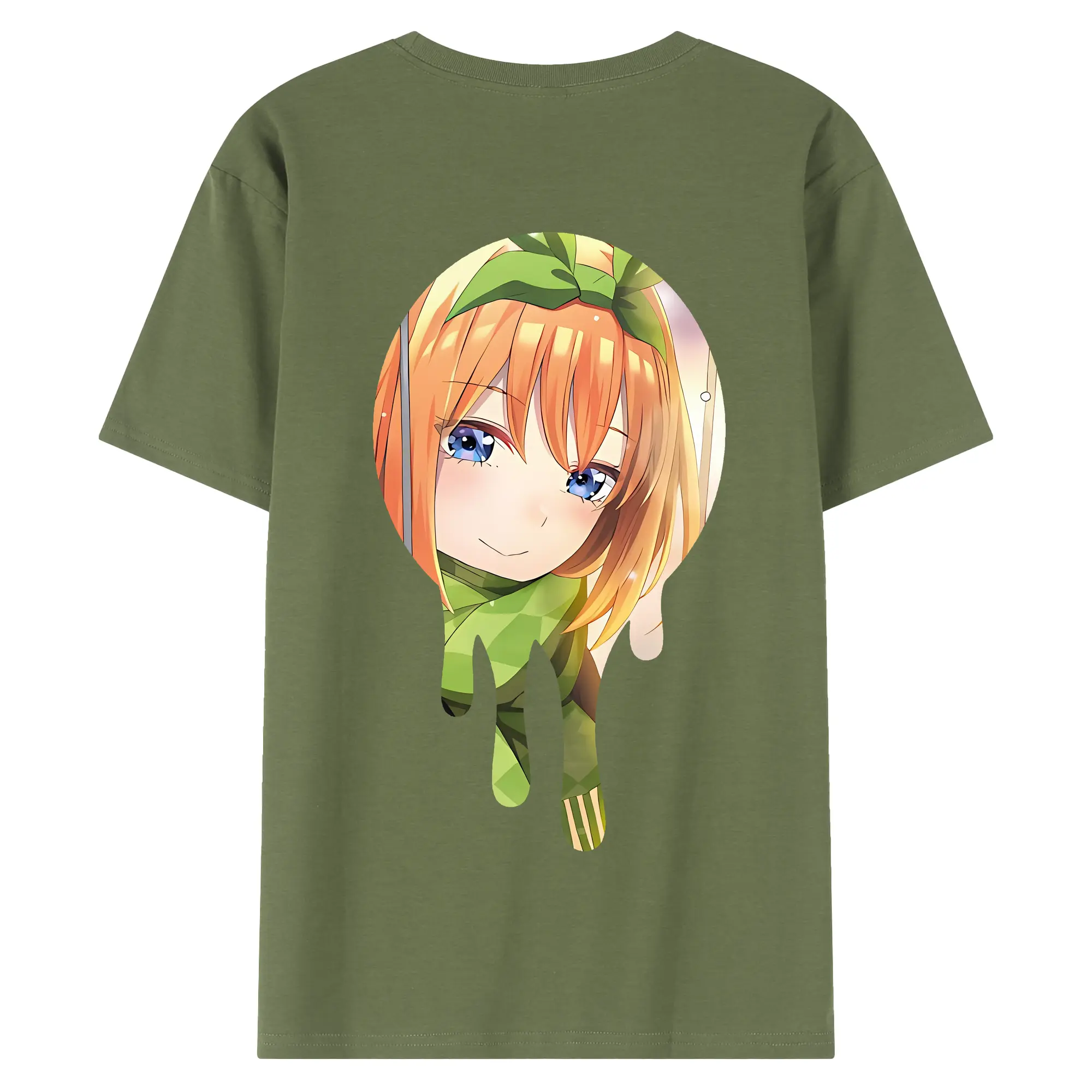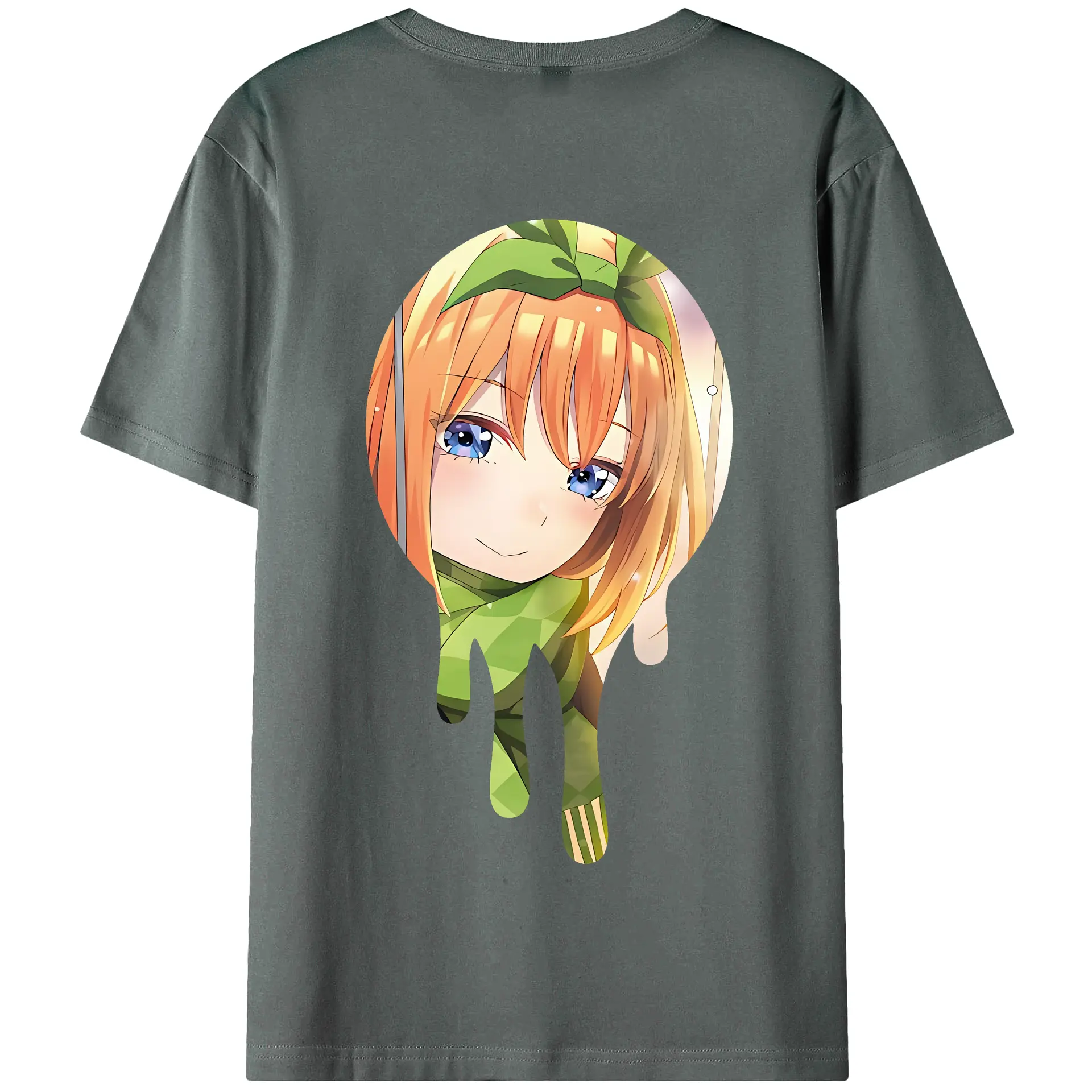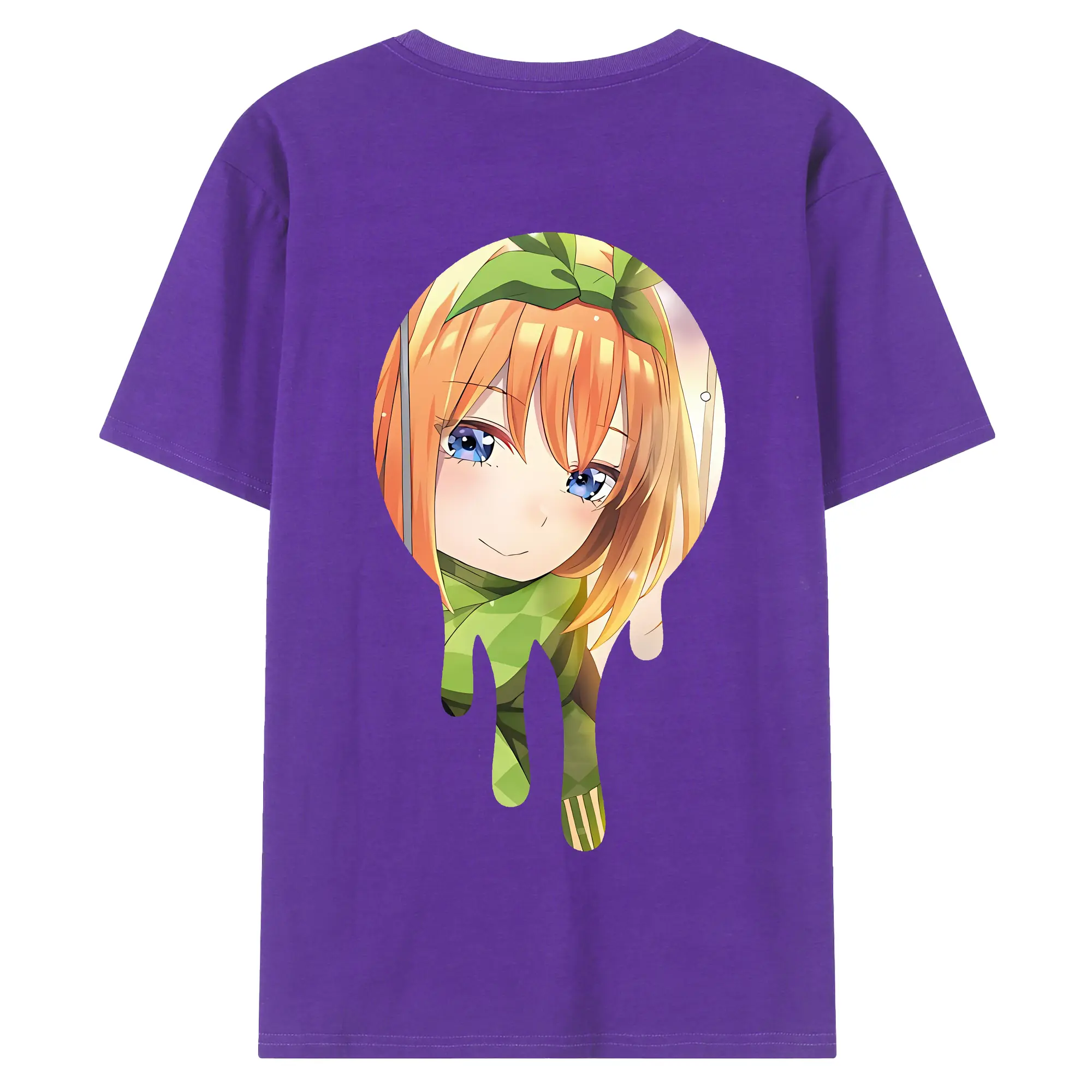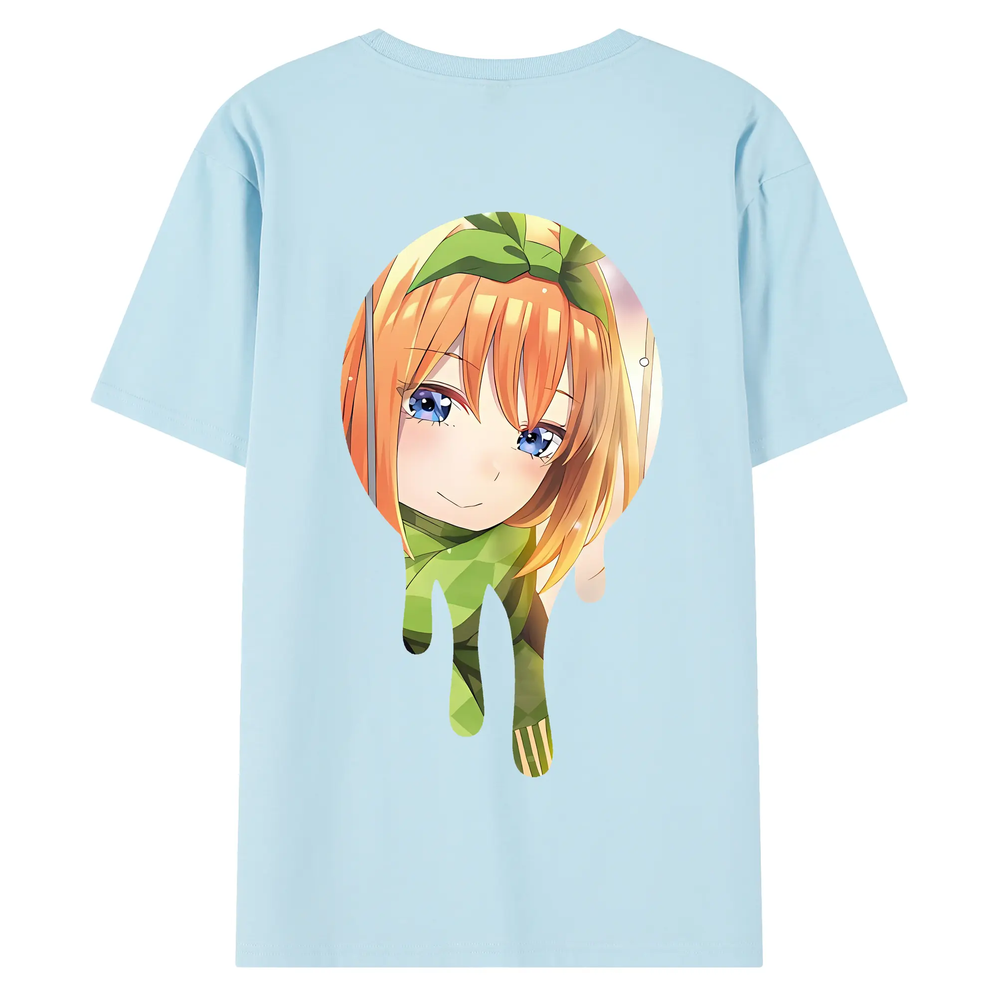 五等分の花嫁 グッズ 中野 四葉 - 綿100% 半袖Tシャツ ・ フロントプリント ・ 快適 通気性 ・ 日常使い 散歩 スポーツ用