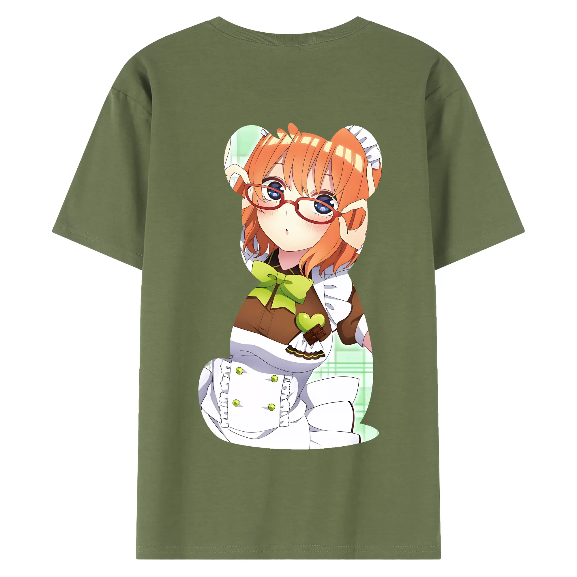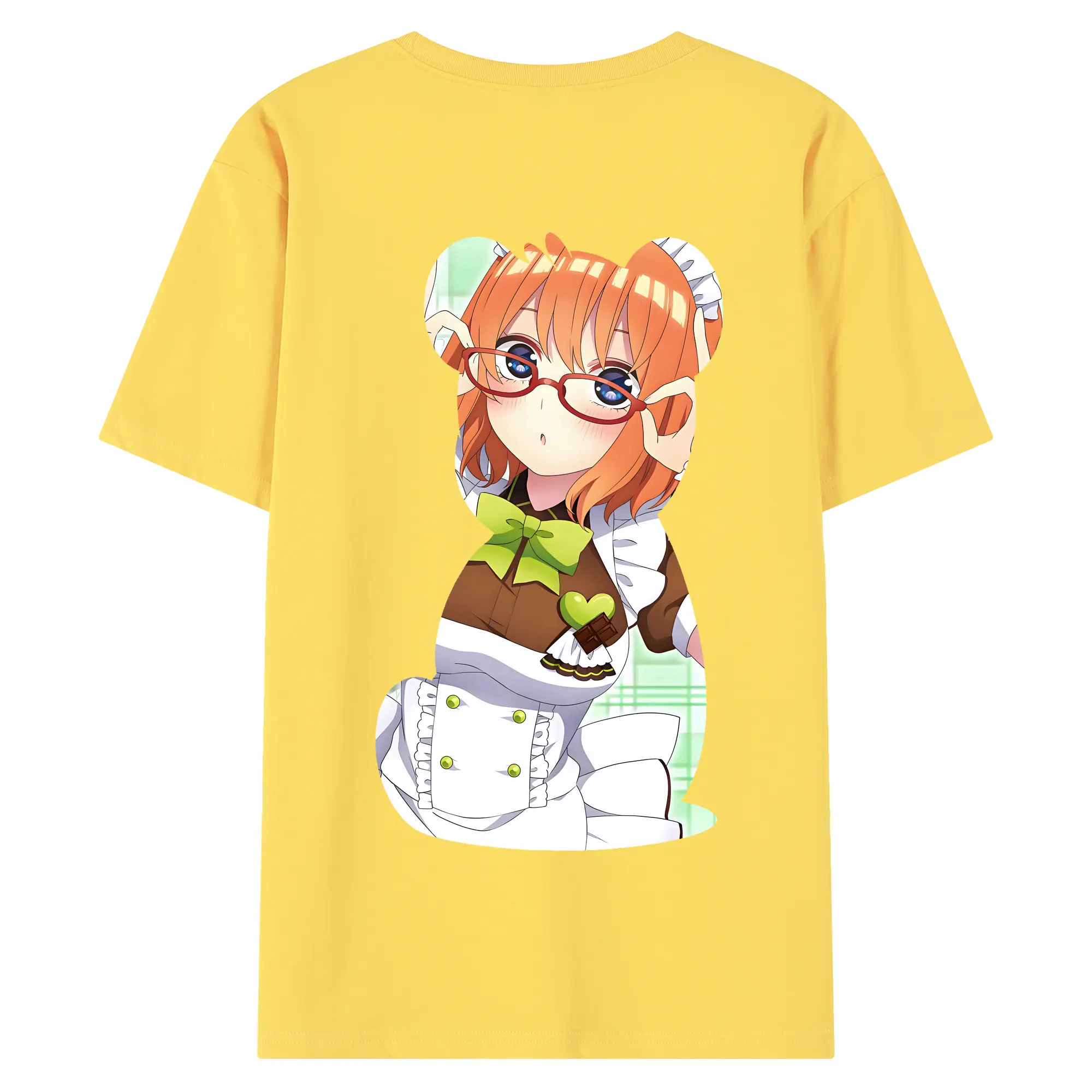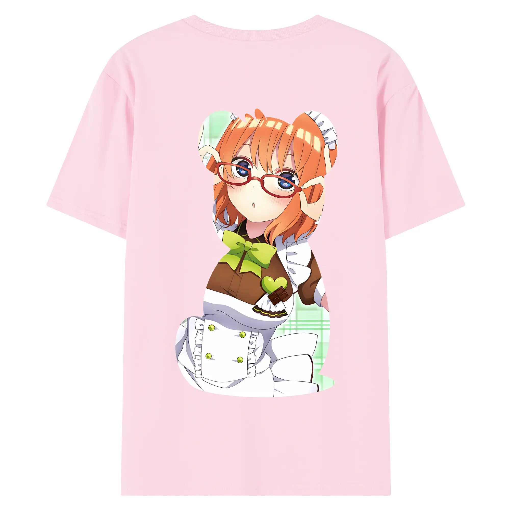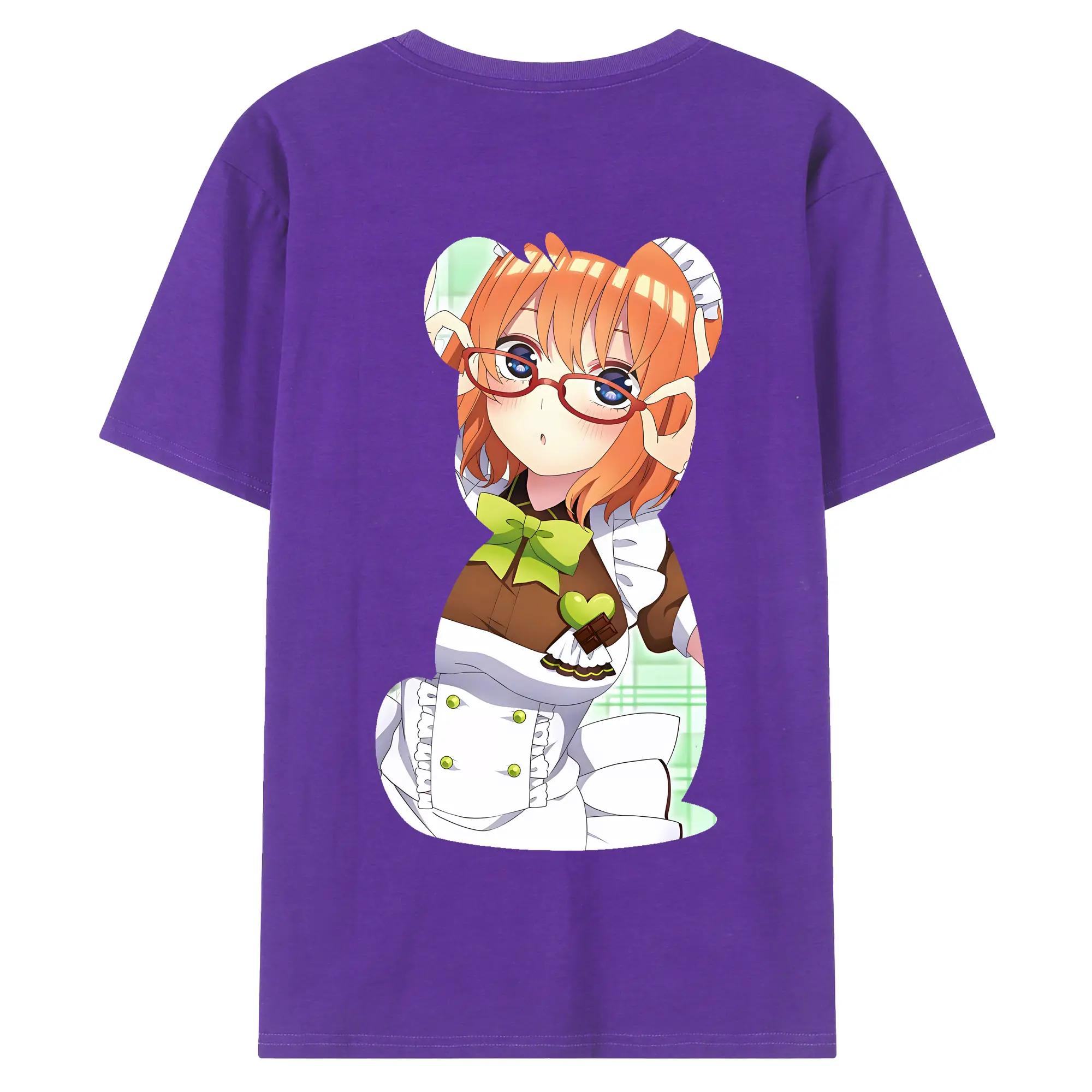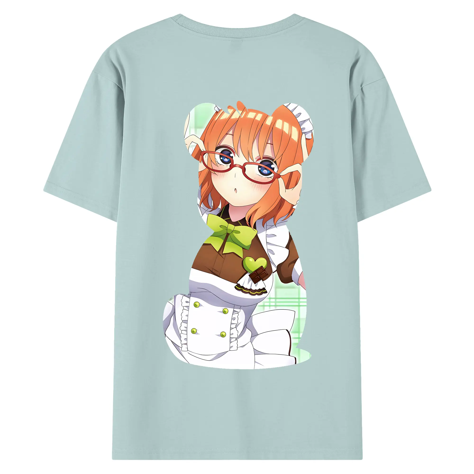 五等分の花嫁 グッズ 中野 四葉 - 綿100% 半袖Tシャツ ・ フロントプリント ・ 快適 通気性 ・ 日常使い 散歩 スポーツ用