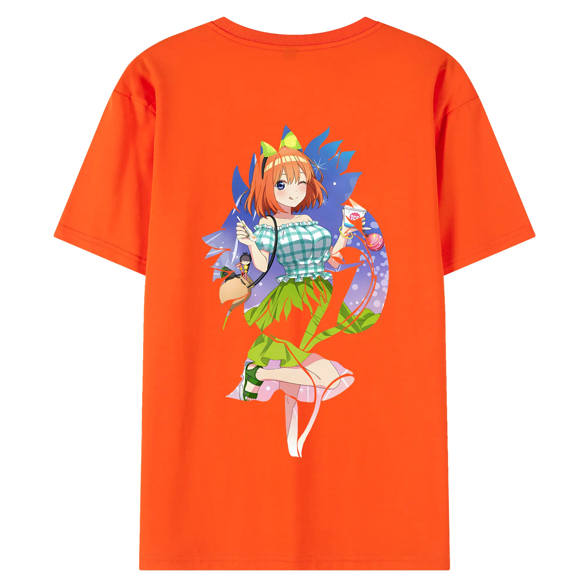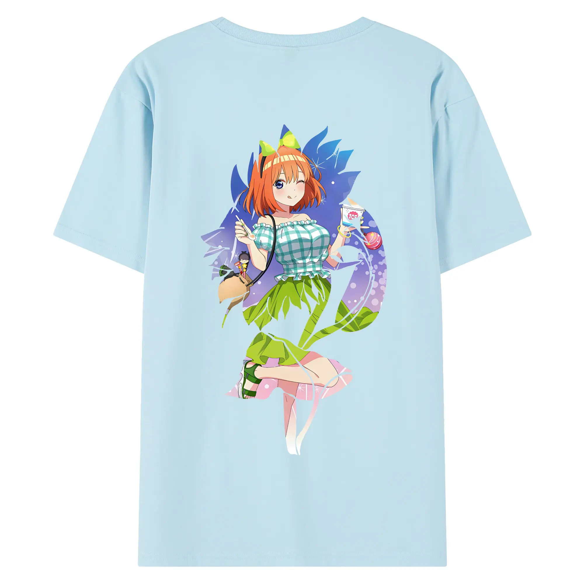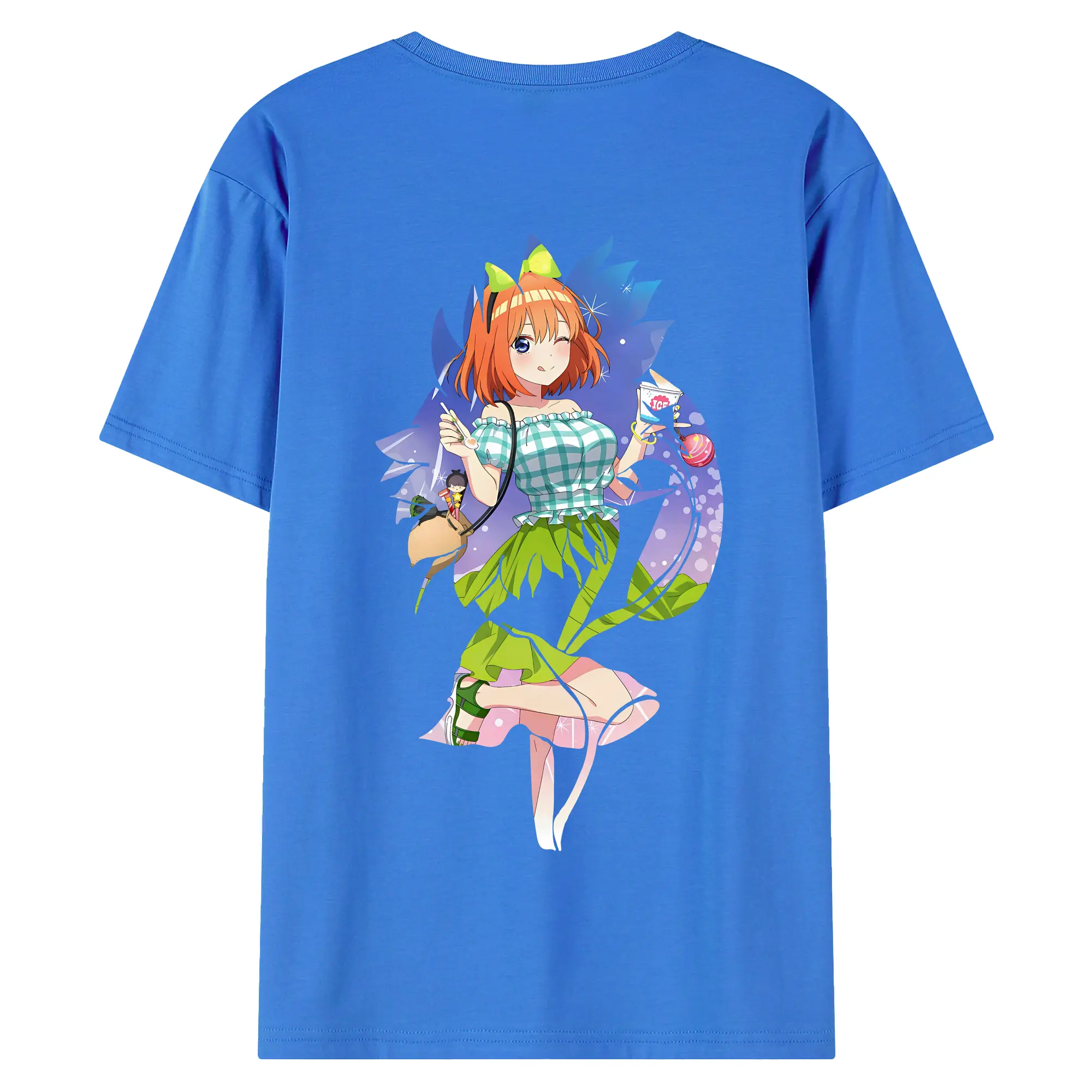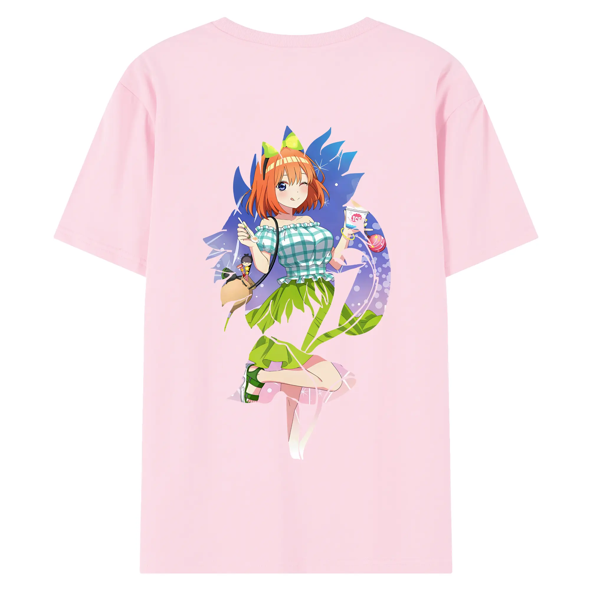 五等分の花嫁 グッズ 中野 四葉 - 綿100% 半袖Tシャツ ・ フロントプリント ・ 快適 通気性 ・ 日常使い 散歩 スポーツ用