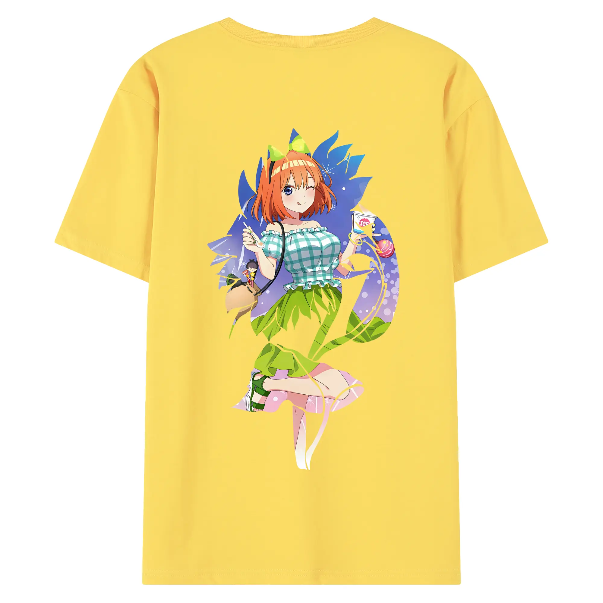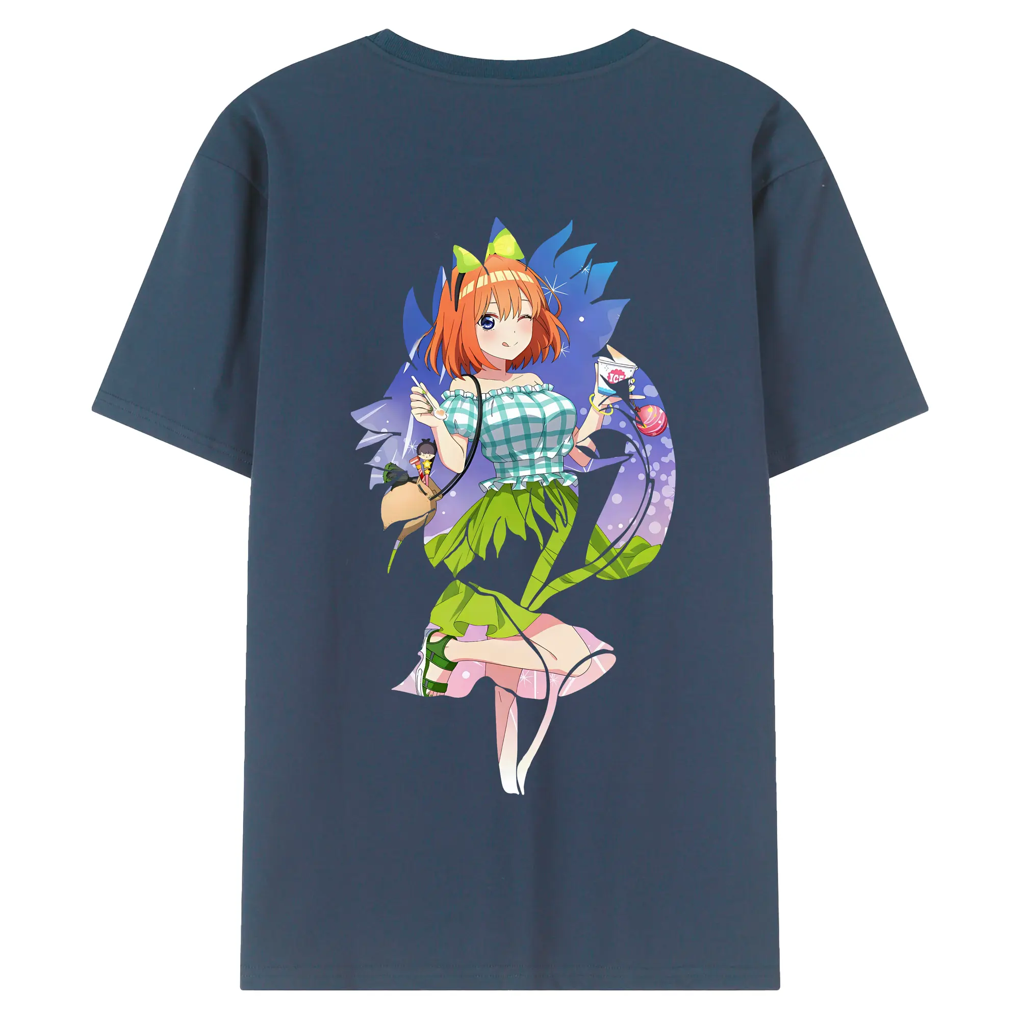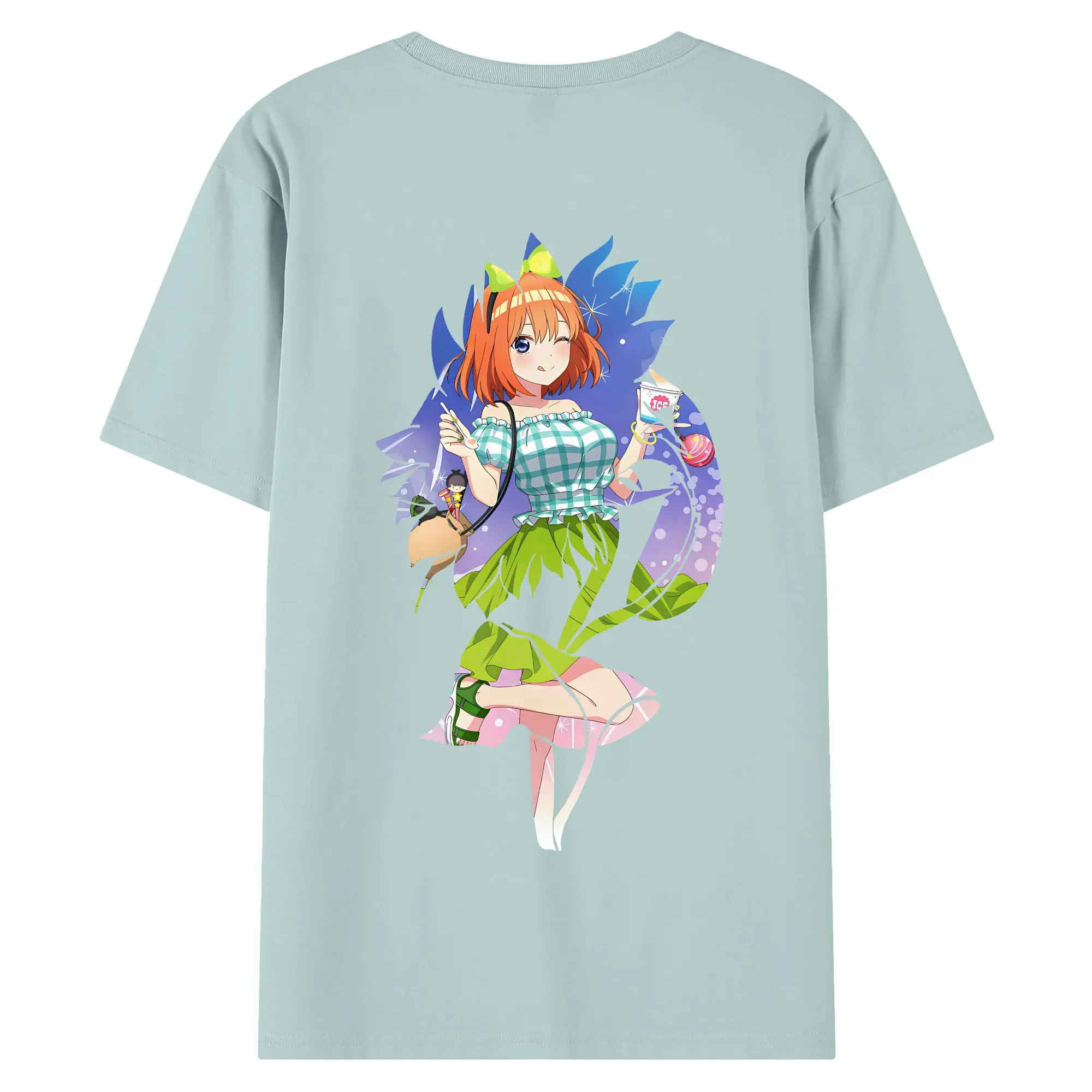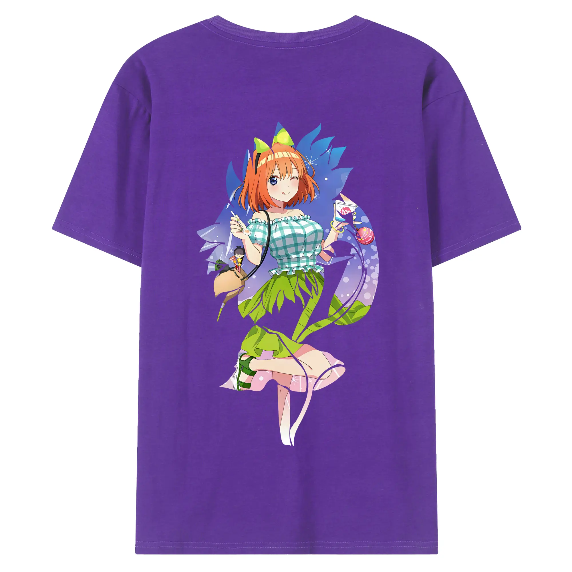 五等分の花嫁 グッズ 中野 四葉 - 綿100% 半袖Tシャツ ・ フロントプリント ・ 快適 通気性 ・ 日常使い 散歩 スポーツ用