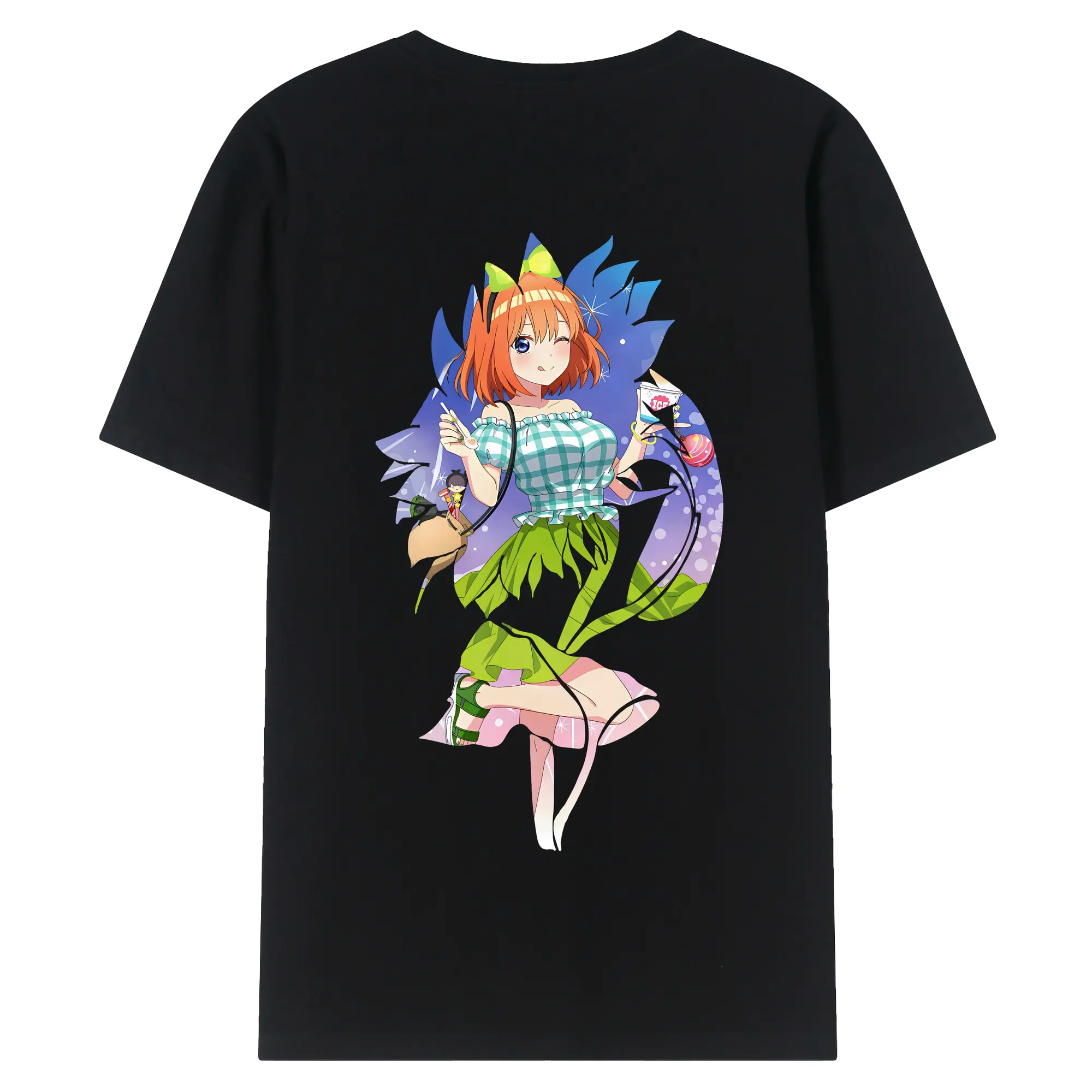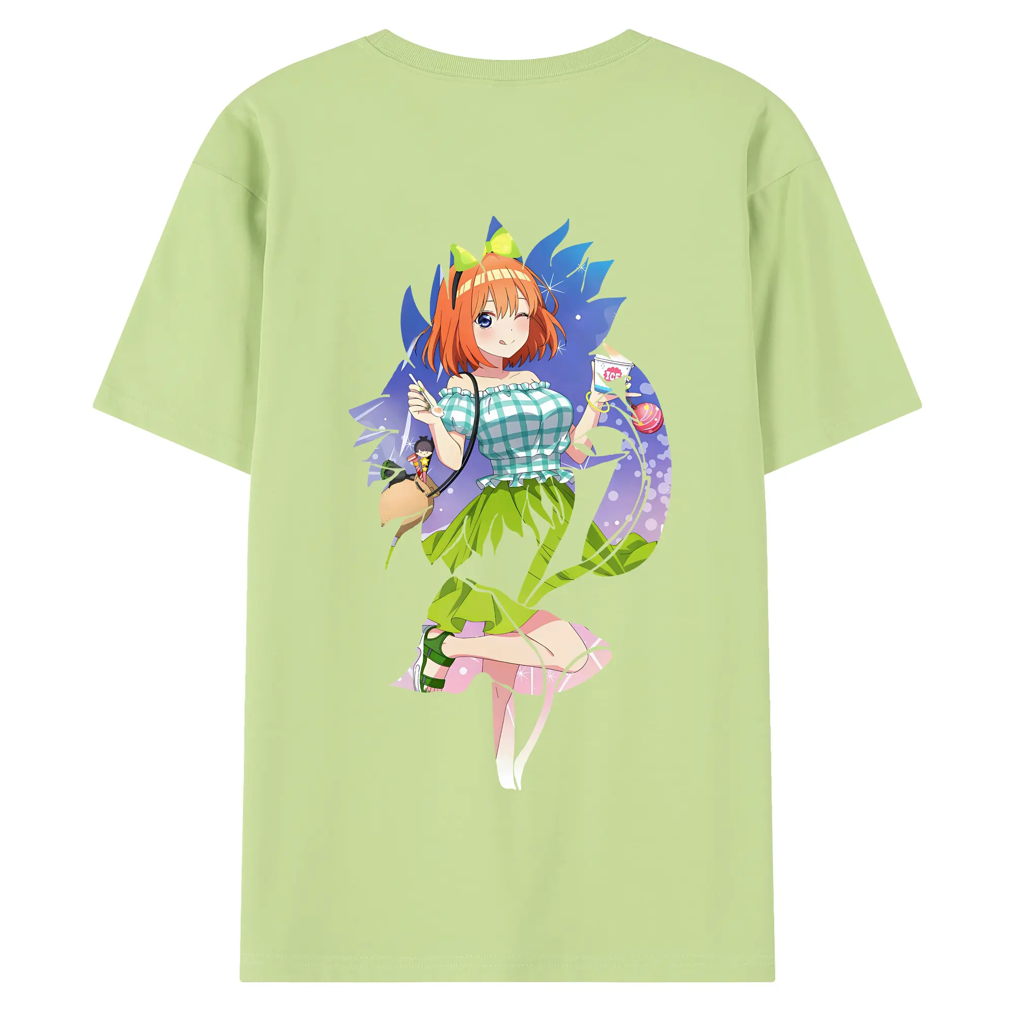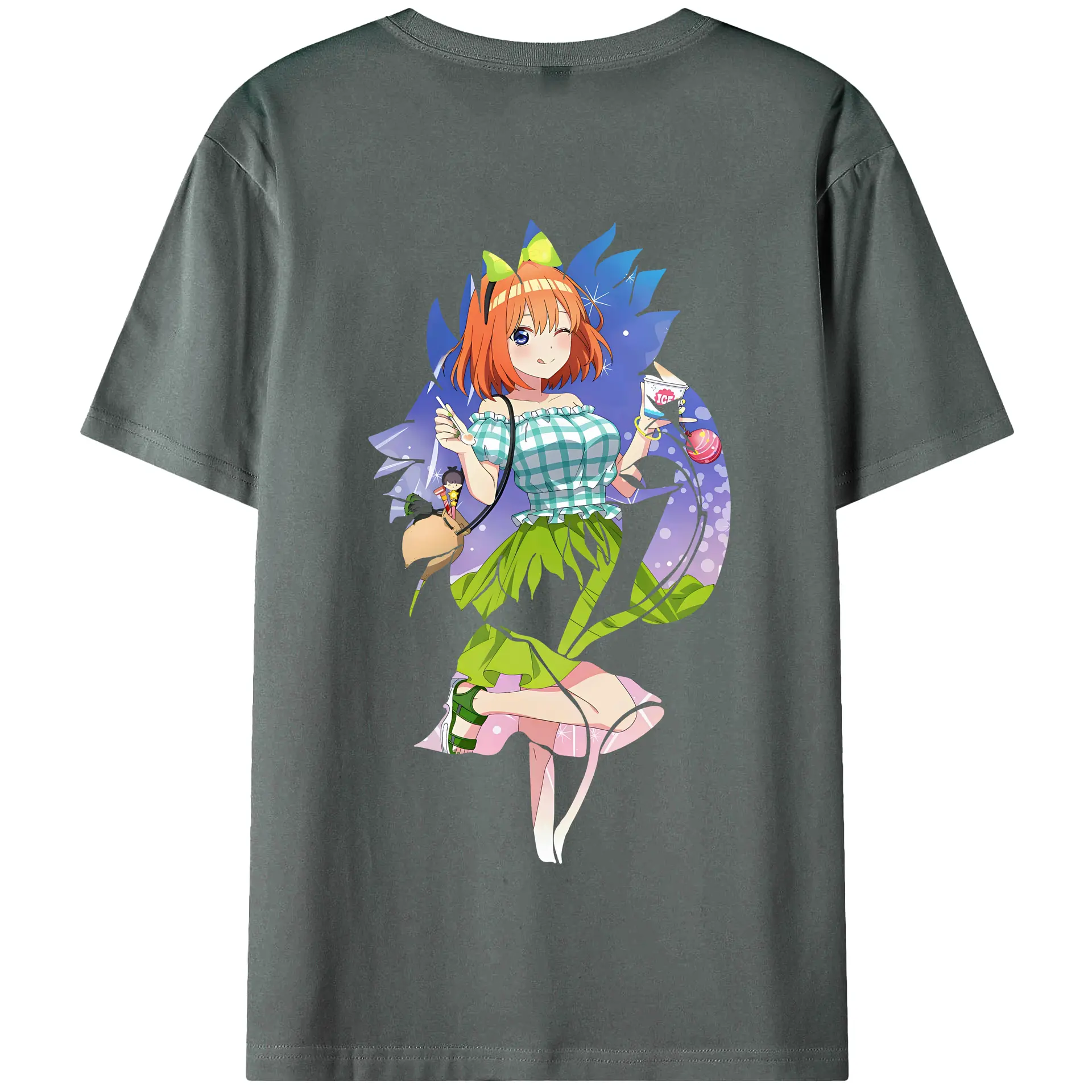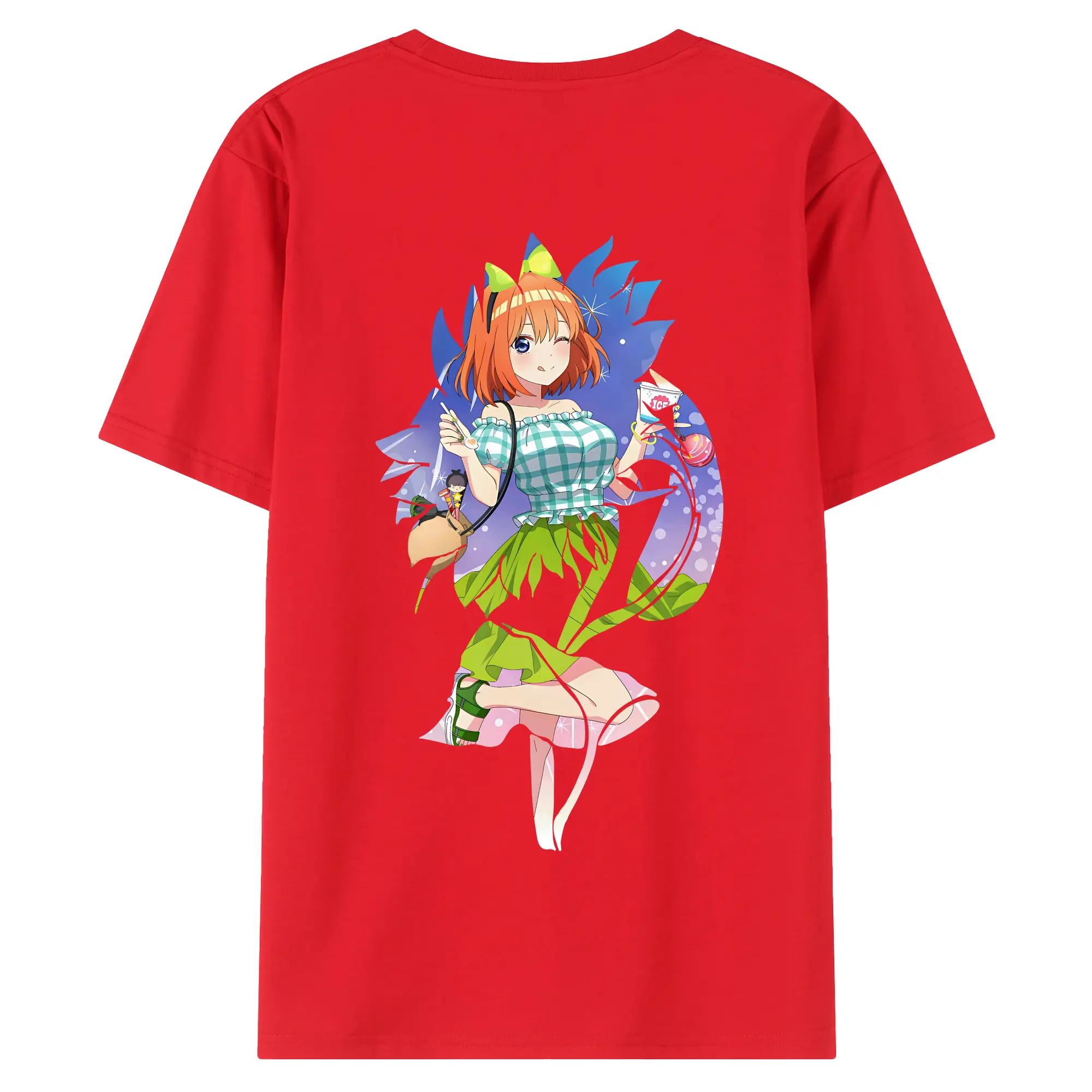 五等分の花嫁 グッズ 中野 四葉 - 綿100% 半袖Tシャツ ・ フロントプリント ・ 快適 通気性 ・ 日常使い 散歩 スポーツ用