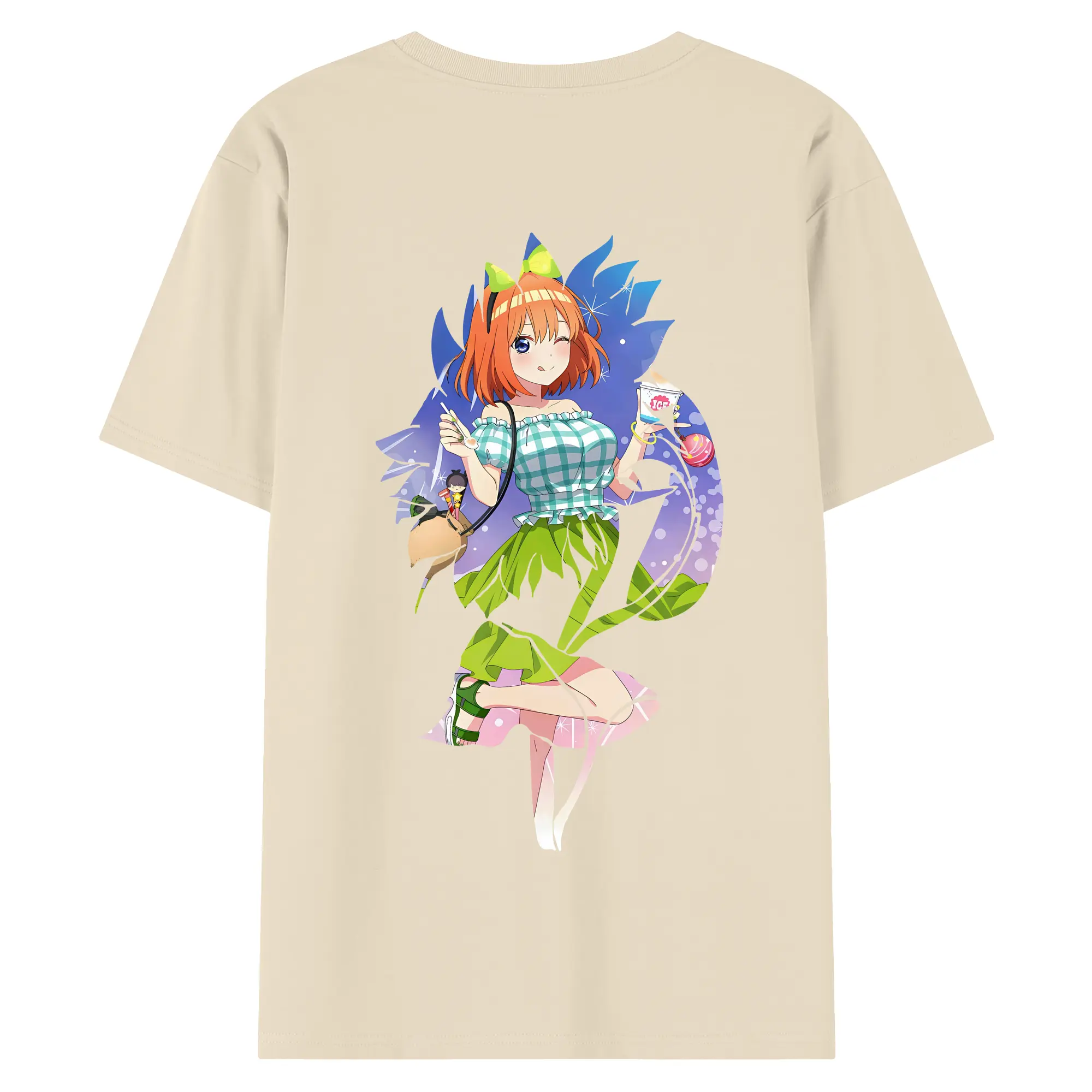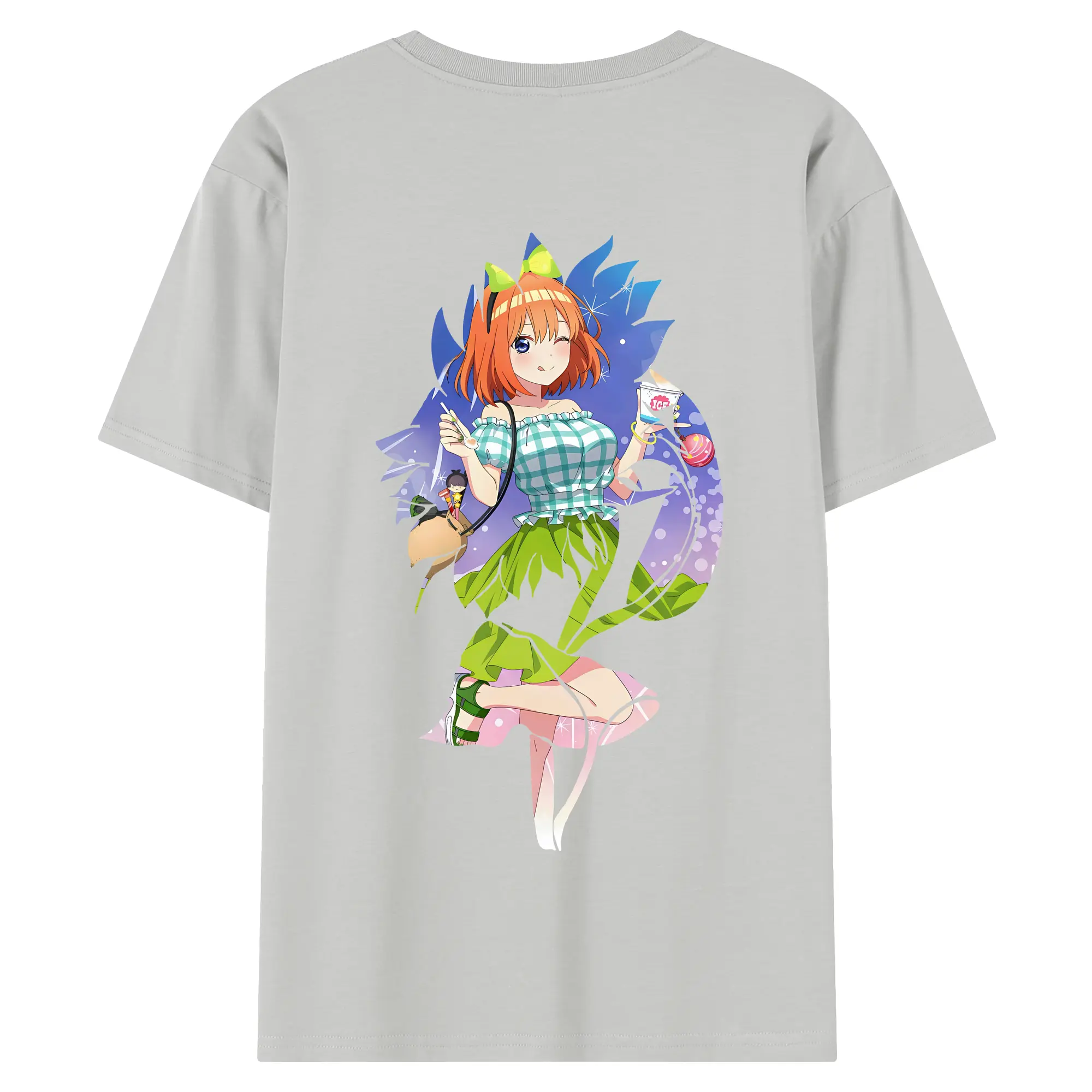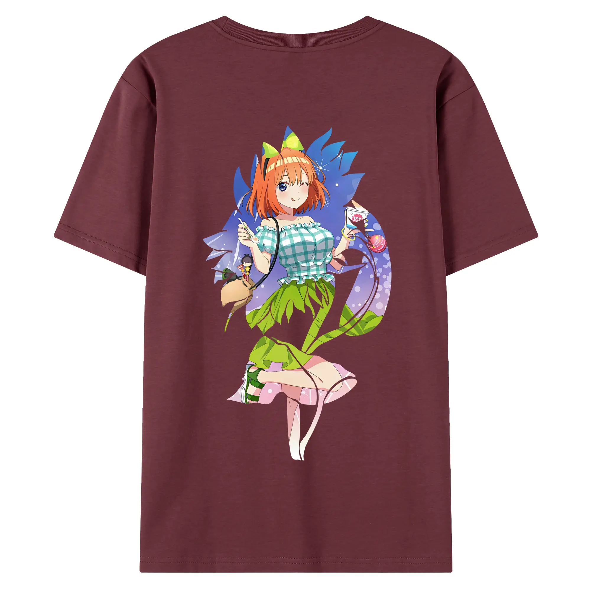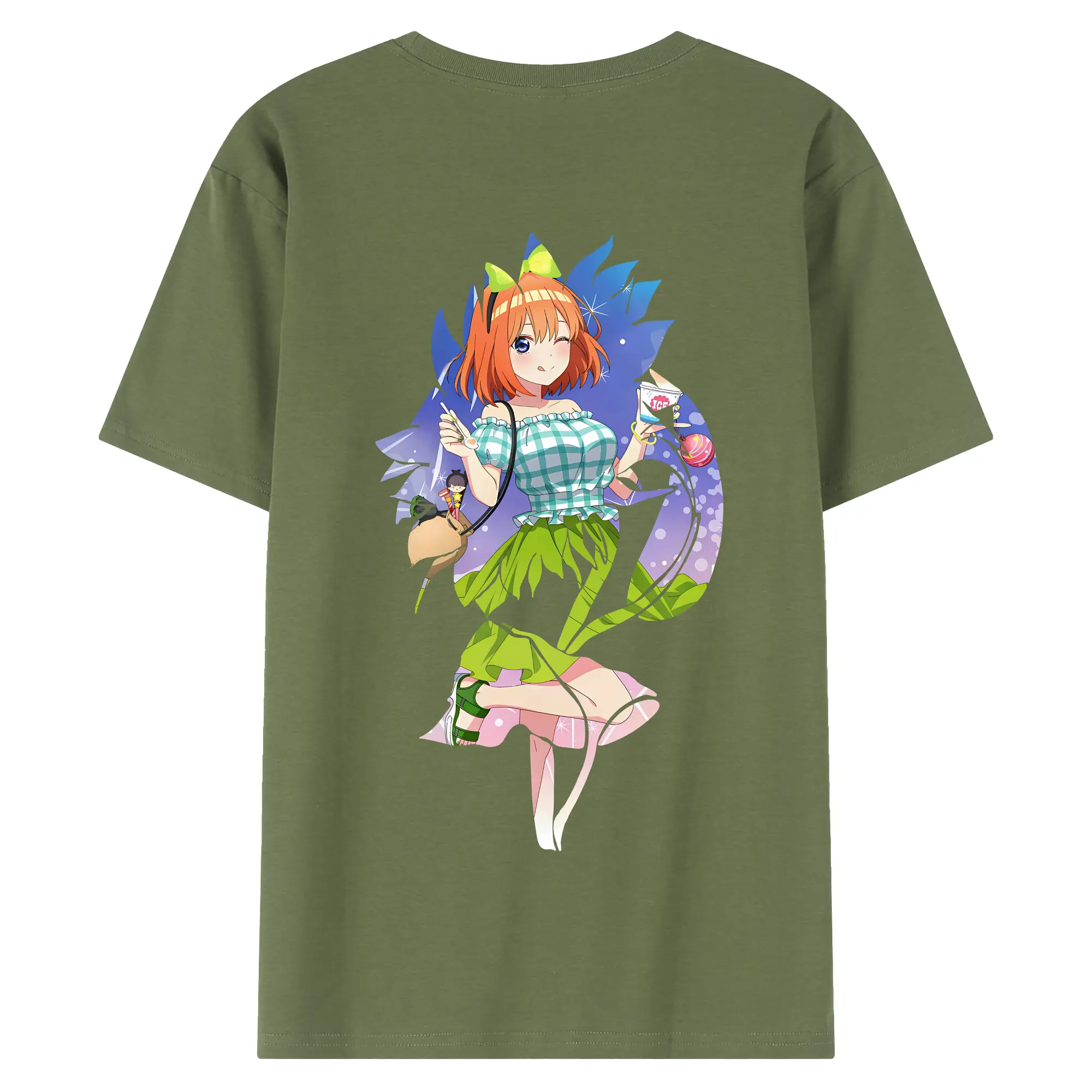 五等分の花嫁 グッズ 中野 四葉 - 綿100% 半袖Tシャツ ・ フロントプリント ・ 快適 通気性 ・ 日常使い 散歩 スポーツ用