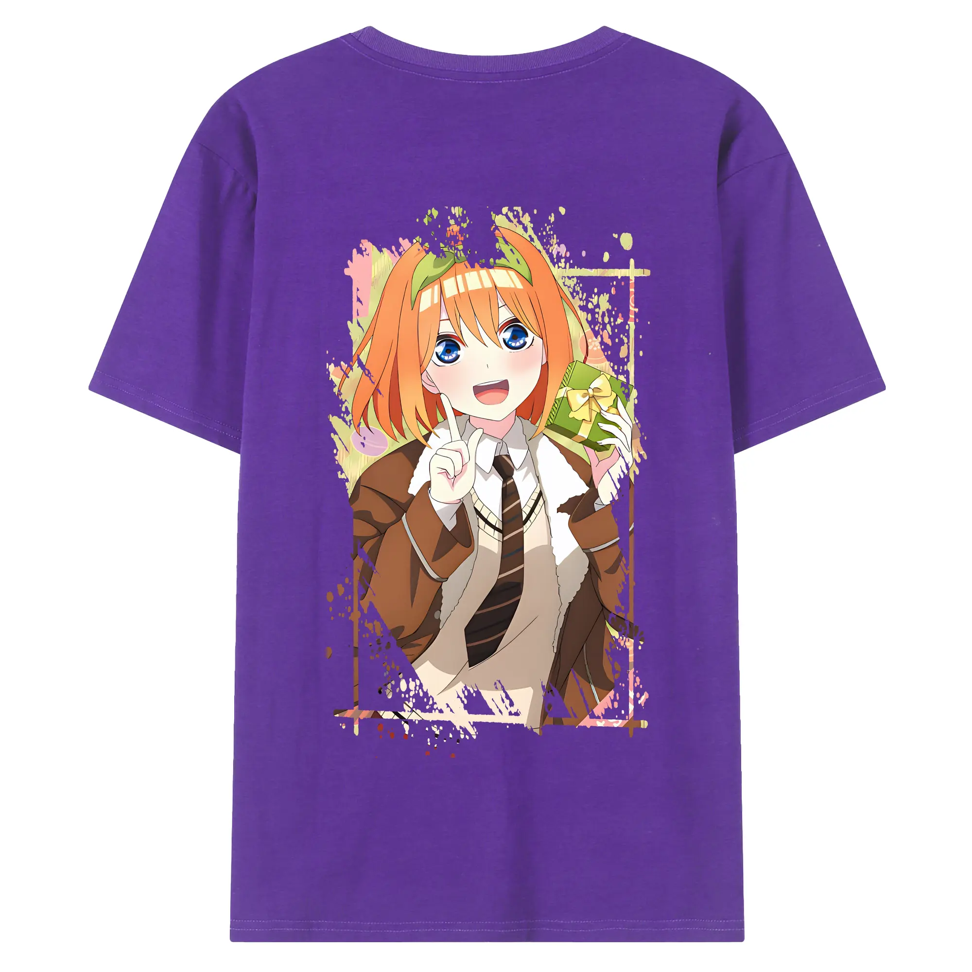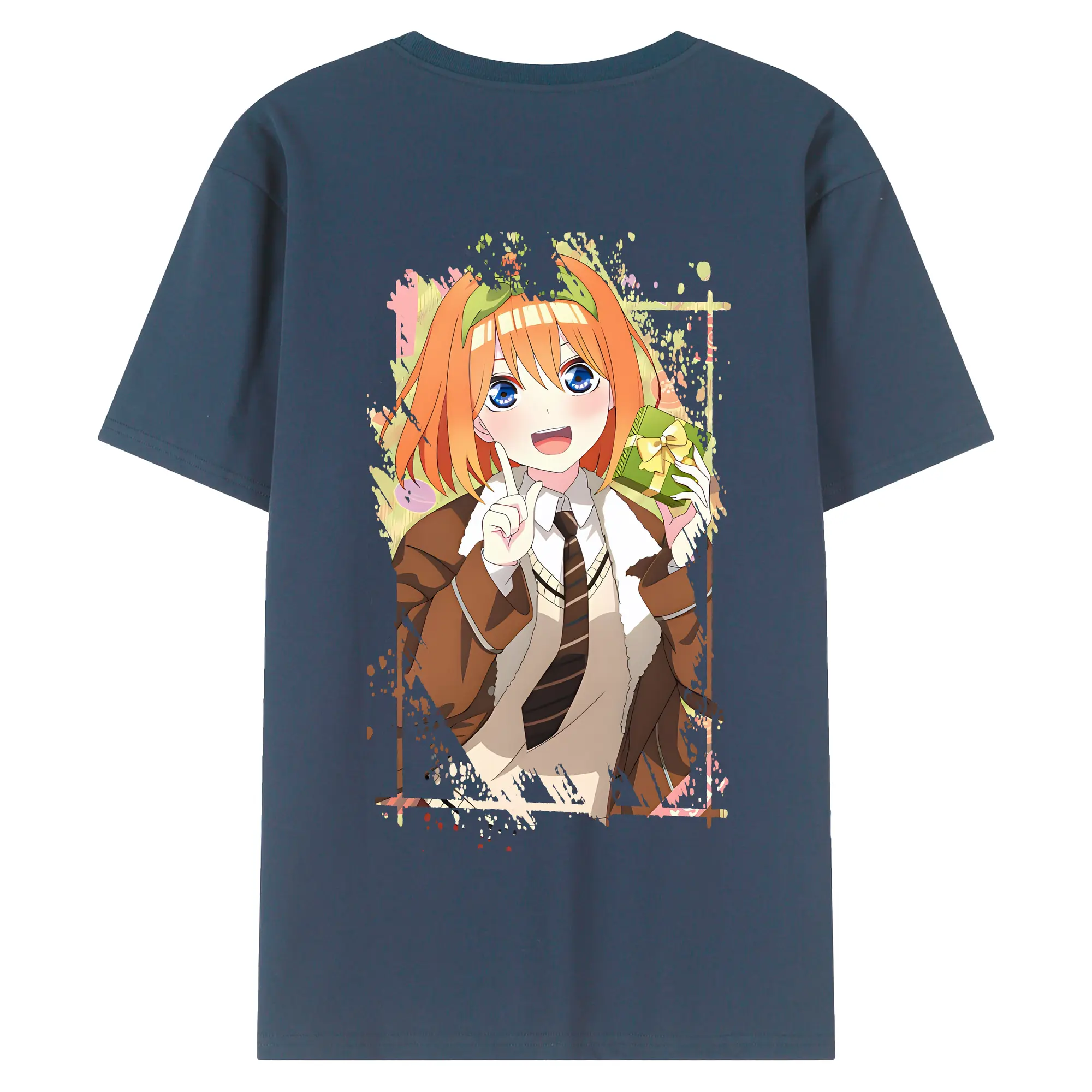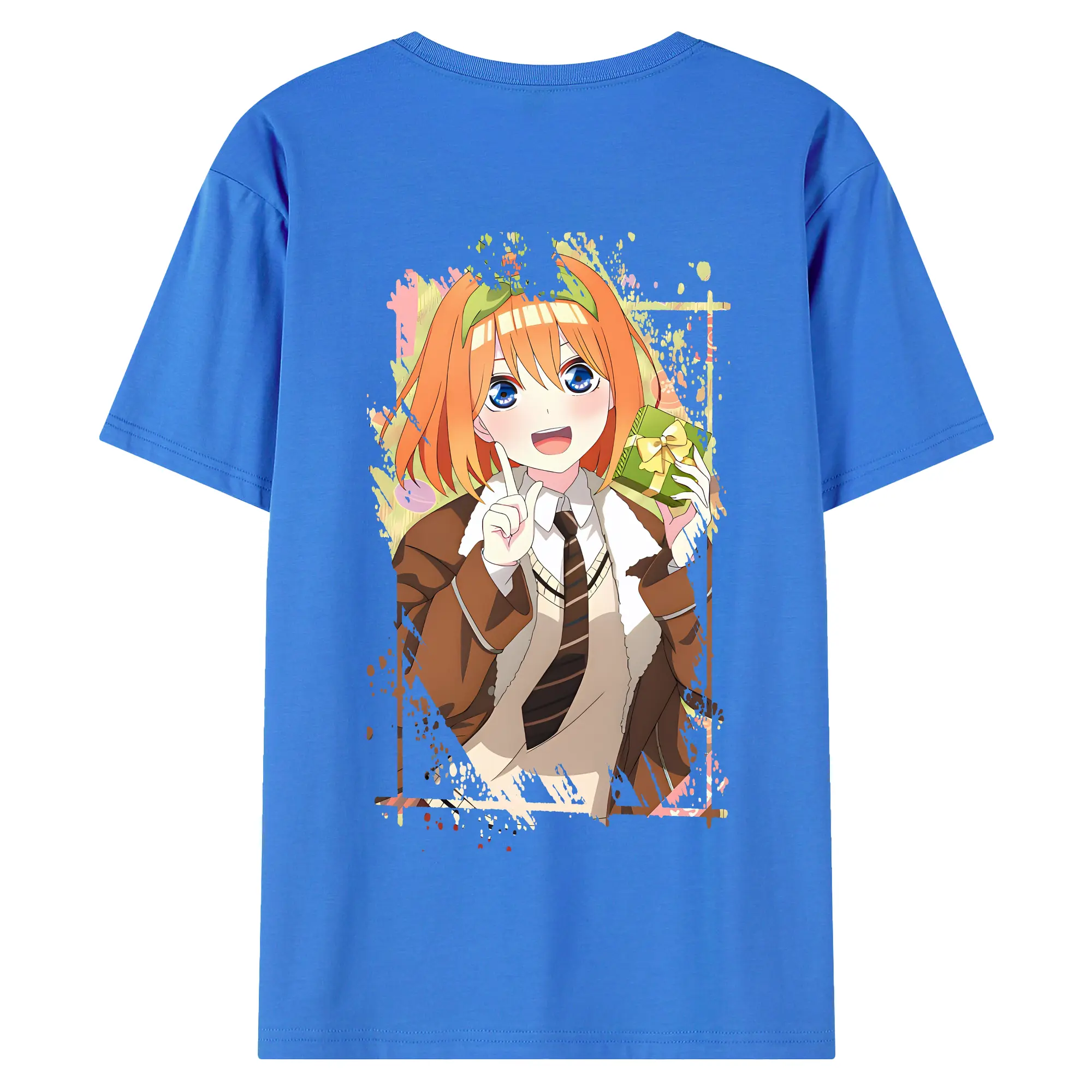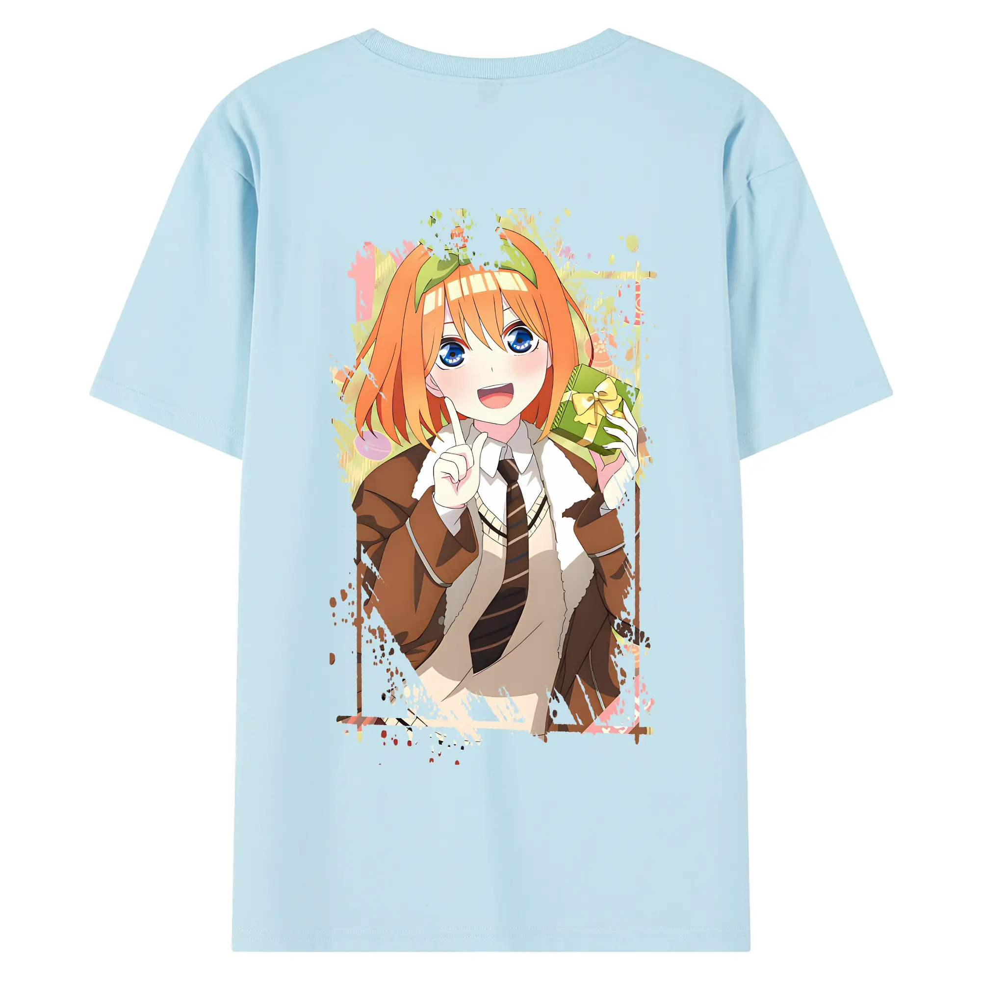 五等分の花嫁 グッズ 中野 四葉 - 綿100% 半袖Tシャツ ・ フロントプリント ・ 快適 通気性 ・ 日常使い 散歩 スポーツ用