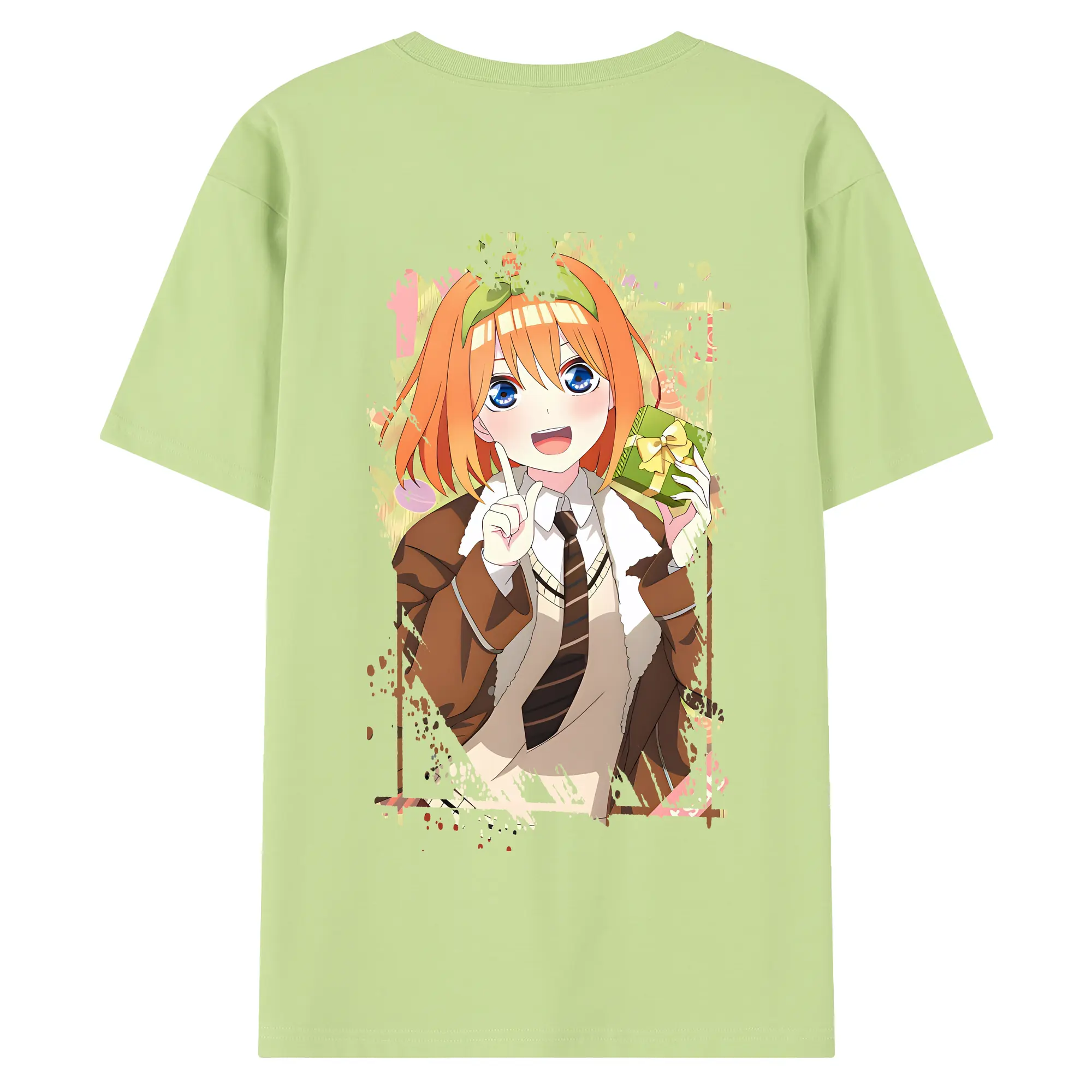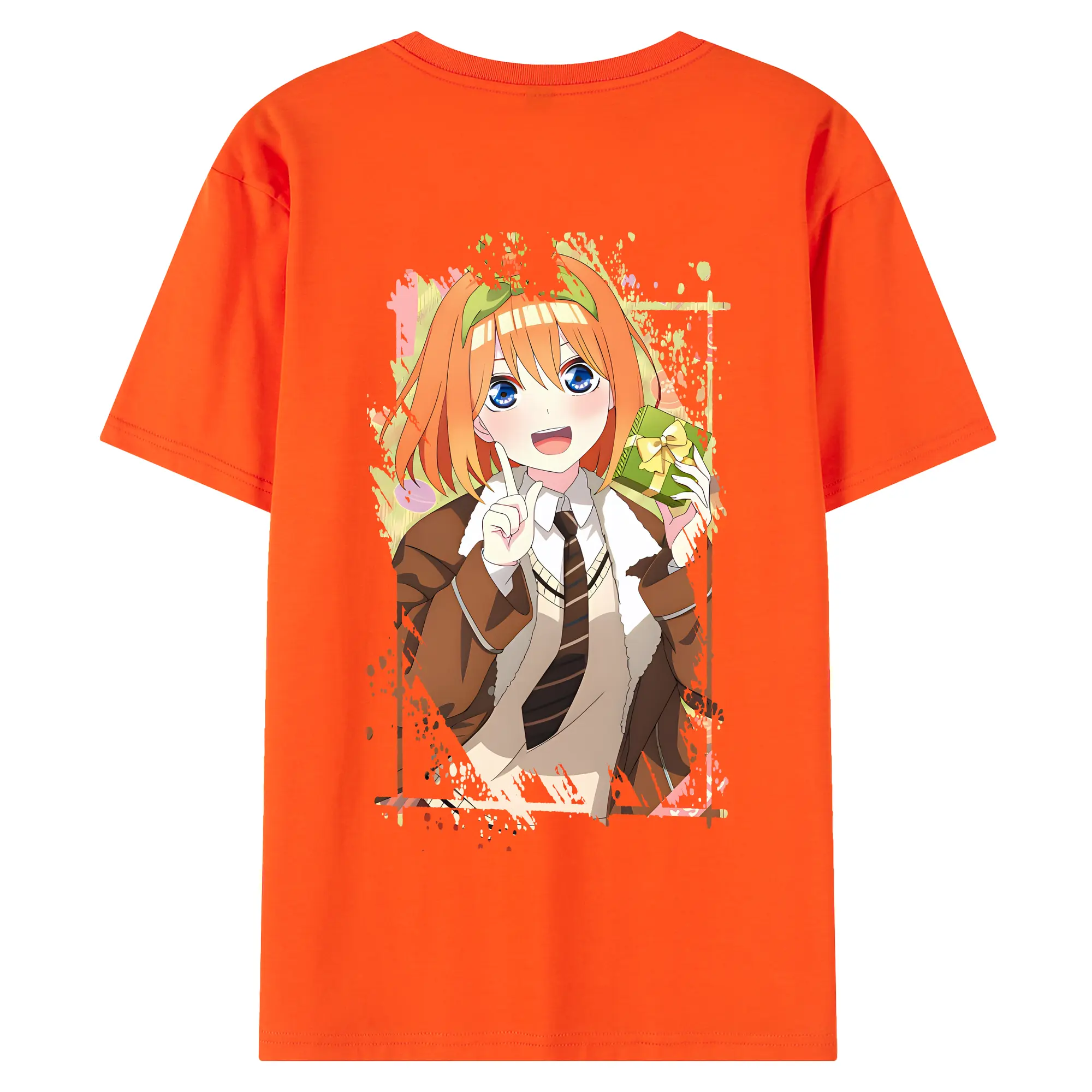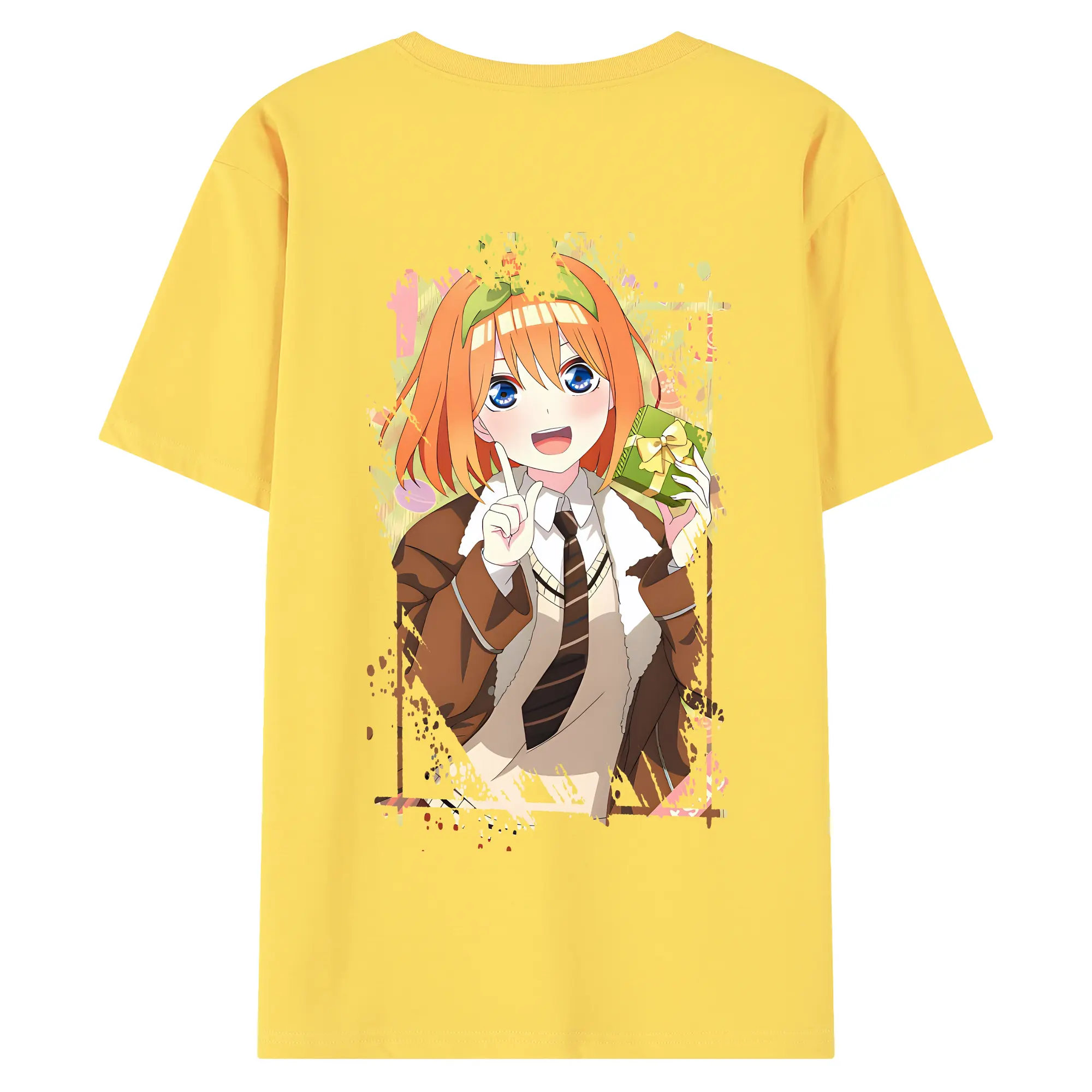 五等分の花嫁 グッズ 中野 四葉 - 綿100% 半袖Tシャツ ・ フロントプリント ・ 快適 通気性 ・ 日常使い 散歩 スポーツ用