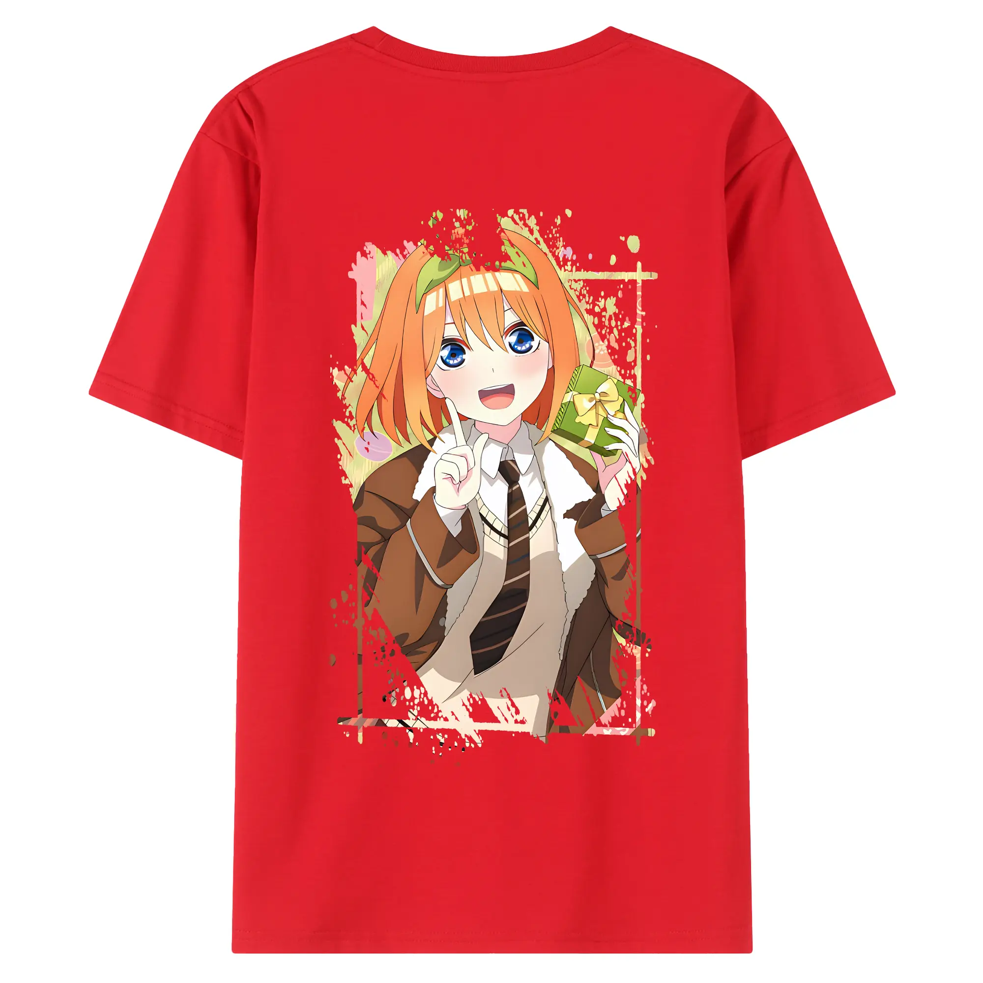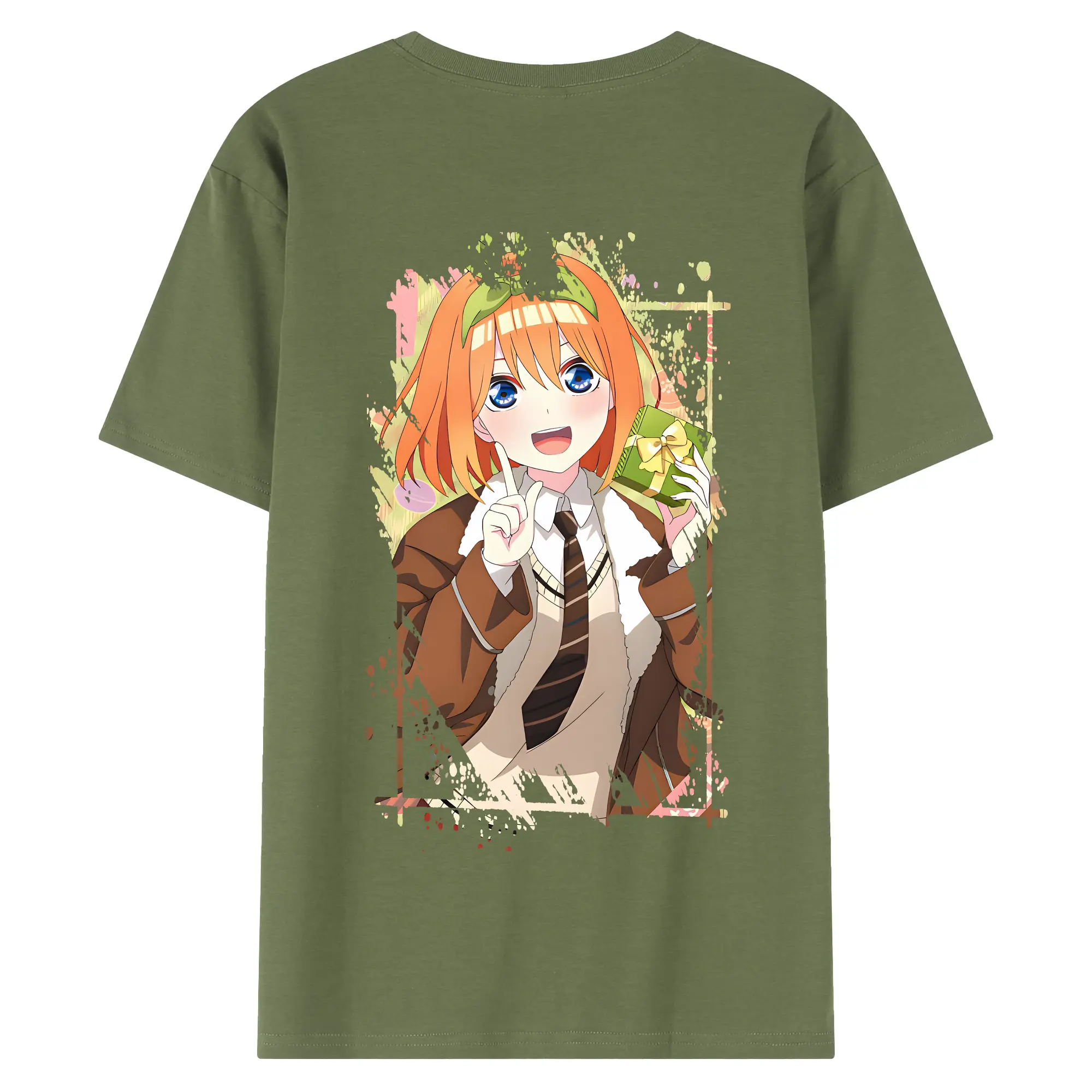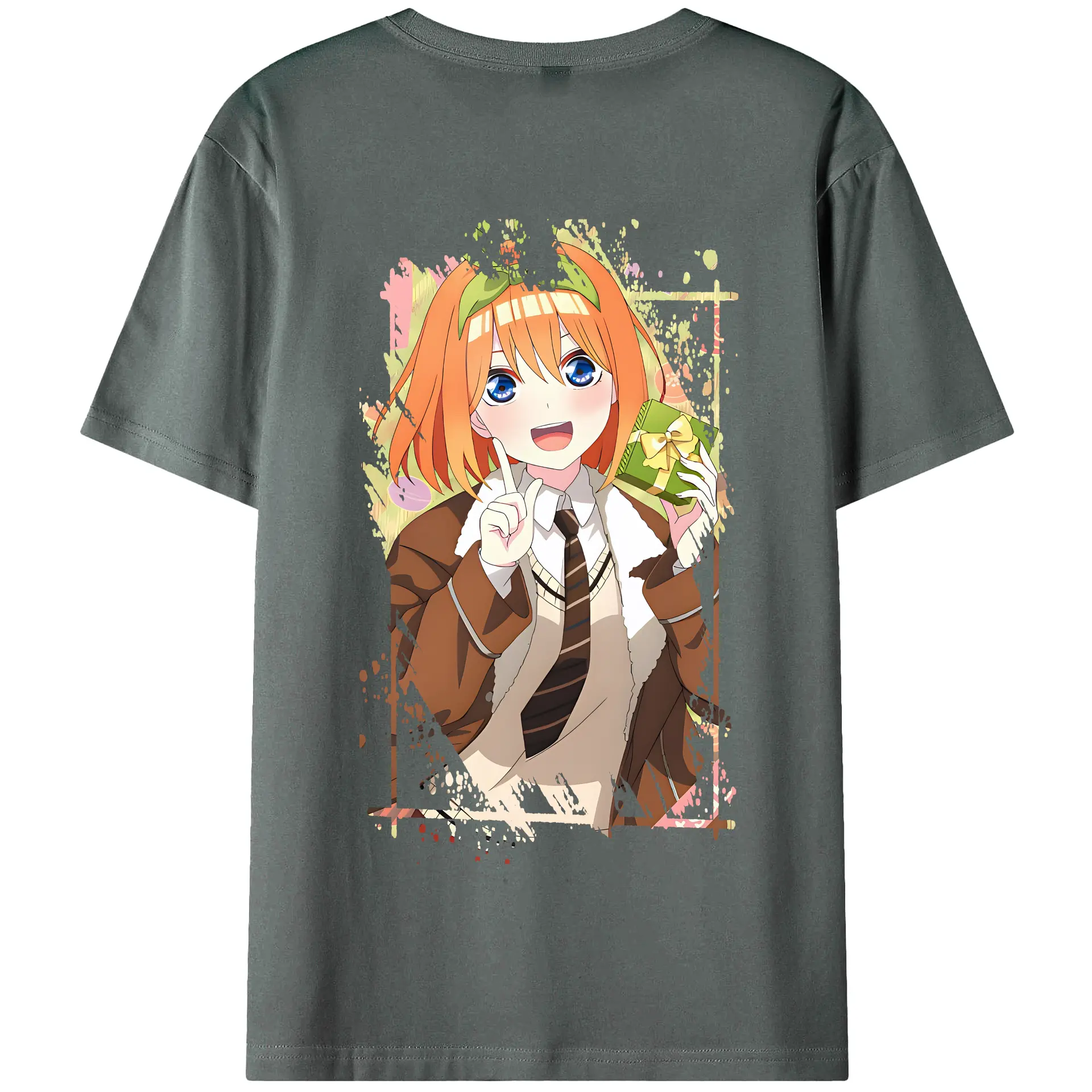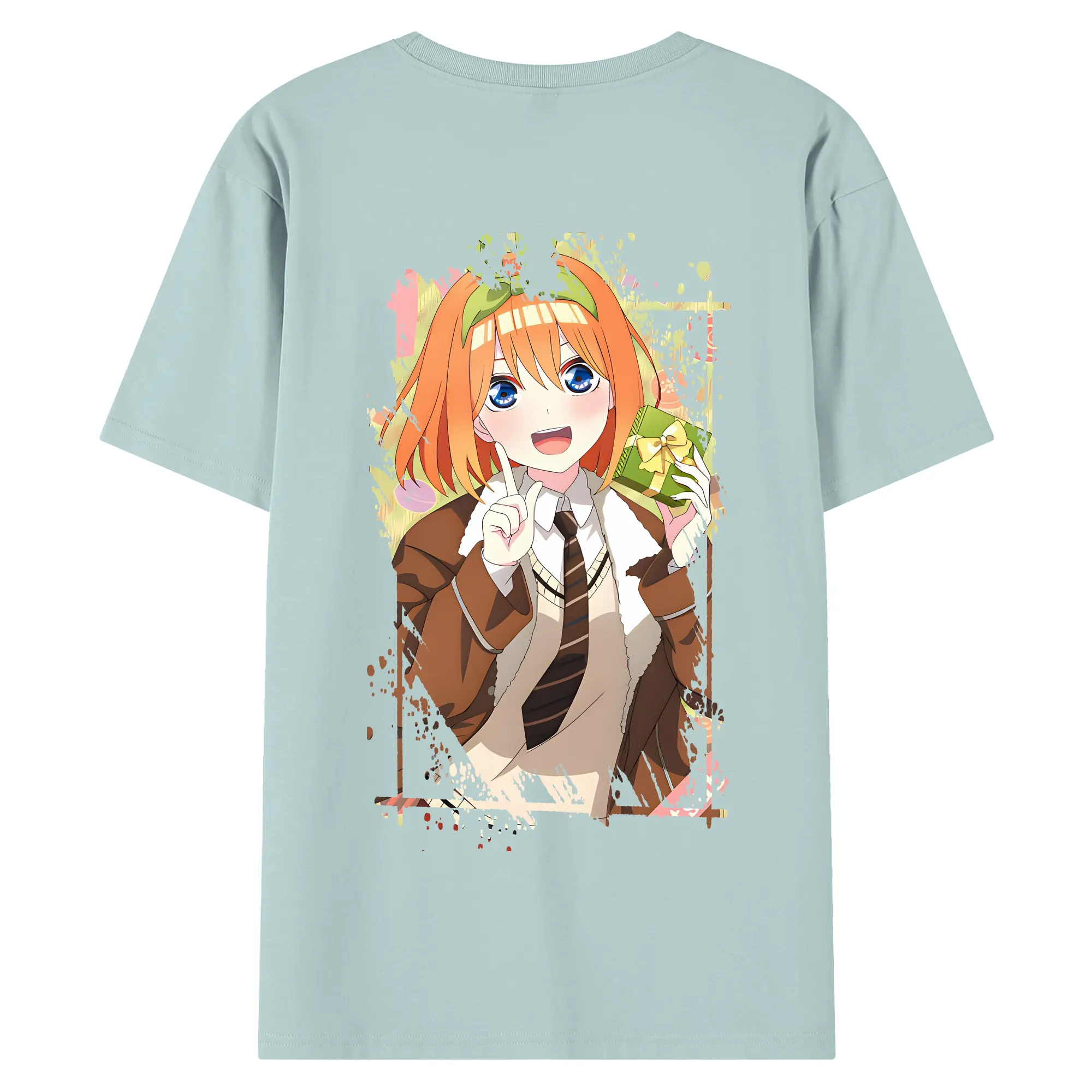 五等分の花嫁 グッズ 中野 四葉 - 綿100% 半袖Tシャツ ・ フロントプリント ・ 快適 通気性 ・ 日常使い 散歩 スポーツ用