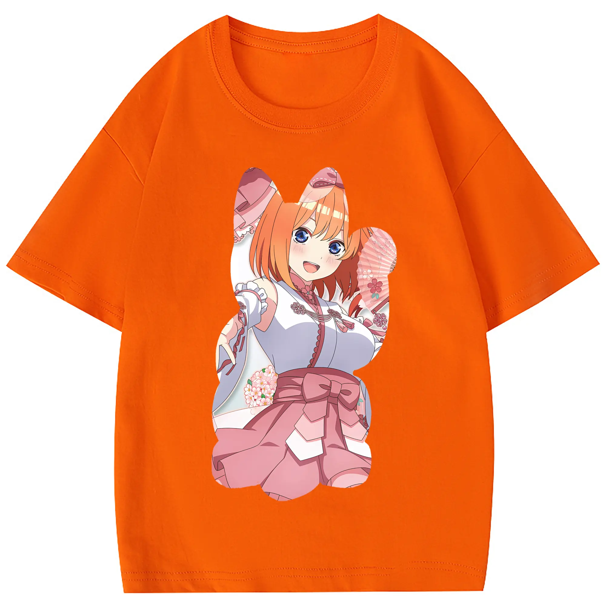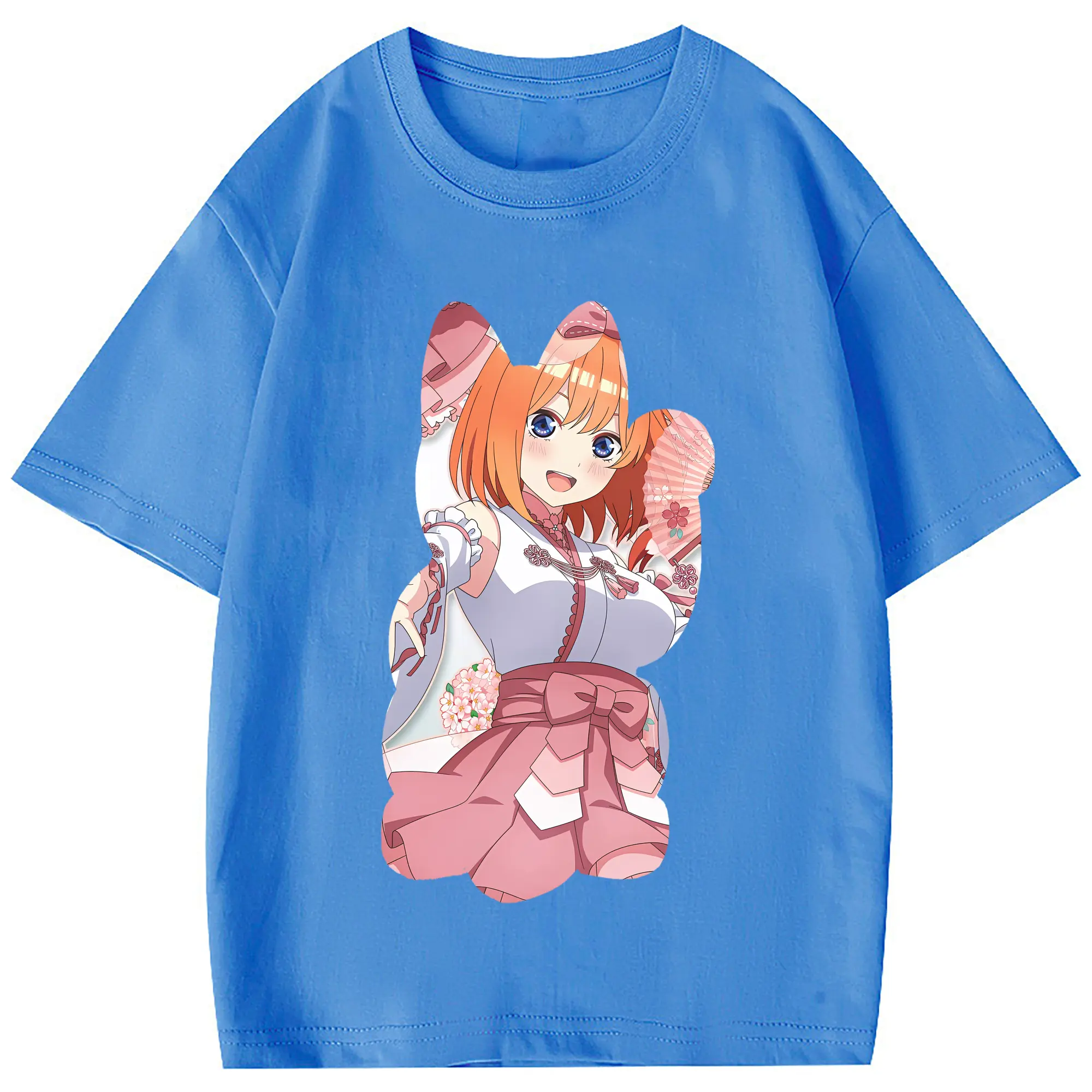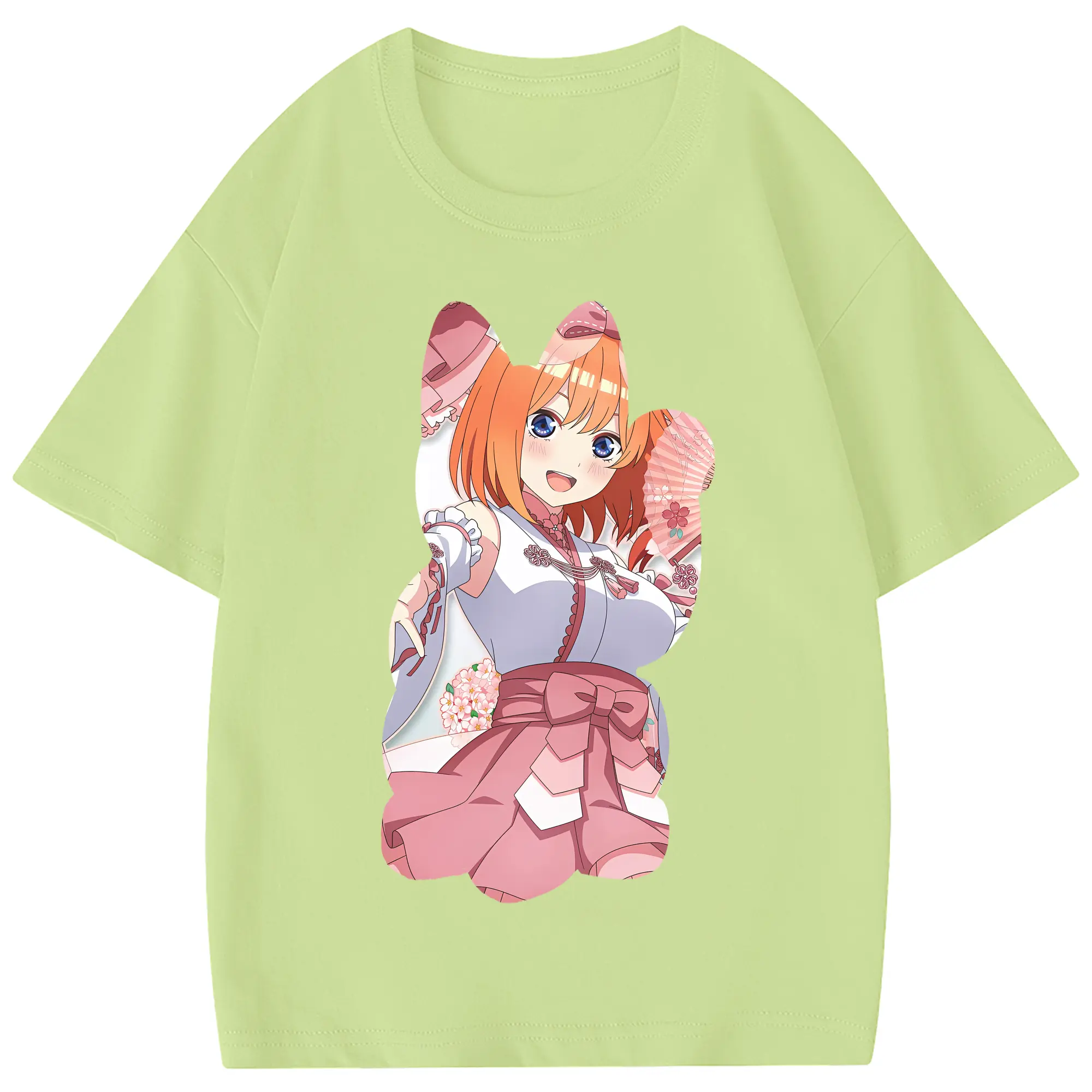 五等分の花嫁 グッズ 中野 四葉 - 綿100% 半袖Tシャツ ・ フロントプリント ・ 快適 通気性 ・ 日常使い 散歩 スポーツ用