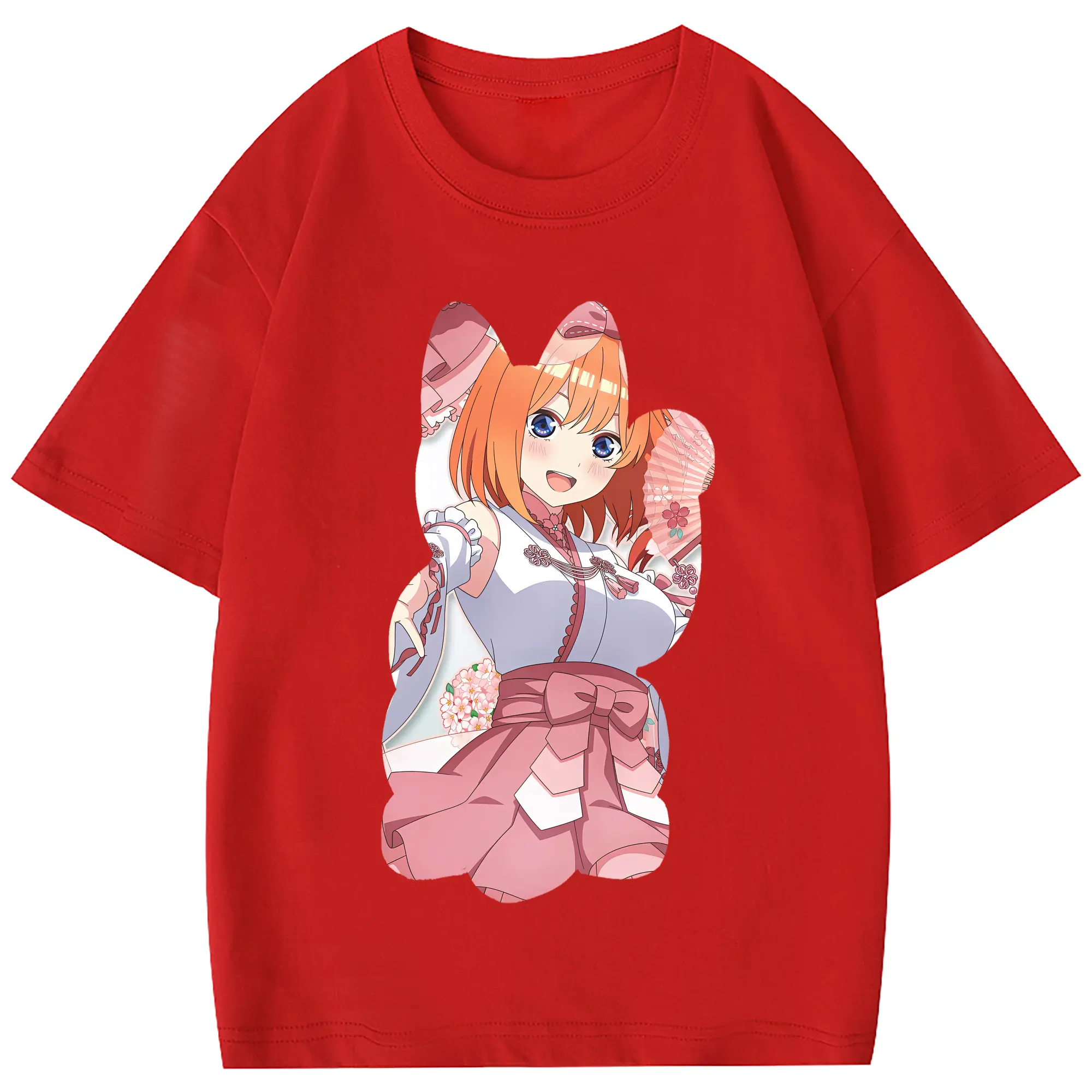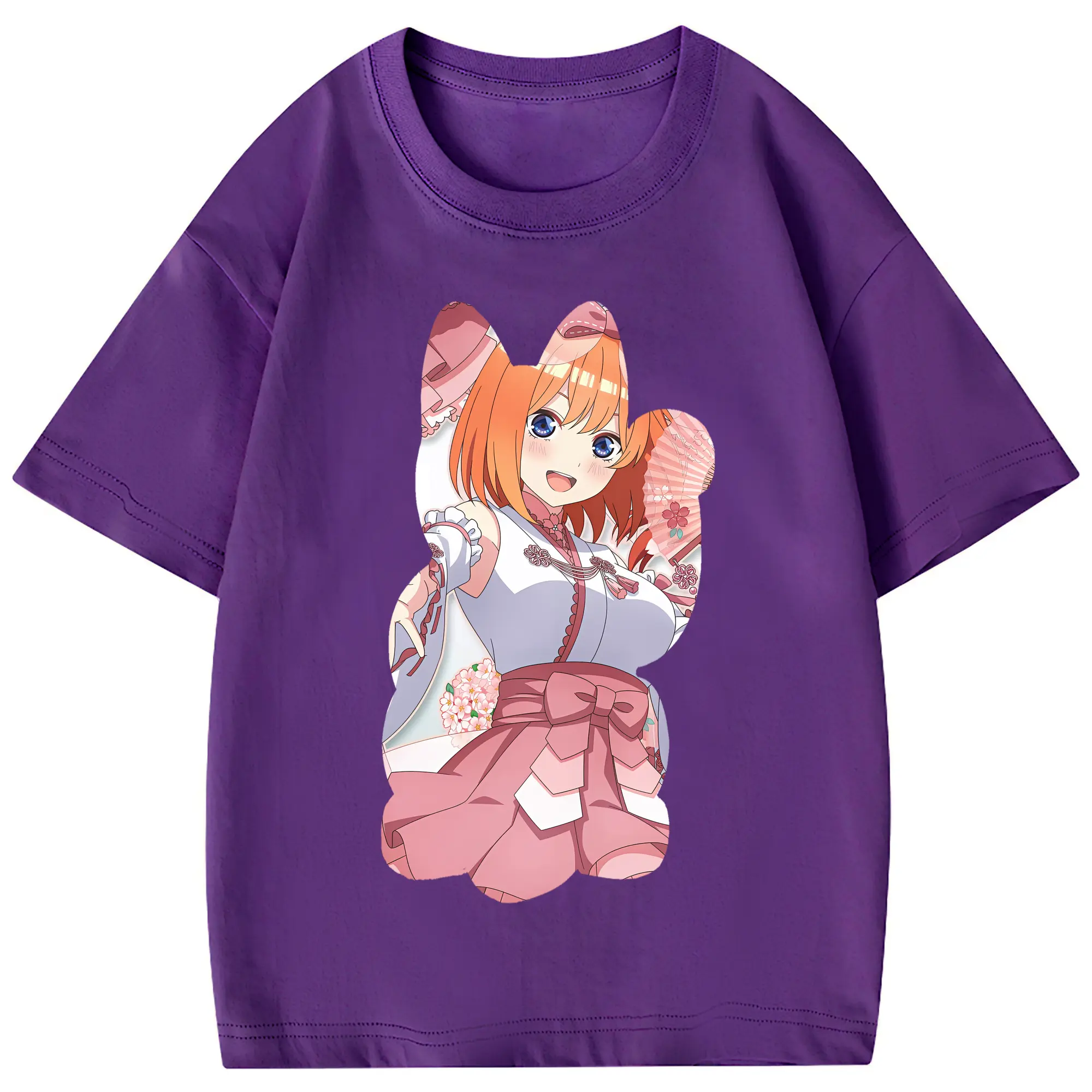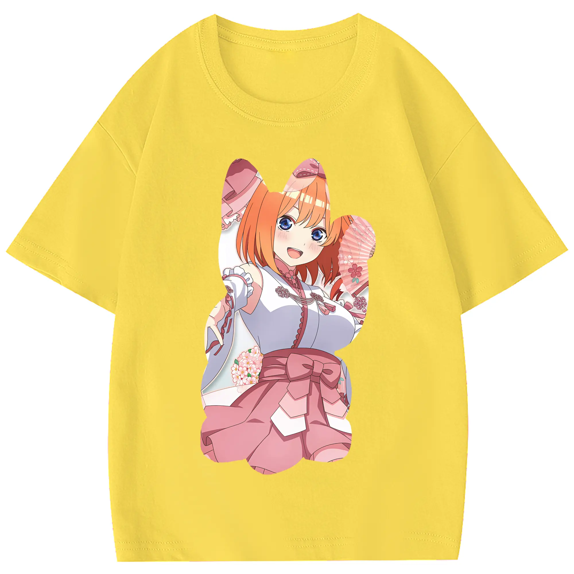 五等分の花嫁 グッズ 中野 四葉 - 綿100% 半袖Tシャツ ・ フロントプリント ・ 快適 通気性 ・ 日常使い 散歩 スポーツ用