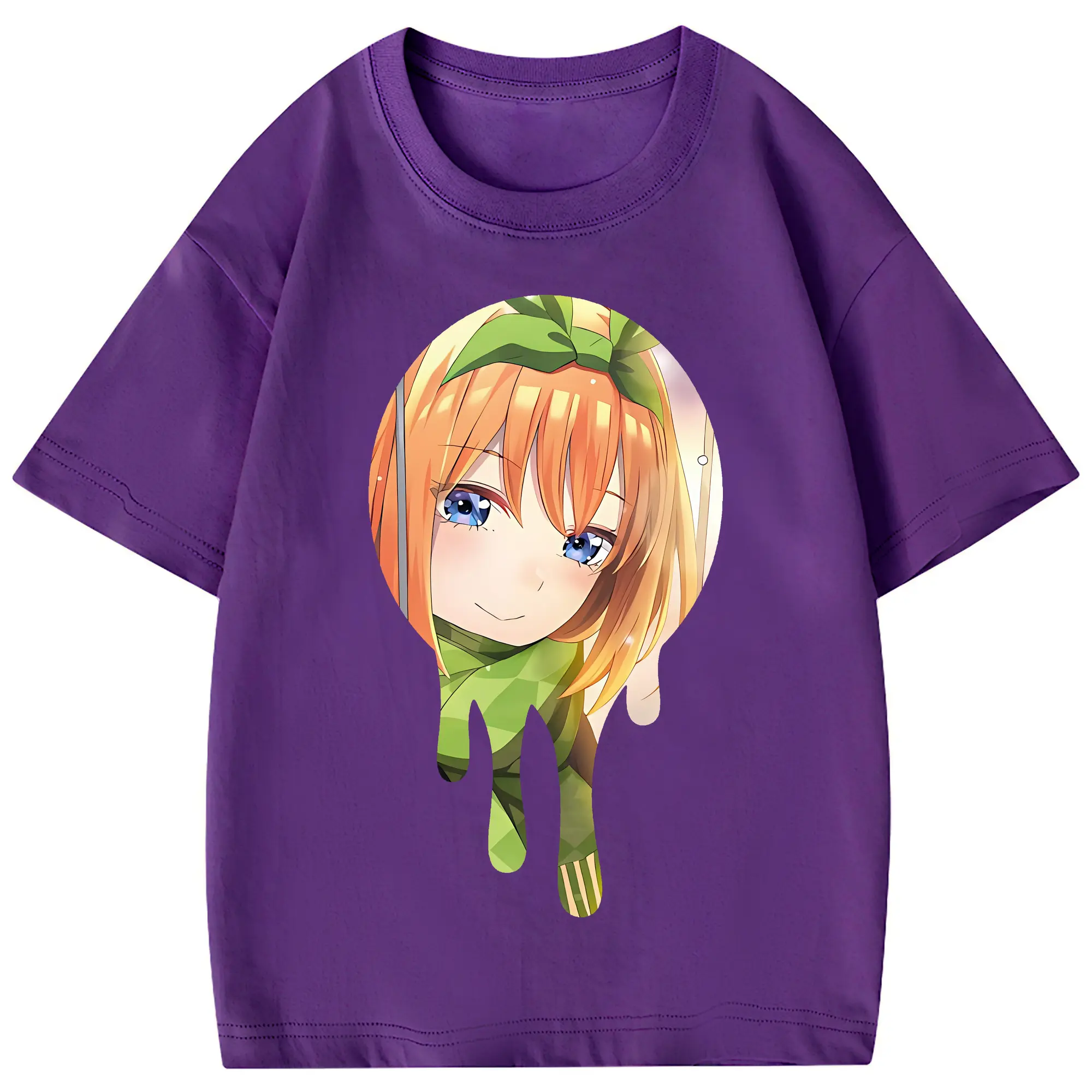 五等分の花嫁 グッズ 中野 四葉 - 綿100% 半袖Tシャツ ・ フロントプリント ・ 快適 通気性 ・ 日常使い 散歩 スポーツ用