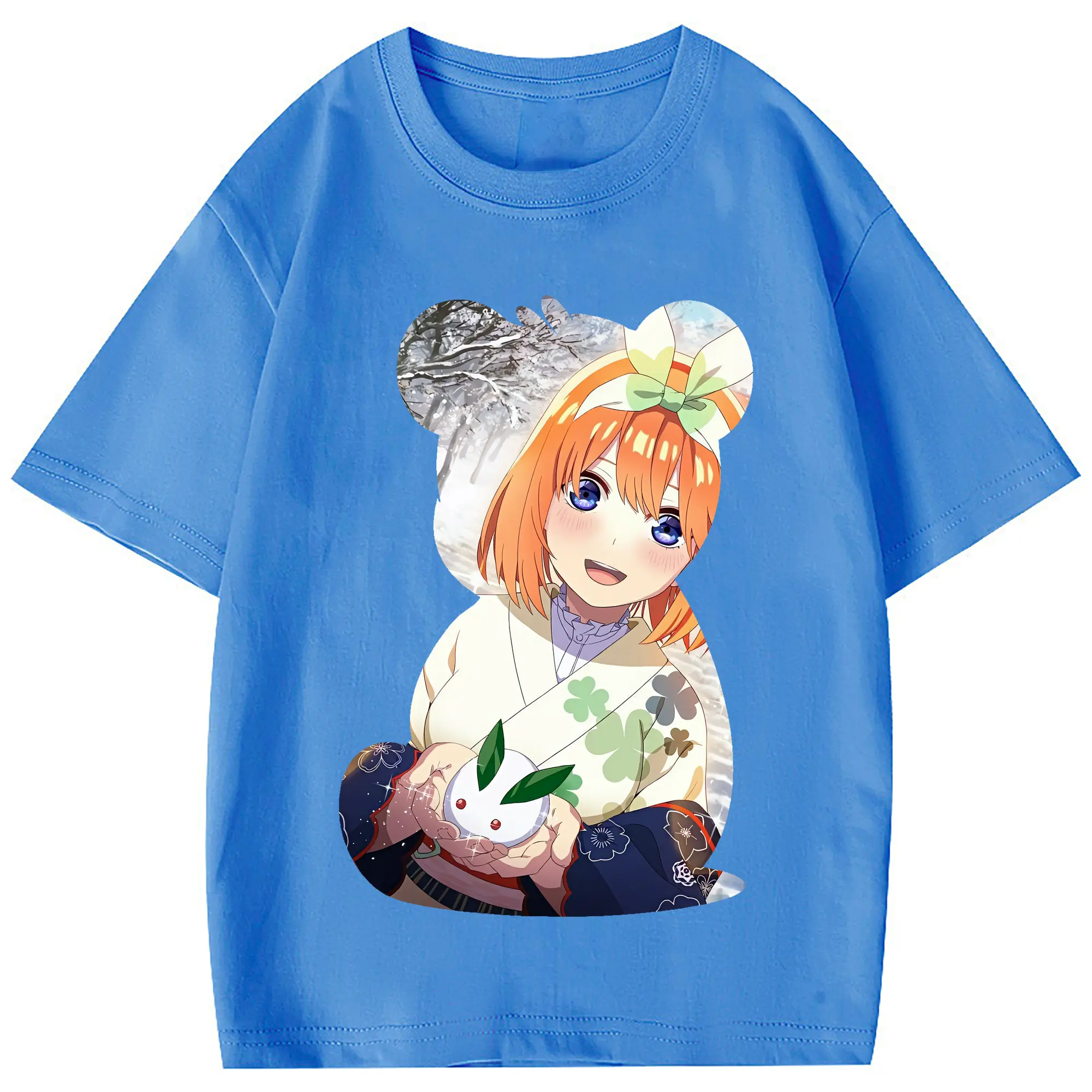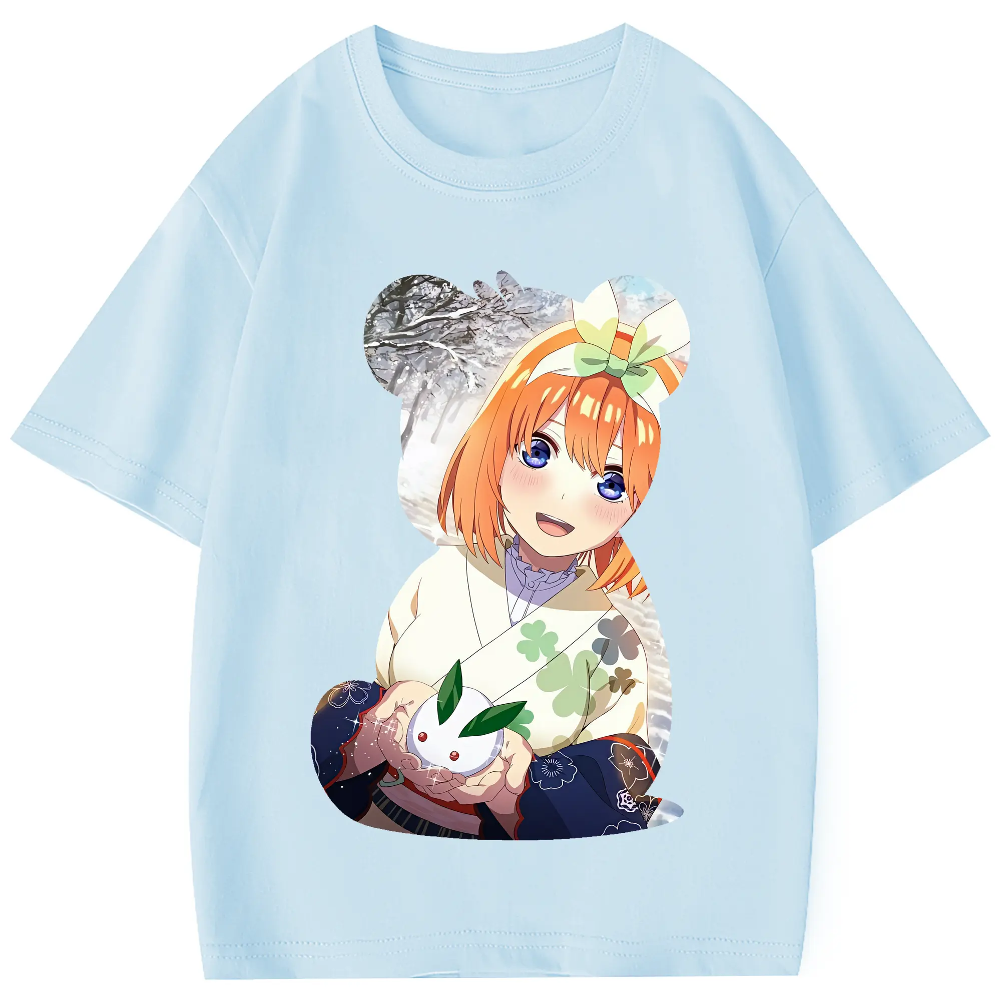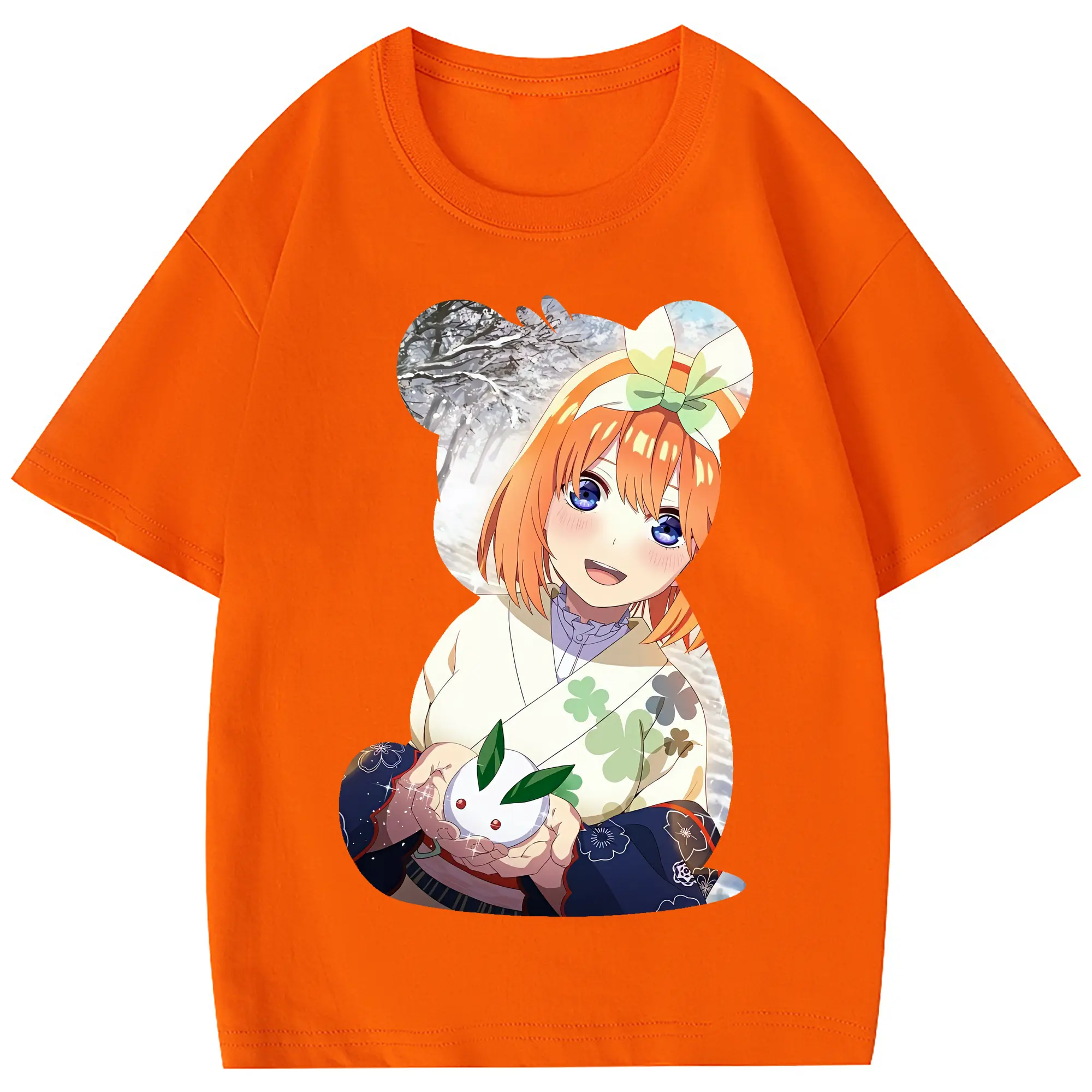 五等分の花嫁 グッズ 中野 四葉 - 綿100% 半袖Tシャツ ・ フロントプリント ・ 快適 通気性 ・ 日常使い 散歩 スポーツ用