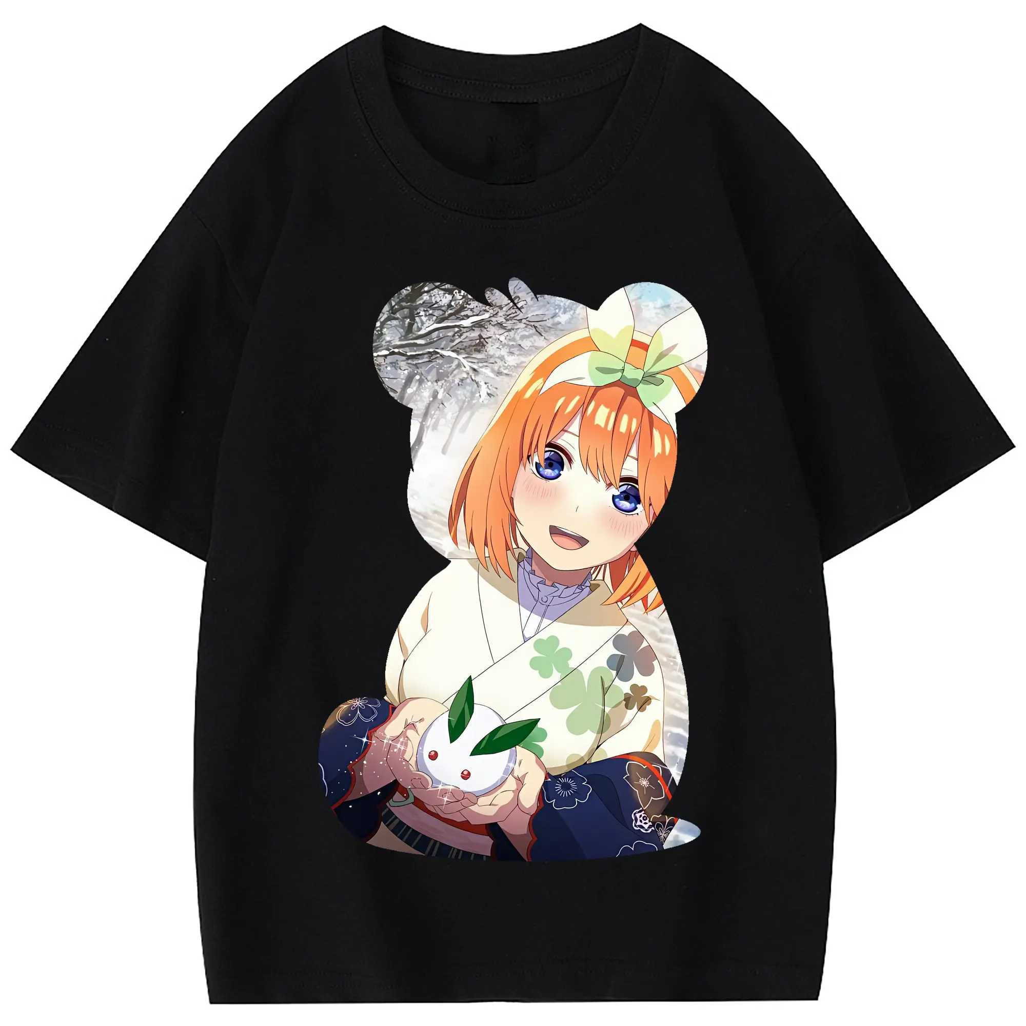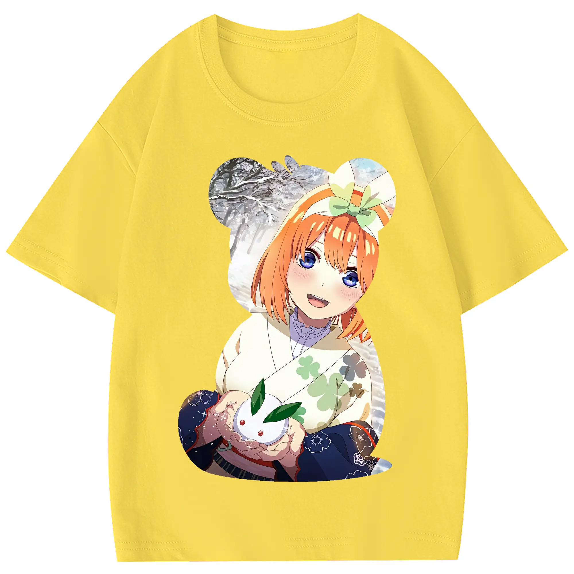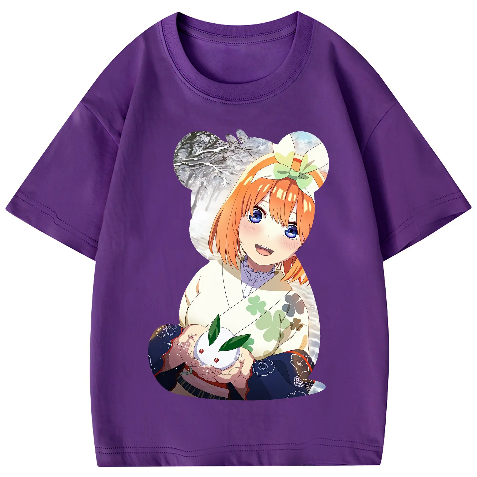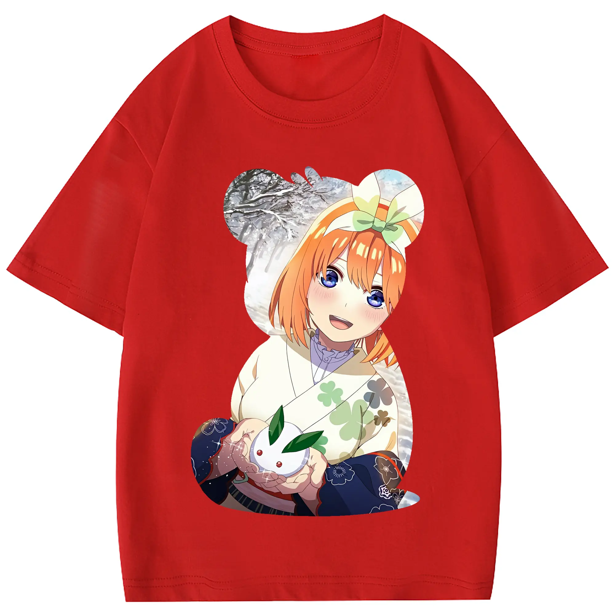 五等分の花嫁 グッズ 中野 四葉 - 綿100% 半袖Tシャツ ・ フロントプリント ・ 快適 通気性 ・ 日常使い 散歩 スポーツ用