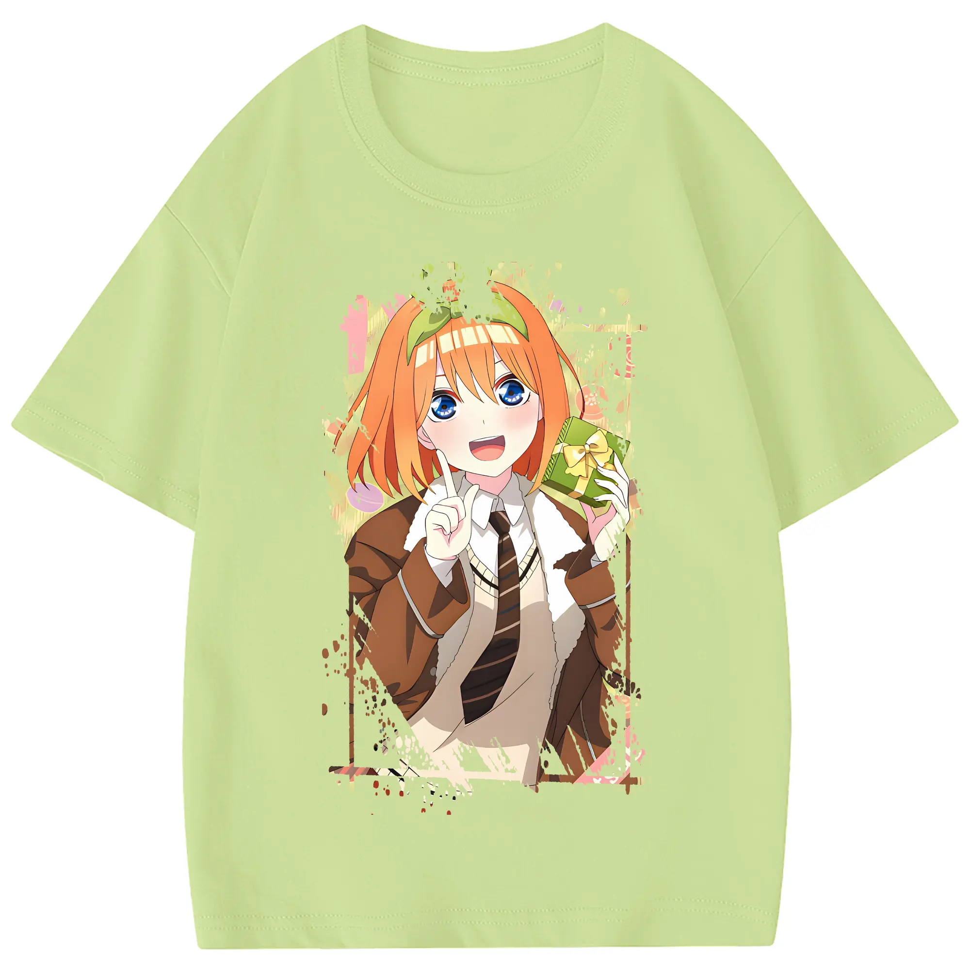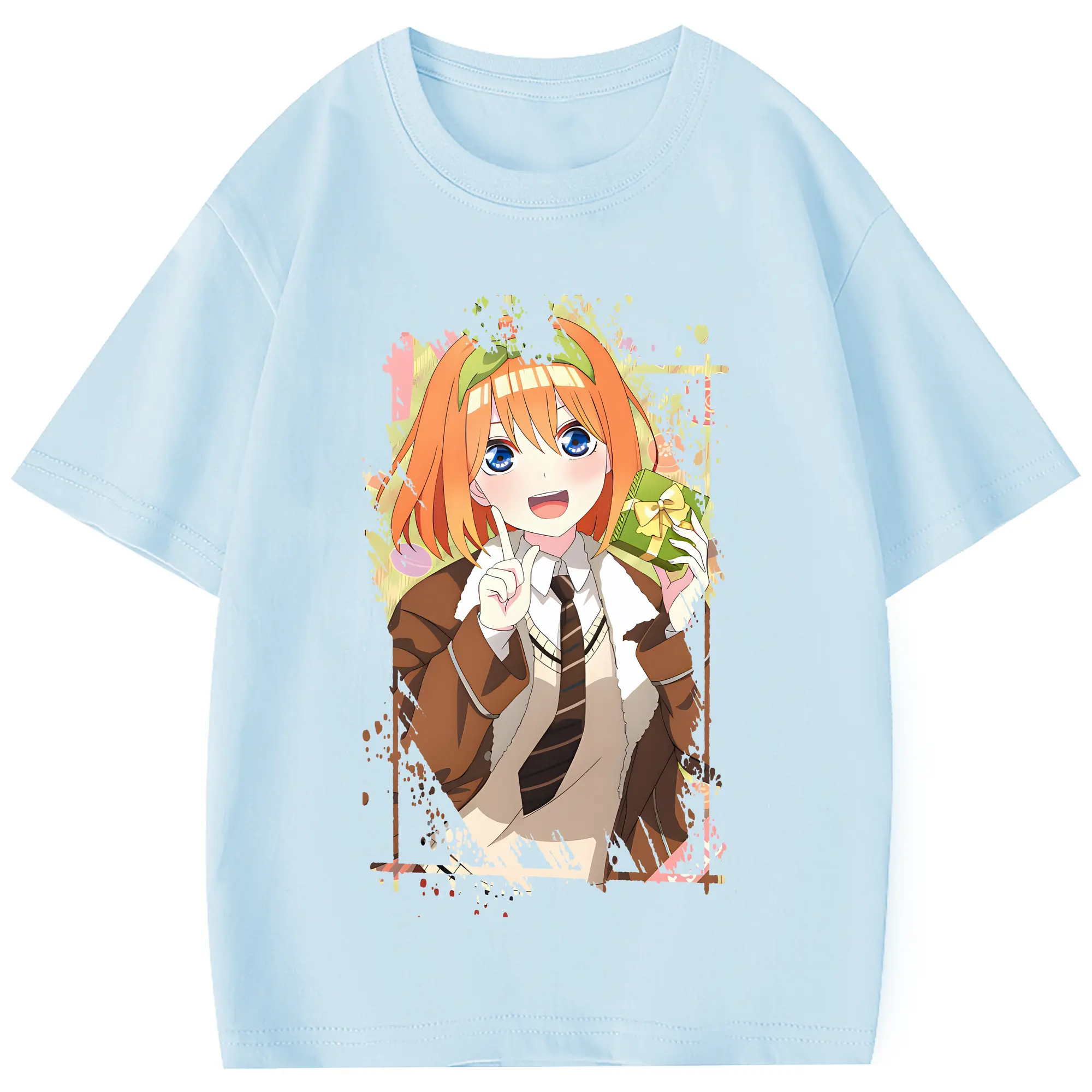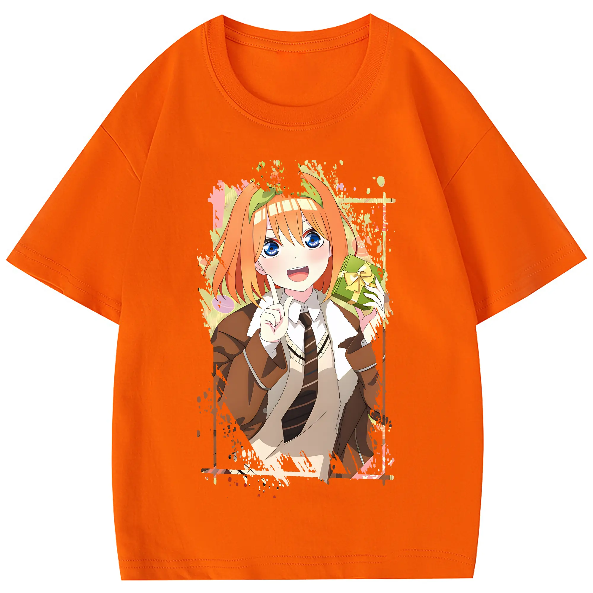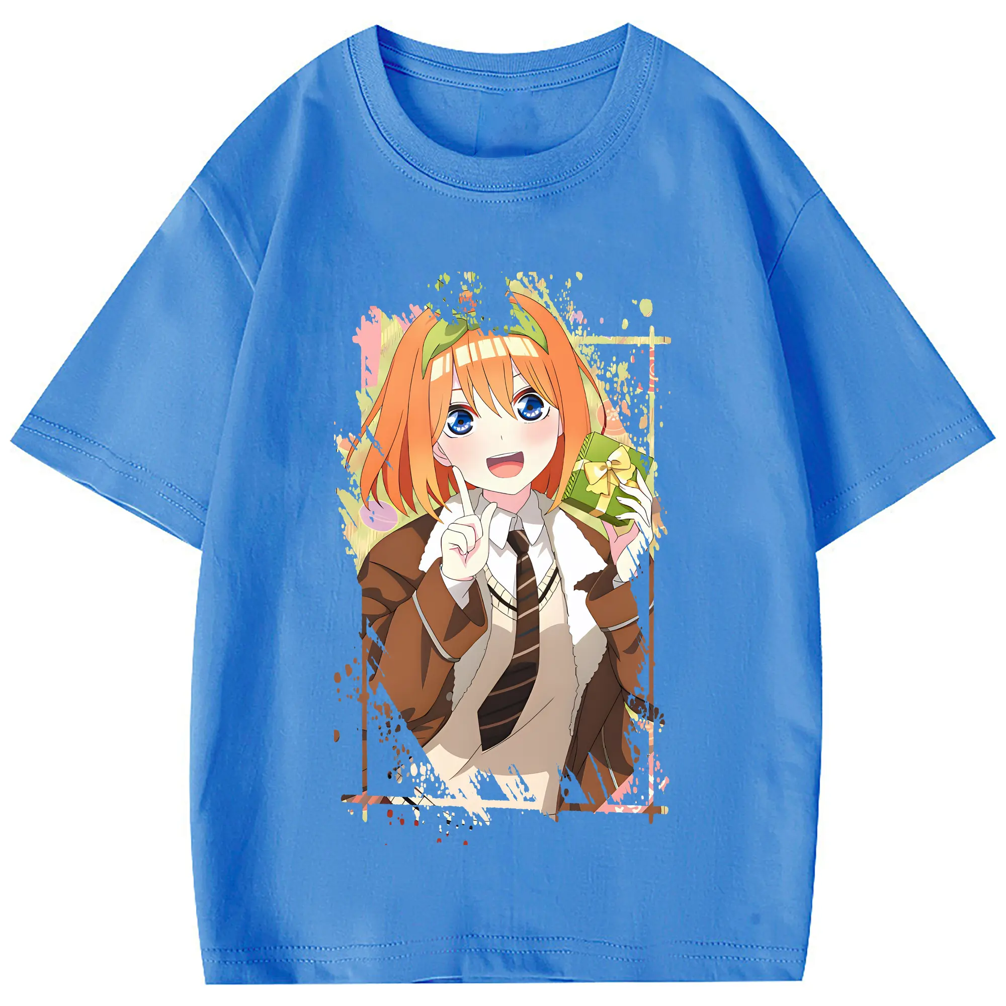 五等分の花嫁 グッズ 中野 四葉 - 綿100% 半袖Tシャツ ・ フロントプリント ・ 快適 通気性 ・ 日常使い 散歩 スポーツ用