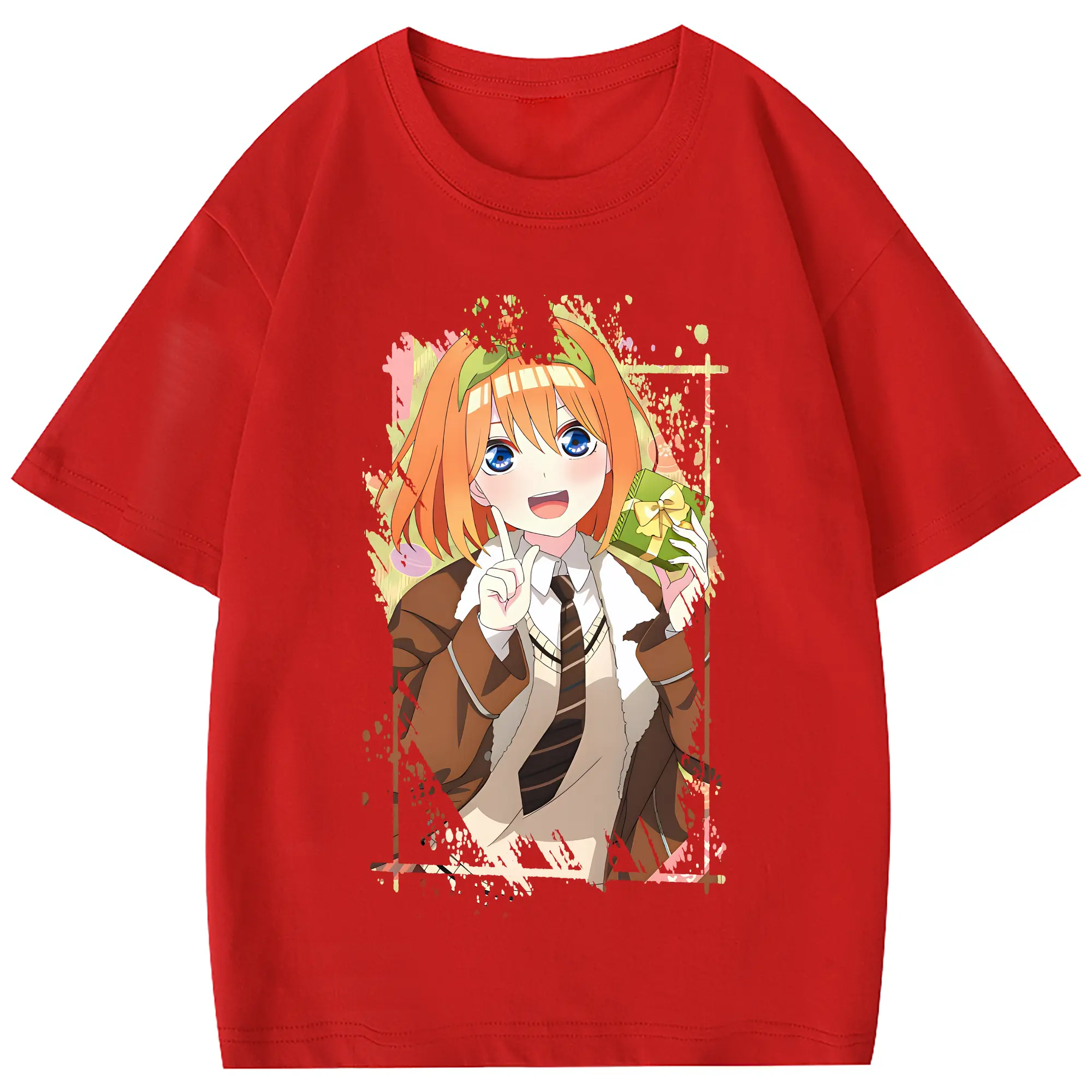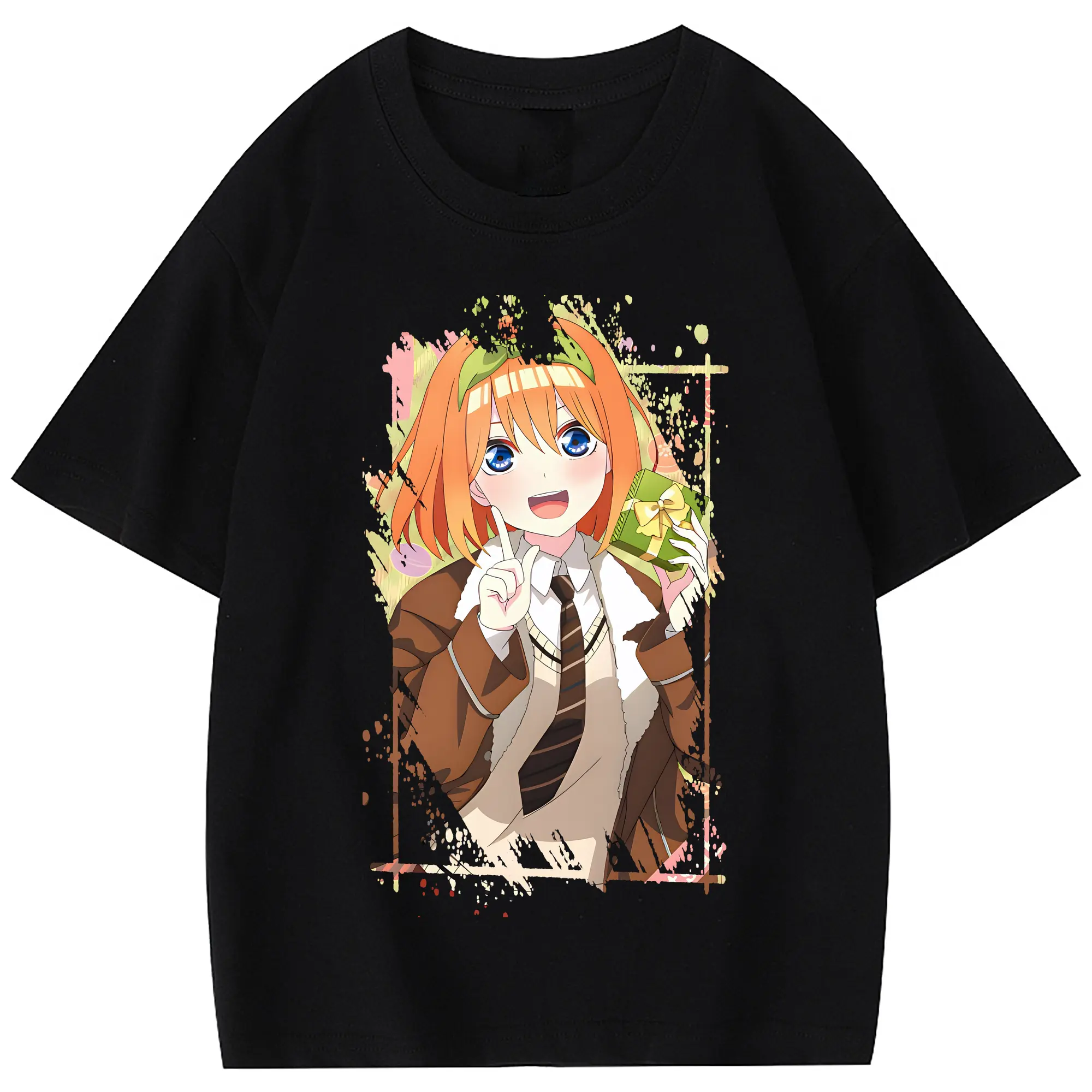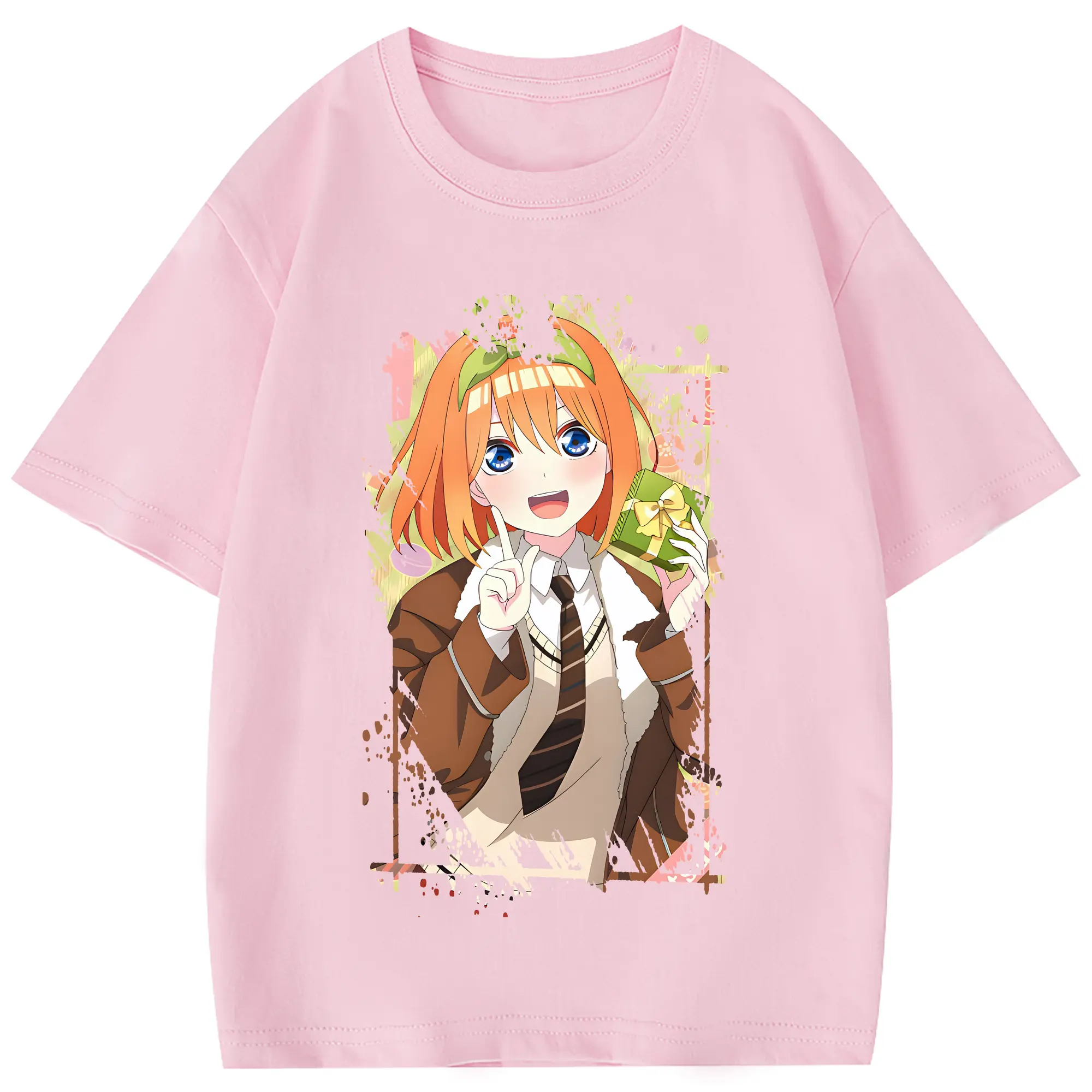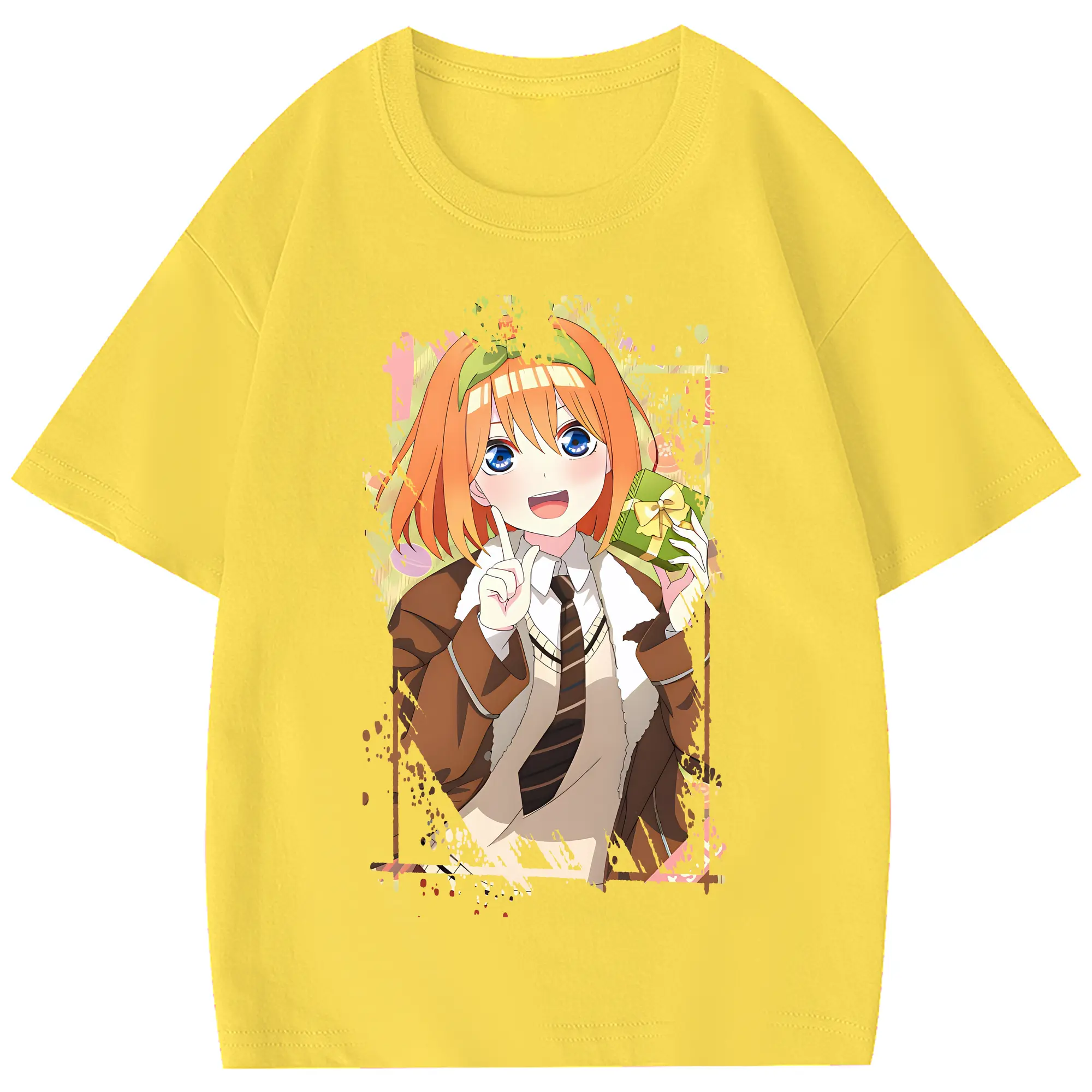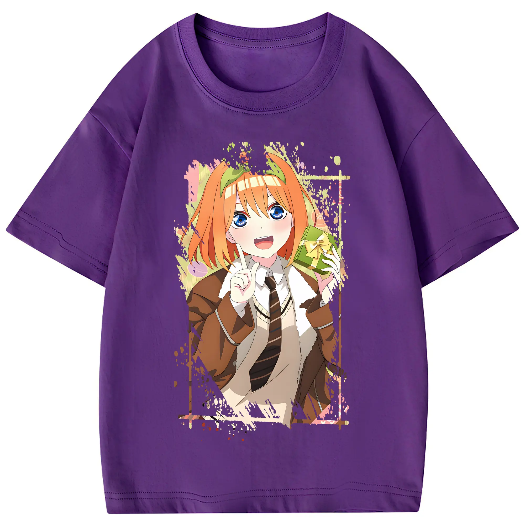 五等分の花嫁 グッズ 中野 四葉 - 綿100% 半袖Tシャツ ・ フロントプリント ・ 快適 通気性 ・ 日常使い 散歩 スポーツ用