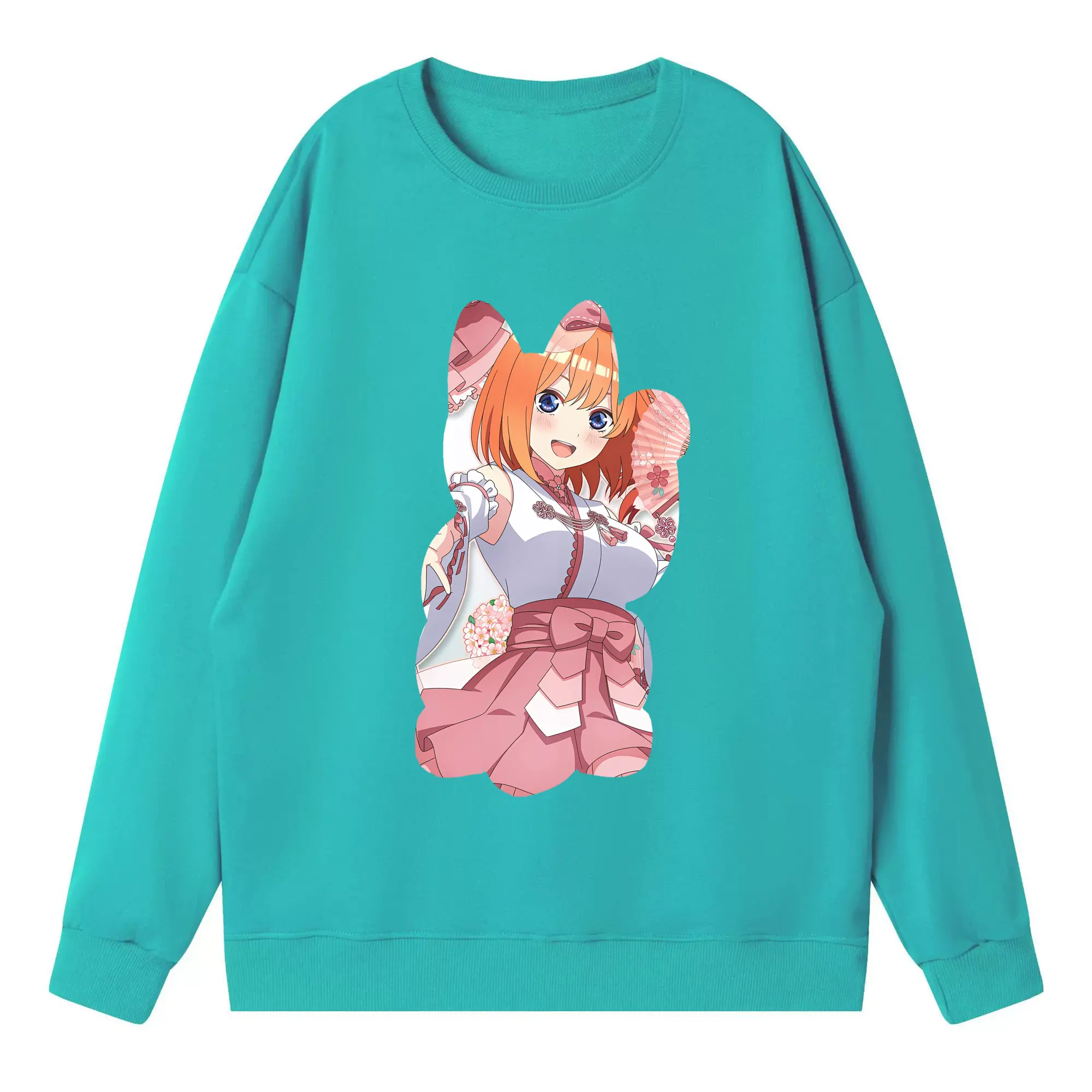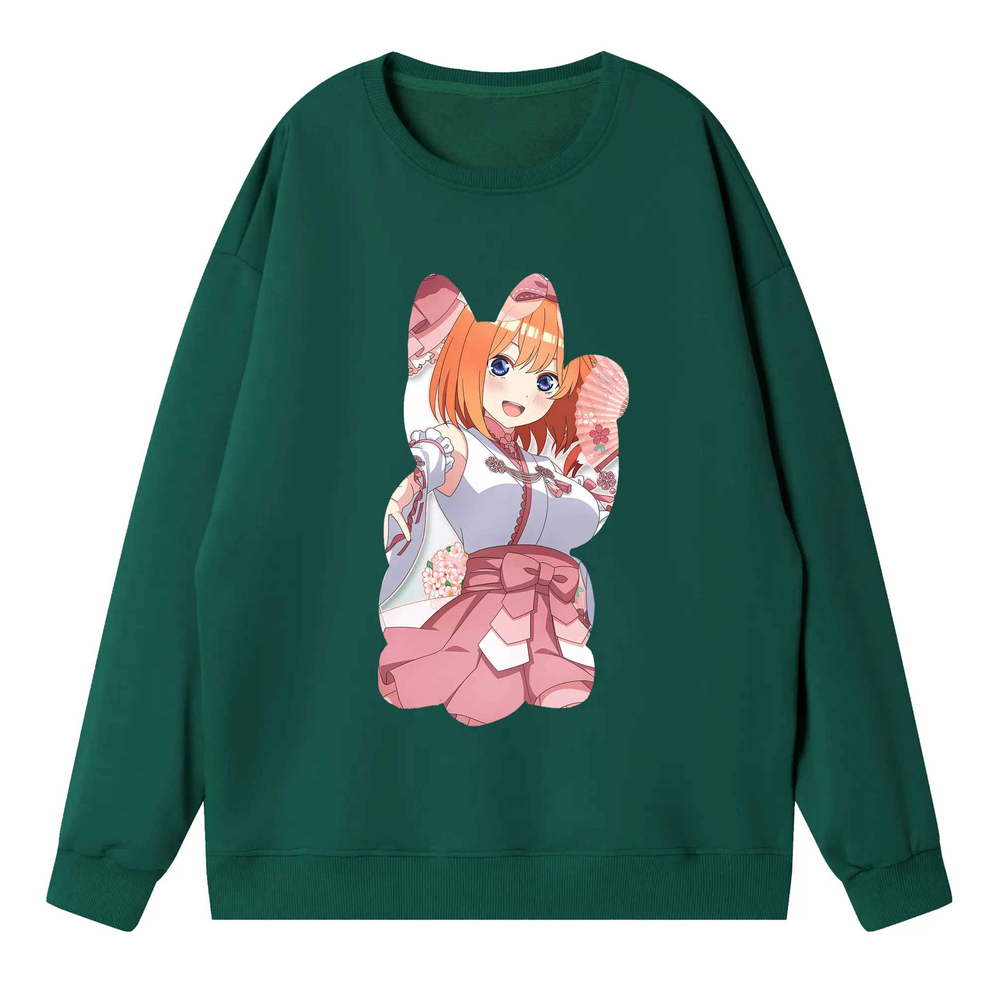 五等分の花嫁 グッズ 中野 四葉 - 高品質 クルーネック スウェット ・ コットン59% ポリエステル41% ・ ユニセックス 長袖 トレーナー ・ カジュアル デイリー スポーツ 散歩用